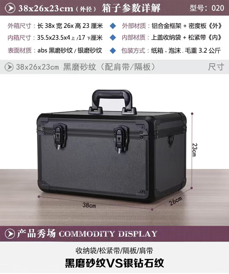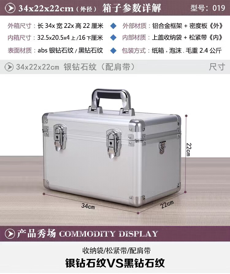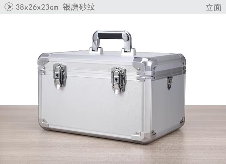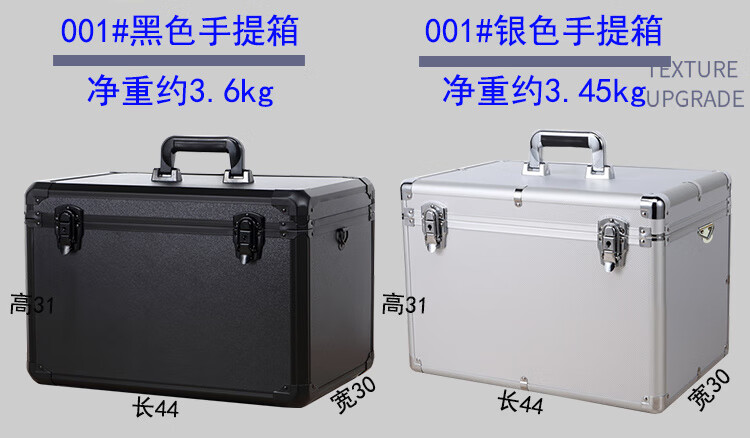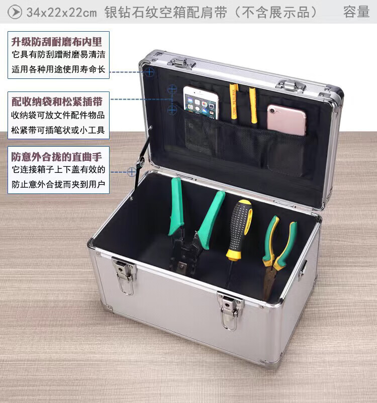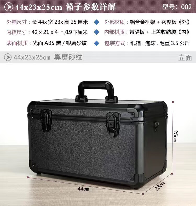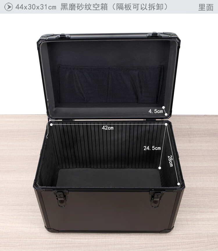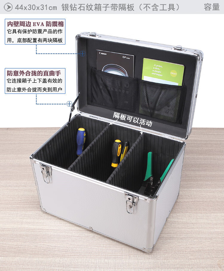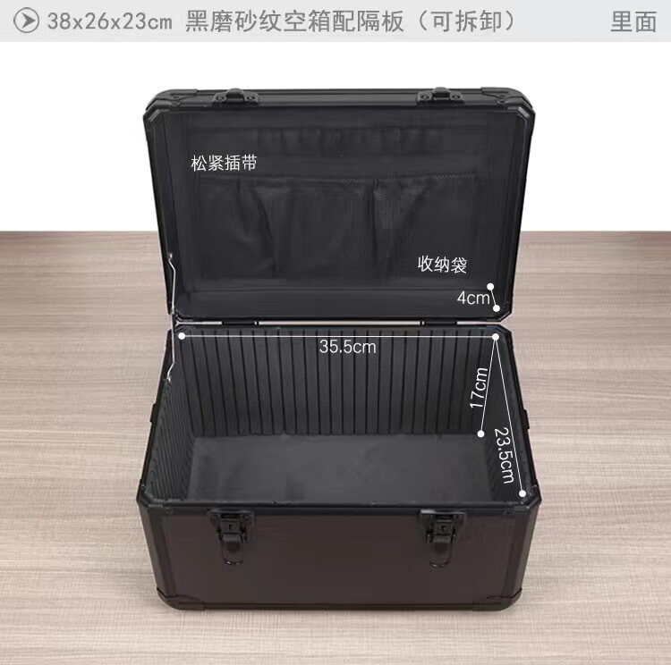 An Junsheng aluminum alloy tool box large lockable metal storage box instrument display suitcase outer diameter 44*30*31 black empty box partition