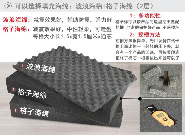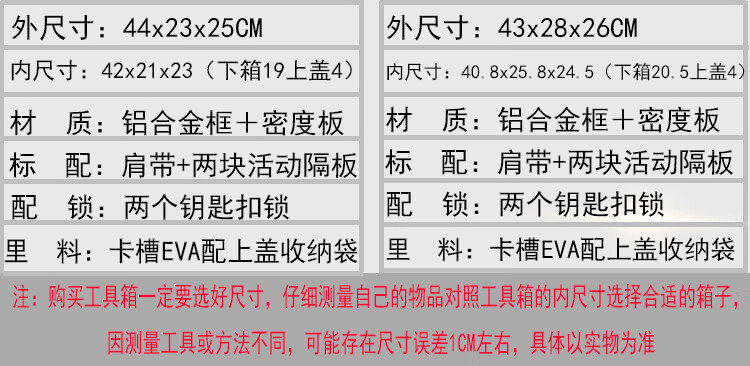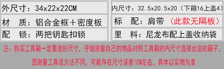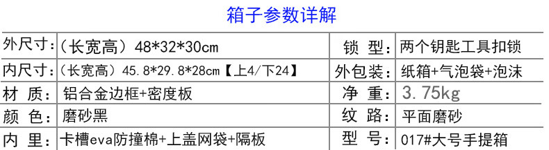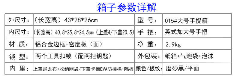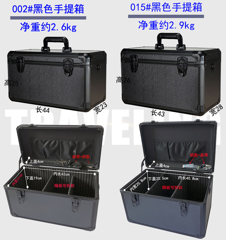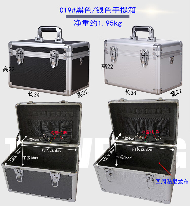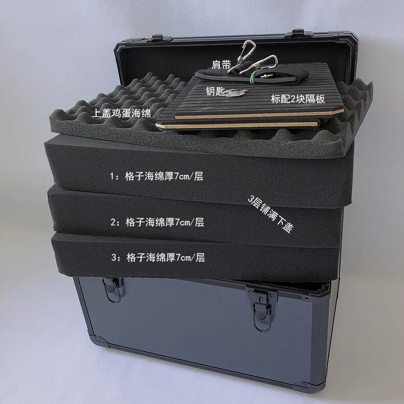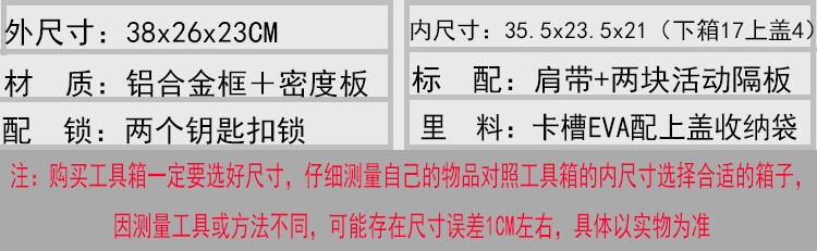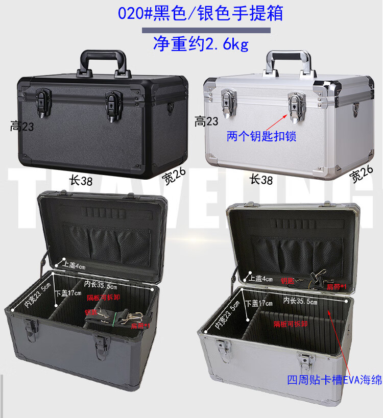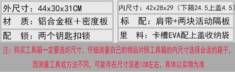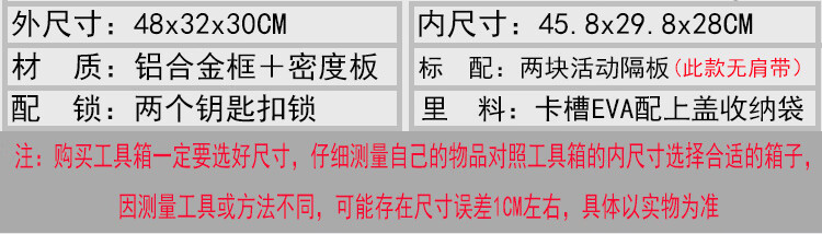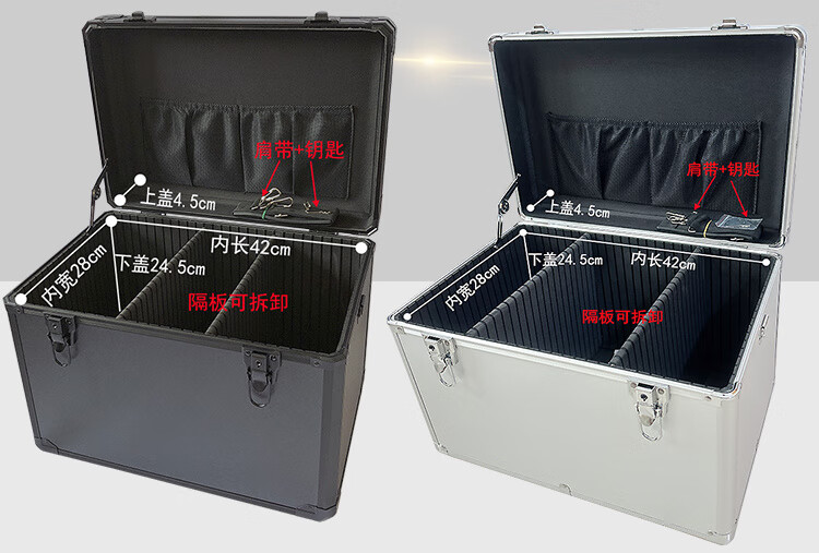 An Junsheng aluminum alloy tool box large lockable metal storage box instrument display suitcase outer diameter 44*30*31 black empty box partition