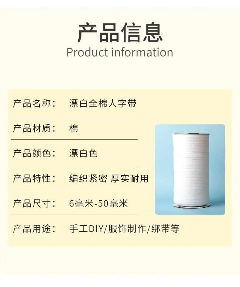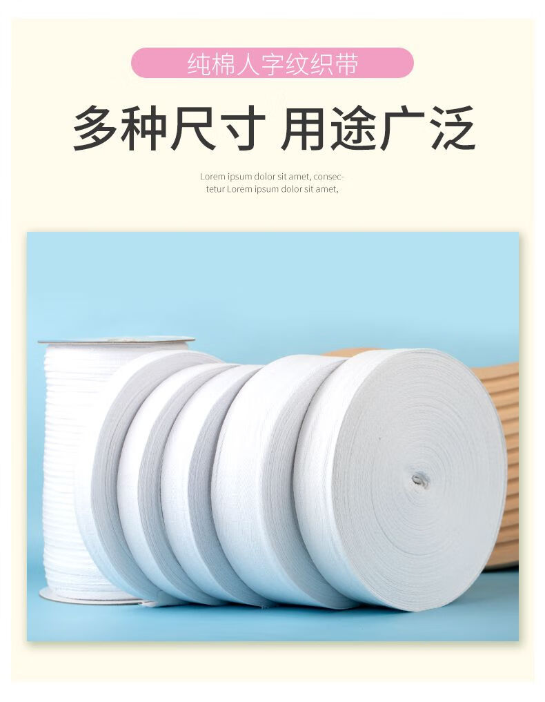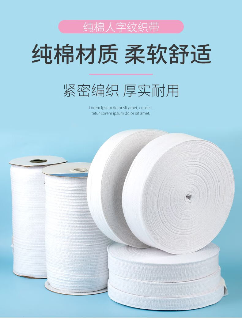 Herringbone belt bleached 1cm-5cm pure cotton cloth strap binding wide cloth strip hemming fabric webbing accessories 40mm 45 meters