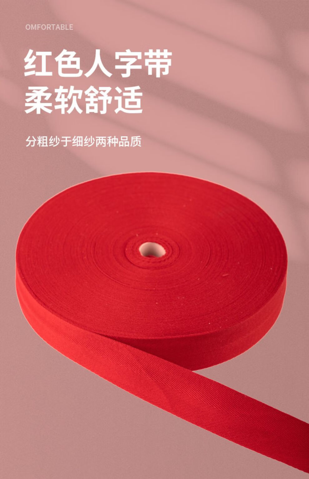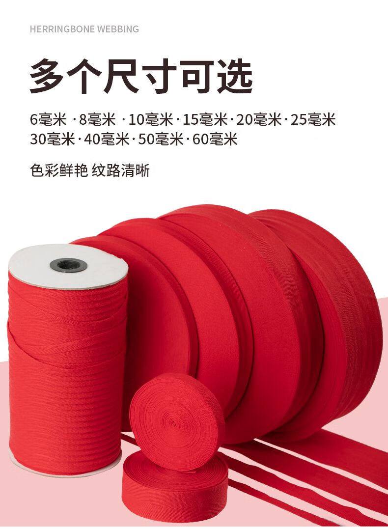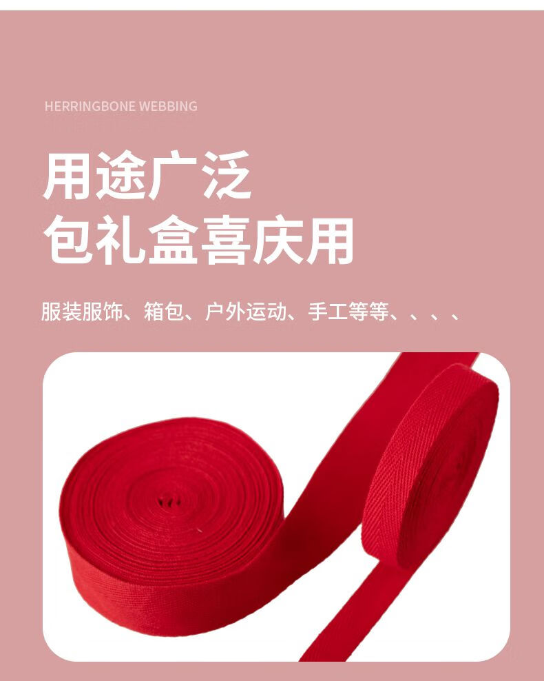 Herringbone belt cotton red ribbon clothing decorative edge strips packaging cloth strips cloth strips piping wide webbing accessories rose red spun red 12 mm 45 meters
