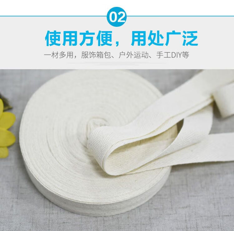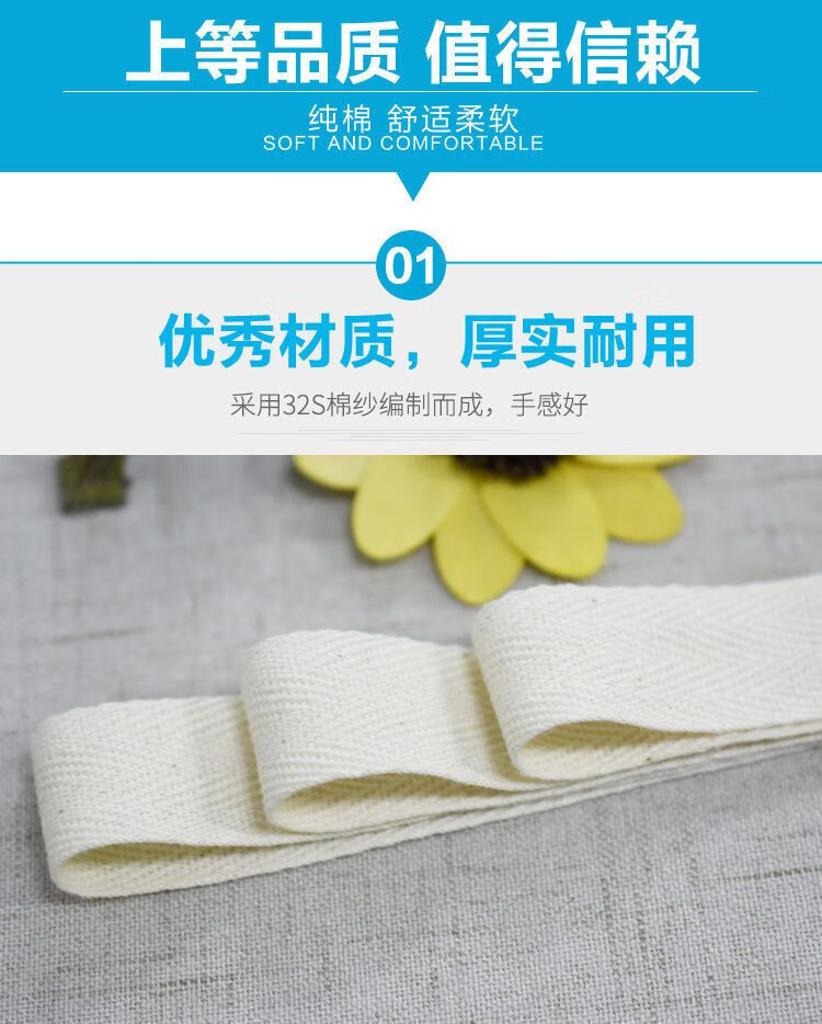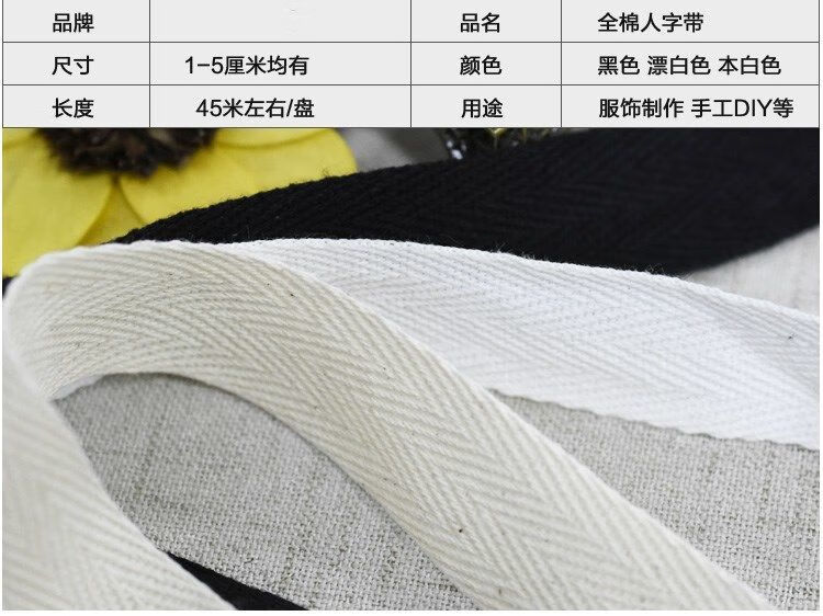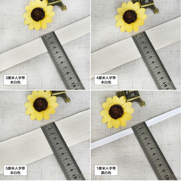 Herringbone belt pure cotton soft cotton belt hand-wrapped cloth binding white bleached whole plate flat belt binding belt bleached 1.5 cm wide 50 meters per plate