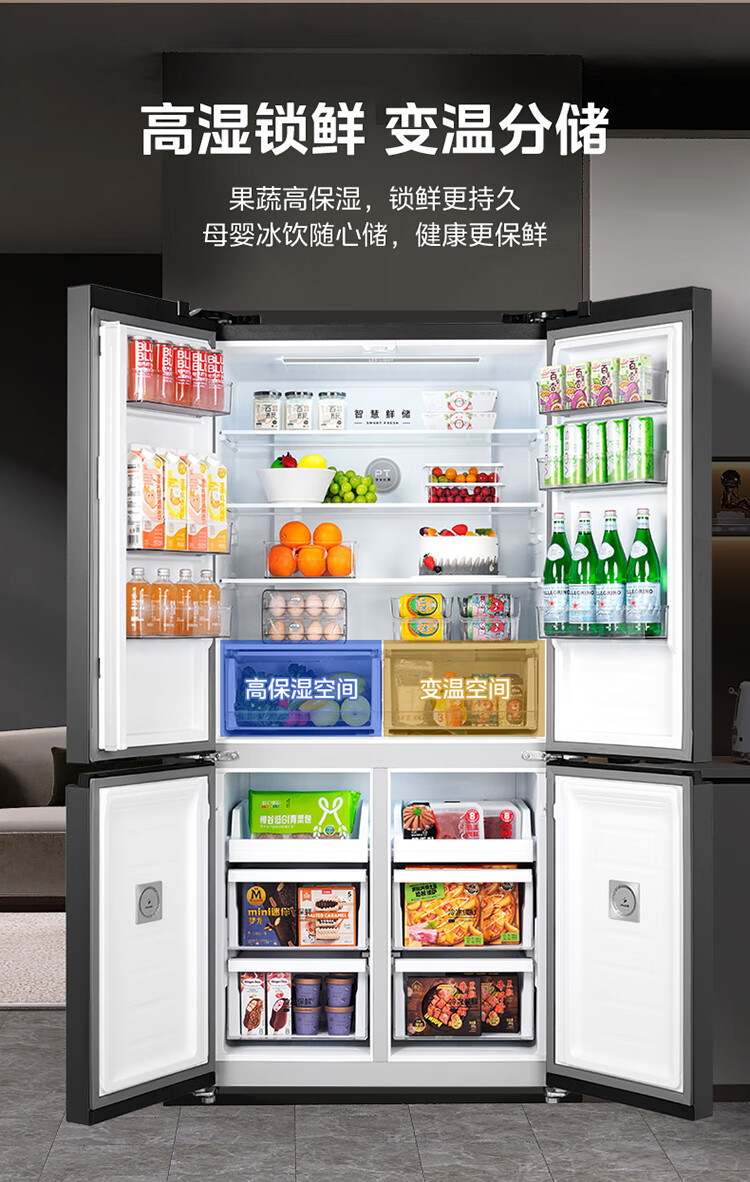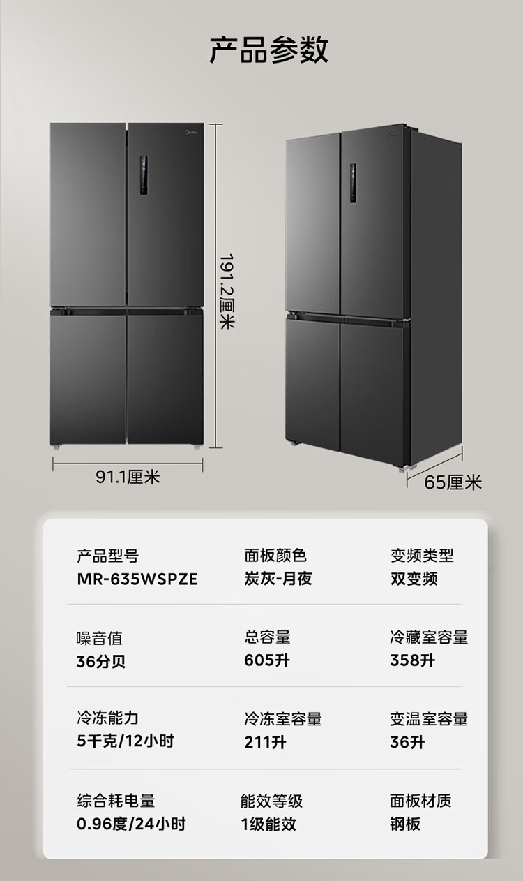 Midea 635 first-level energy efficiency dual-frequency cross double-door four-door household smart refrigerator air-cooled frost-free ultra-large capacity 36 decibels low noise 605 liter refrigerator new product 605 liter large capacity MR-635WSPZE