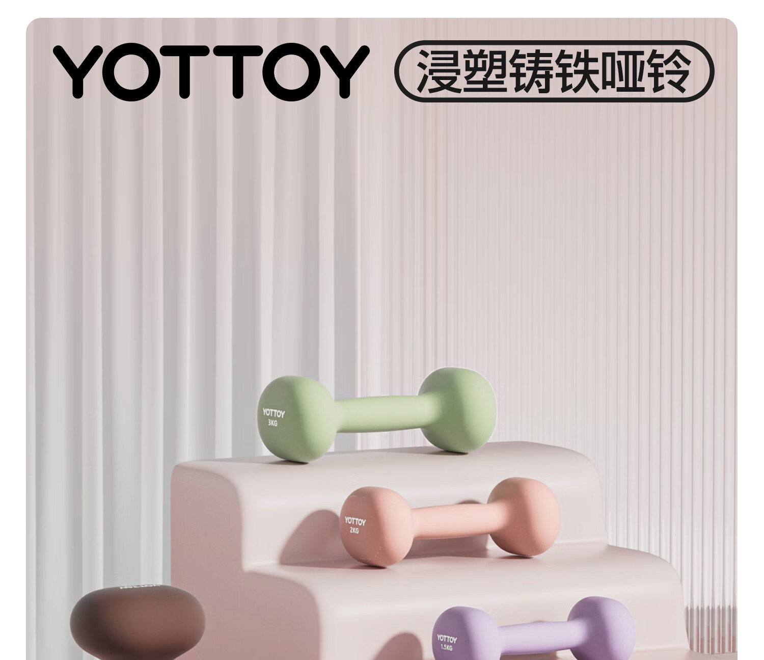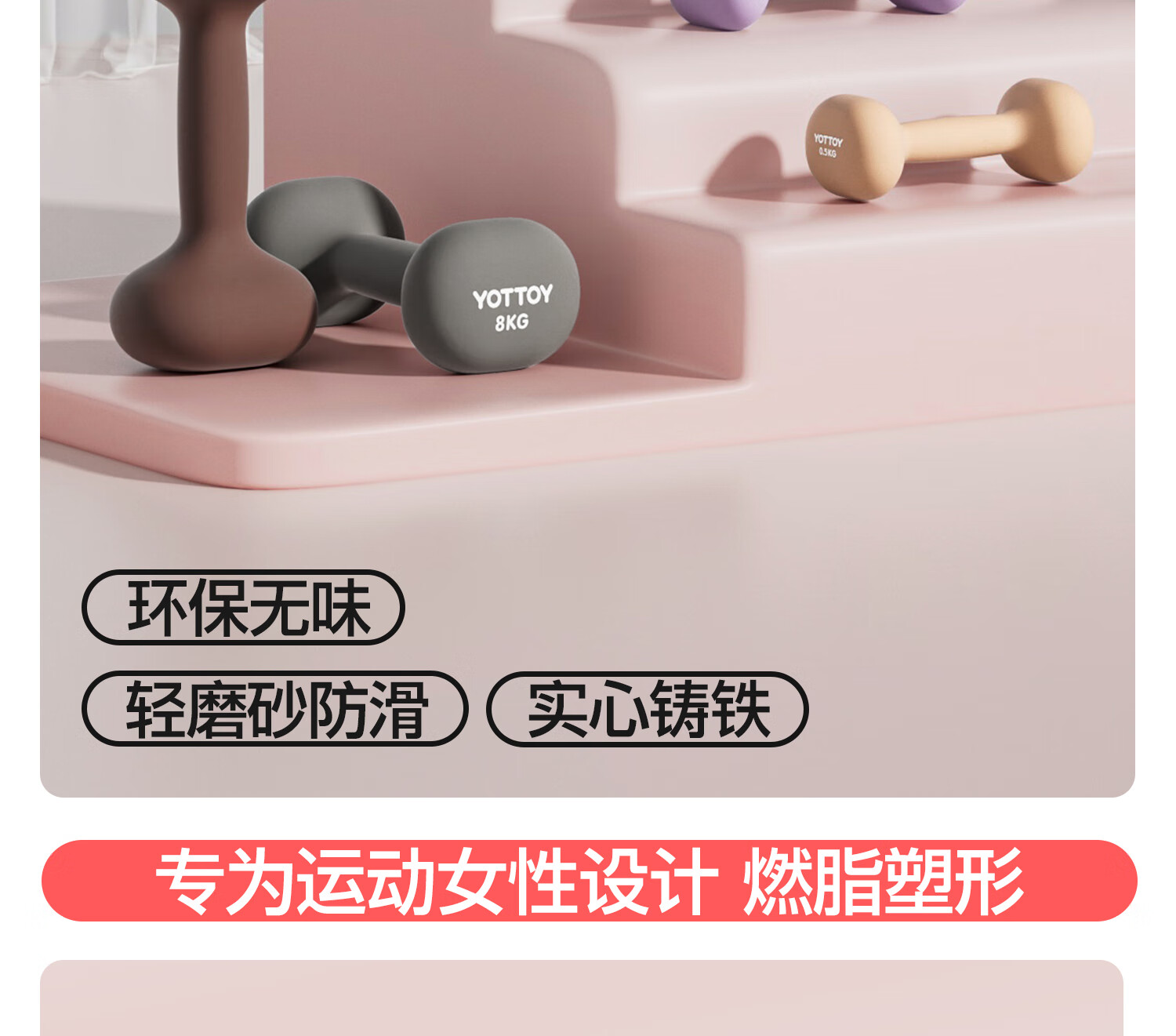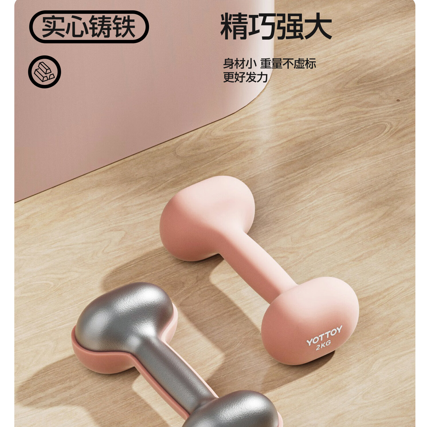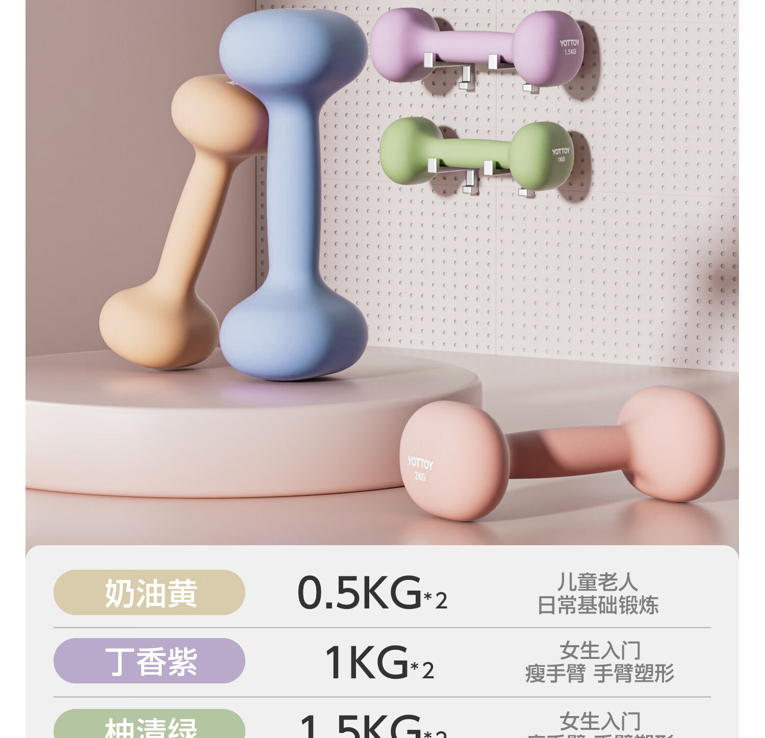 Yottoy dipped dumbbell barbell men and women fitness home fitness equipment 2kg pair of 5kg small dumbbell kettle solid cast iron cream yellow-0.5kg*2