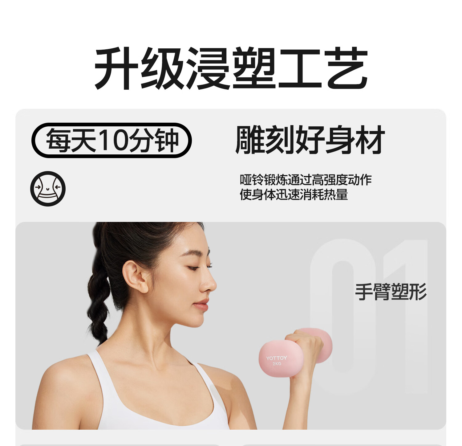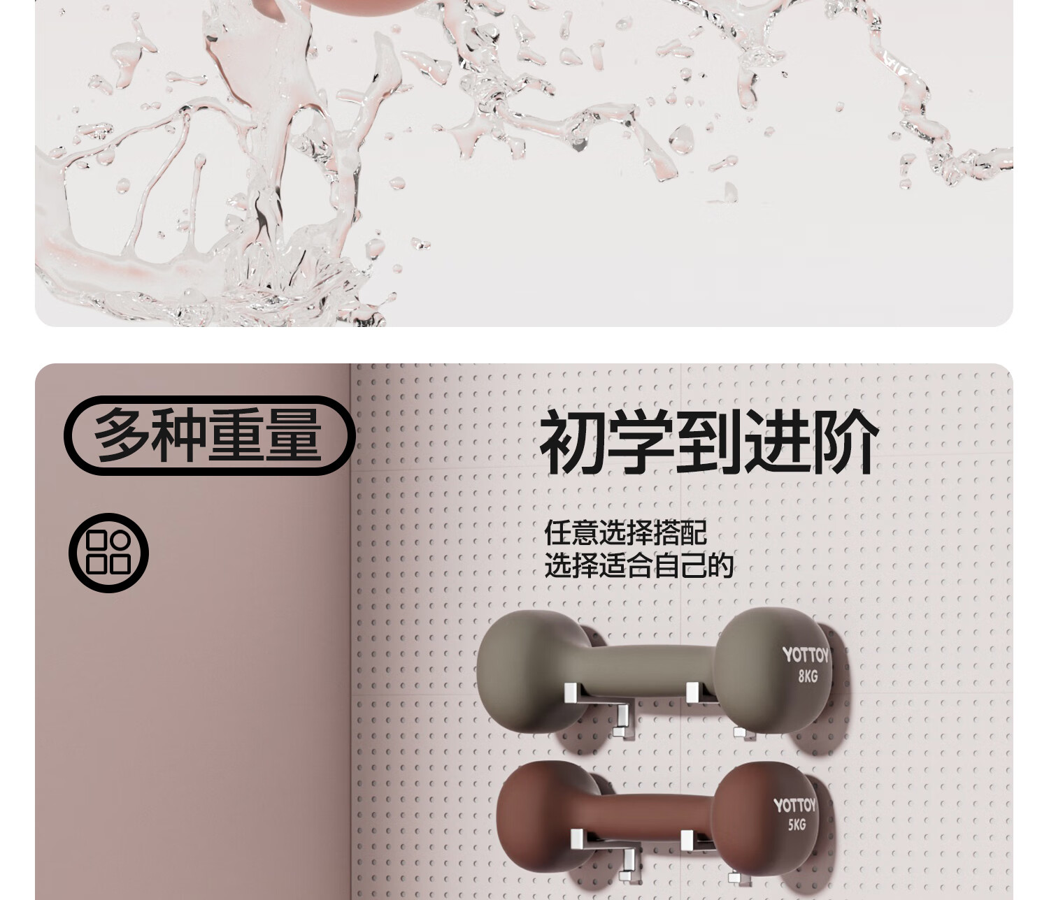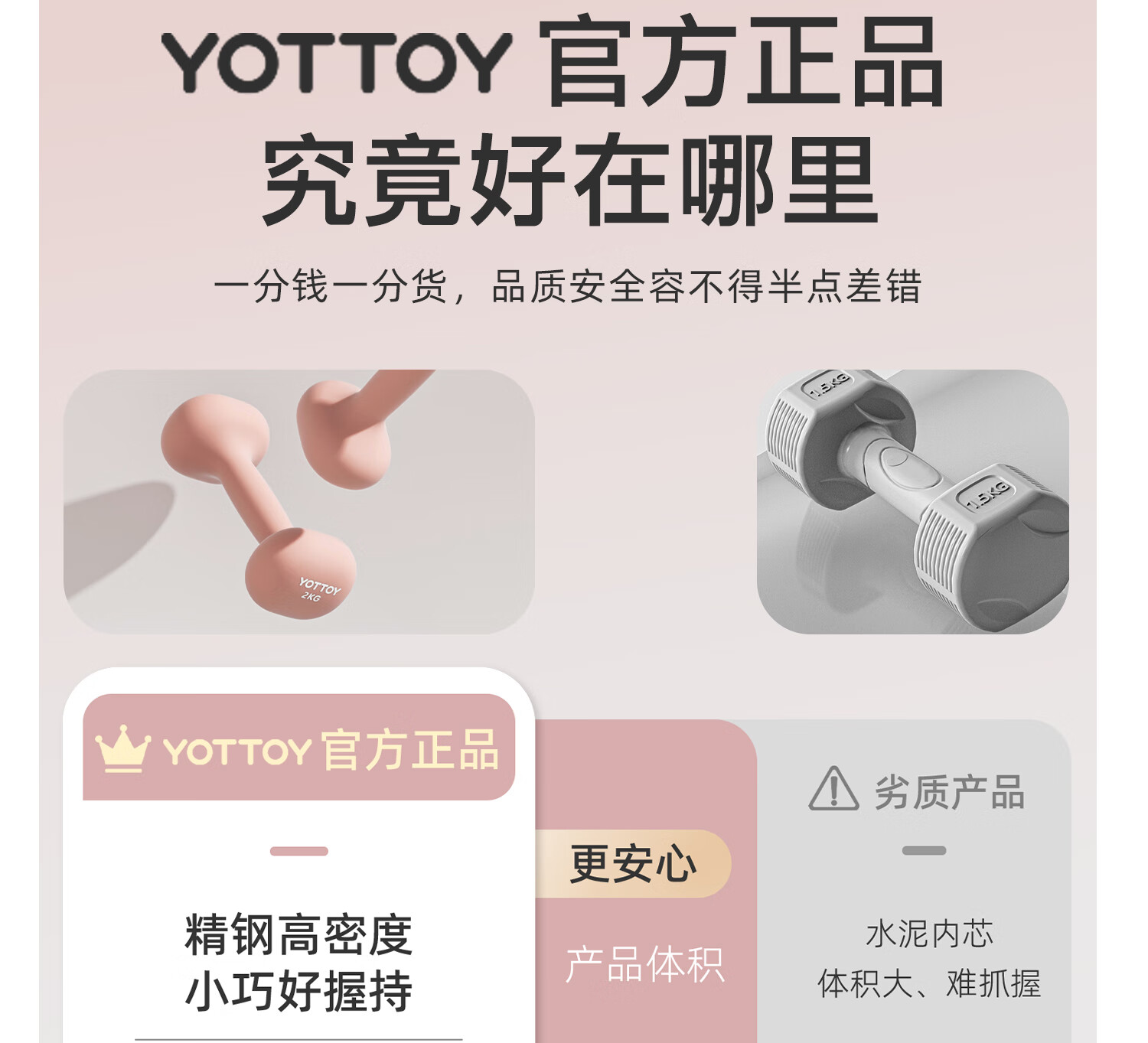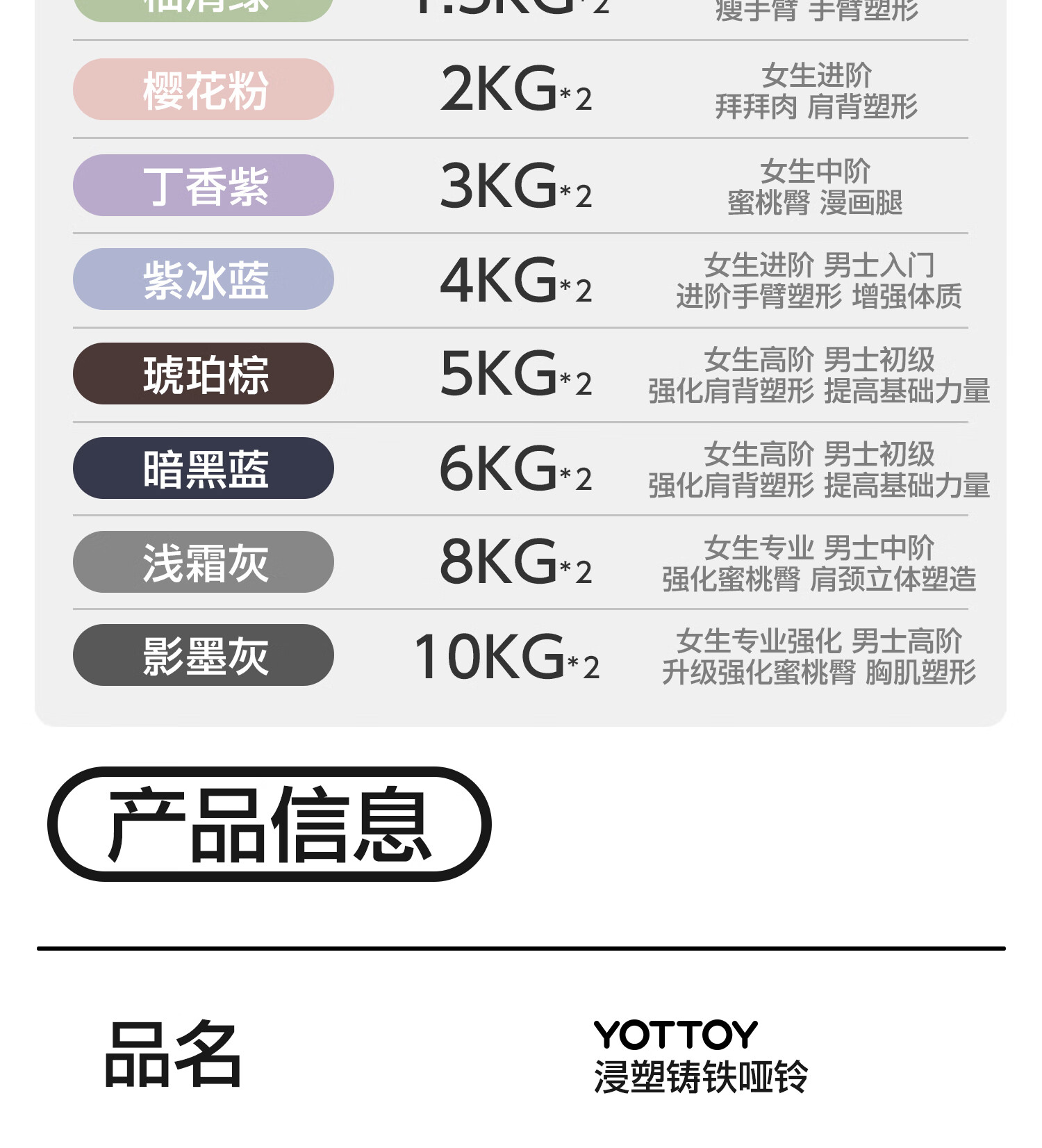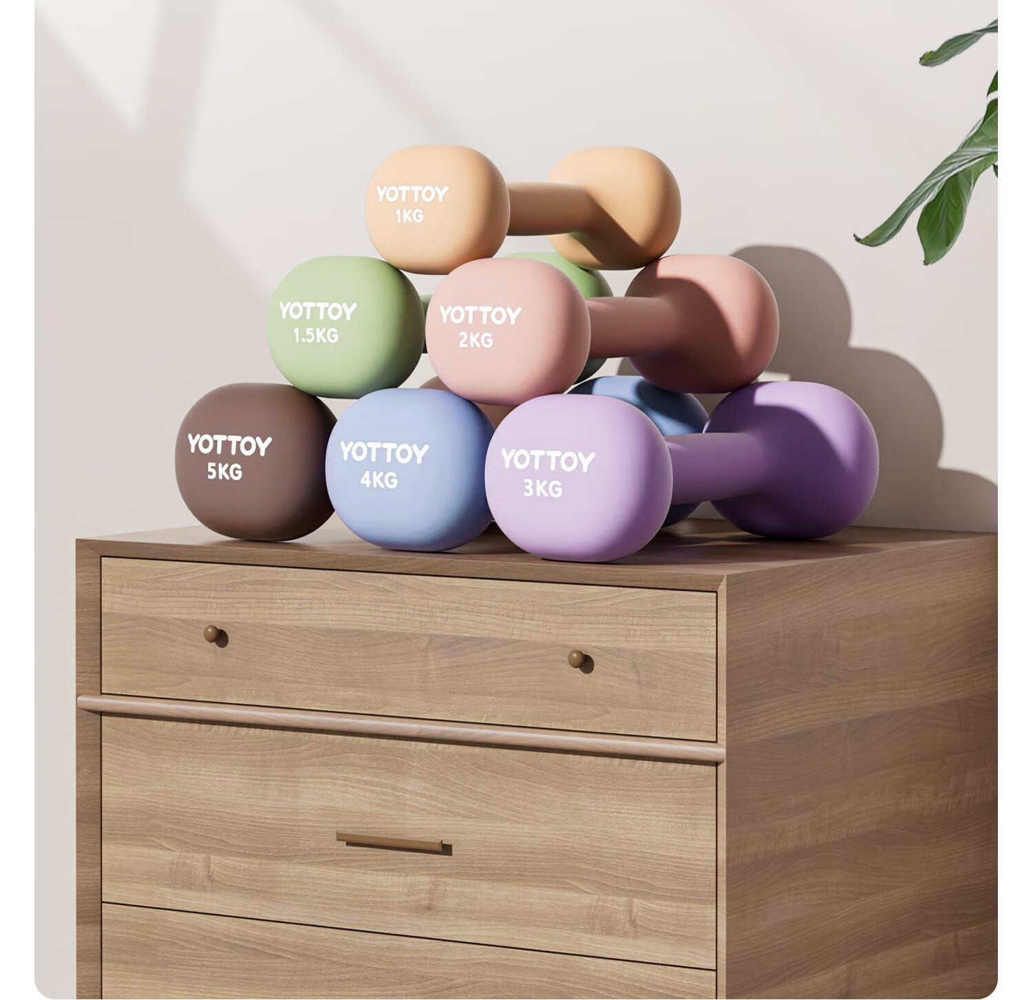Yottoy dipped dumbbell barbell men and women fitness home fitness equipment 2kg pair of 5kg small dumbbell kettle solid cast iron cream yellow-0.5kg*2