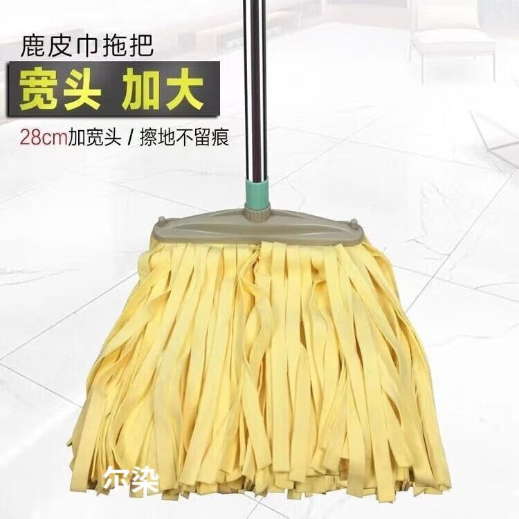 Deerskin mop wide head absorbent mop wide head flat head chicken skin old-fashioned household old style cleaning large size traceless yellow basic color 1 set