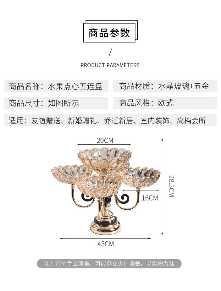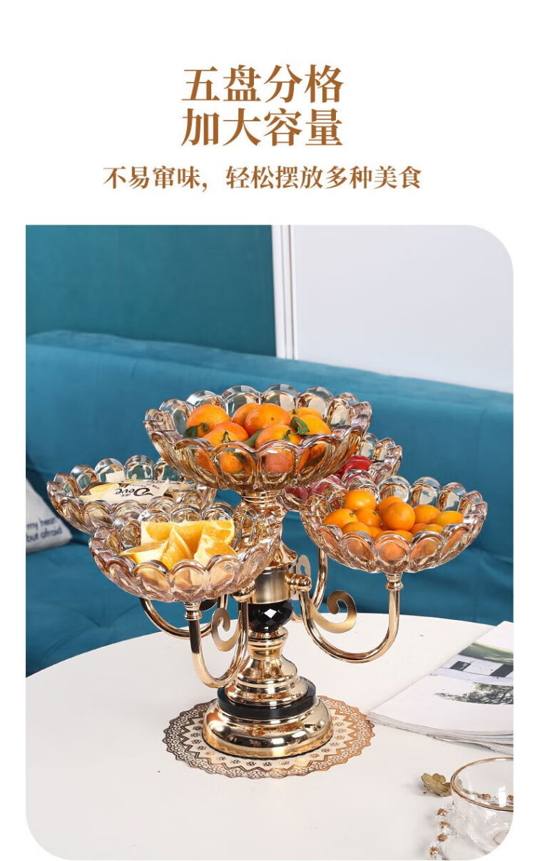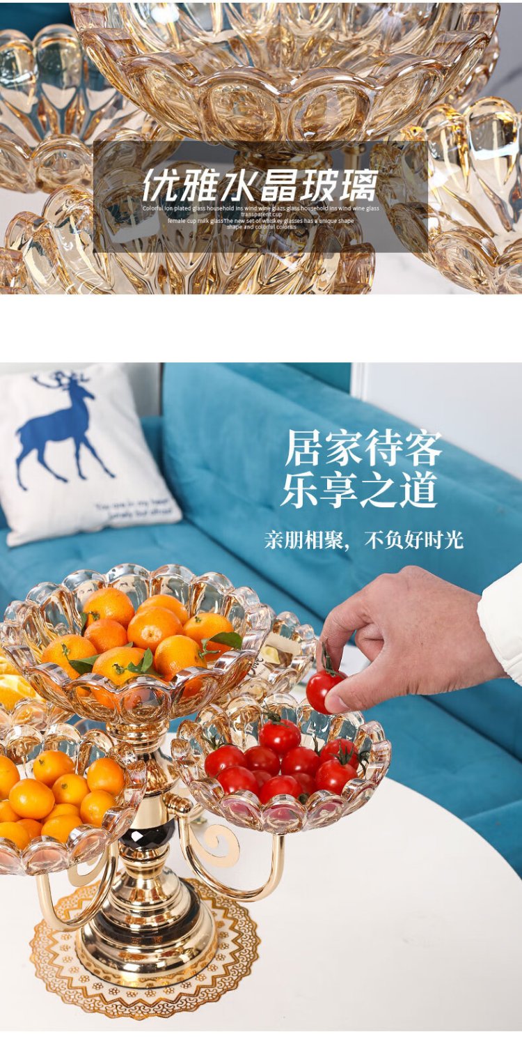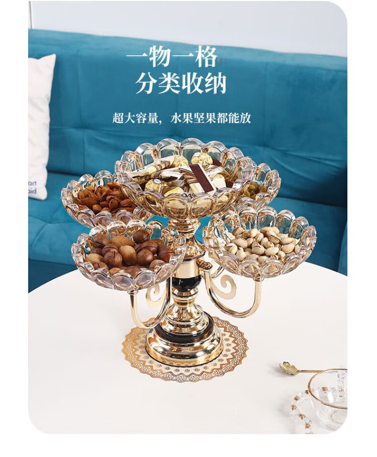 Flower Language Four Seasons European Crystal Glass Multi-layer Rotating Fruit Plate Modern Home Living Room Coffee Table Luxurious Snack Candy Plate Ornaments Five-Connect Plate Ceramic Base Rotatable
