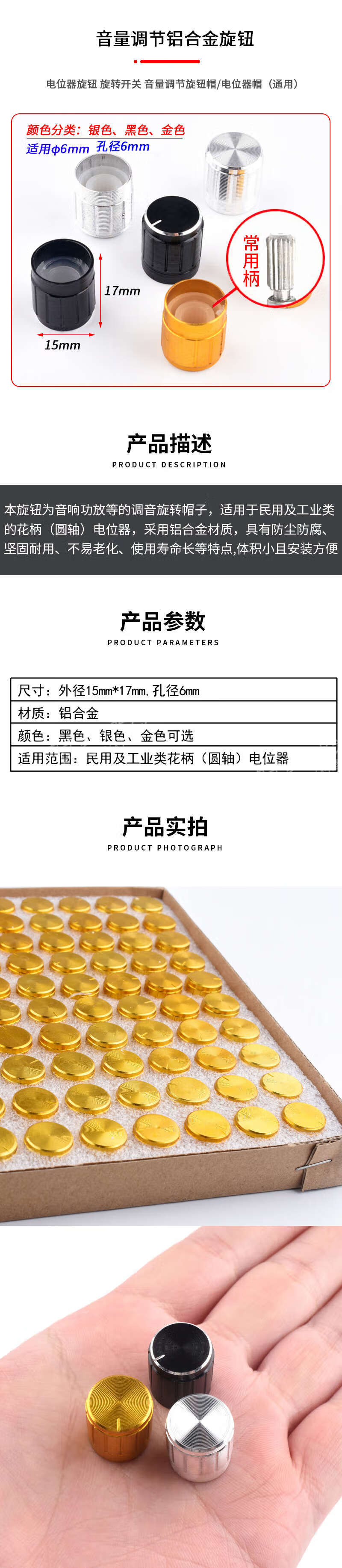 DZYJ audio metal knob WH148 plum blossom handle potentiometer knob width 15 height 17 black silver suitable for 6mm silver (5 pieces)