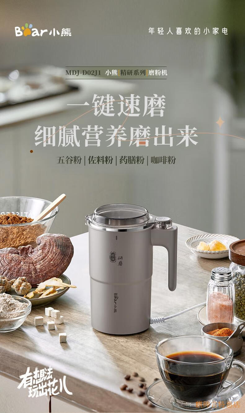 Bear grinder, grinding bean crusher, ultra-fine traditional Chinese medicine powder and crushing, small household grinding grains, 350ml, pure copper motor, 304 stainless steel, new product