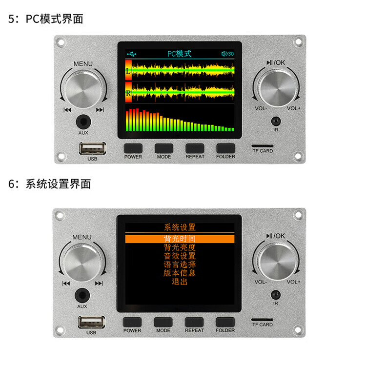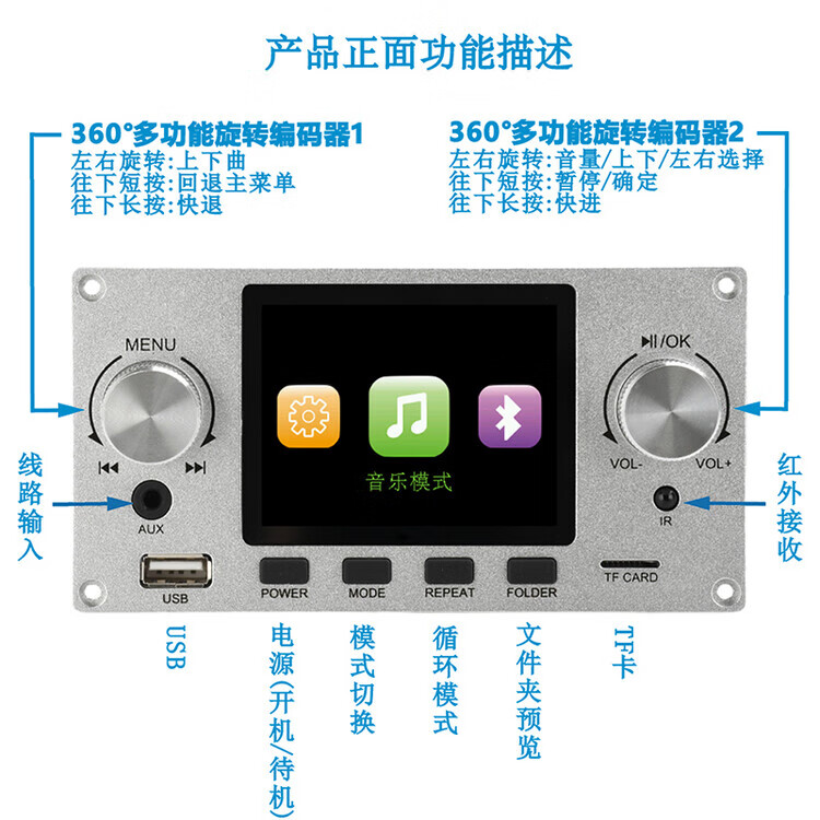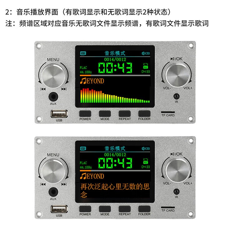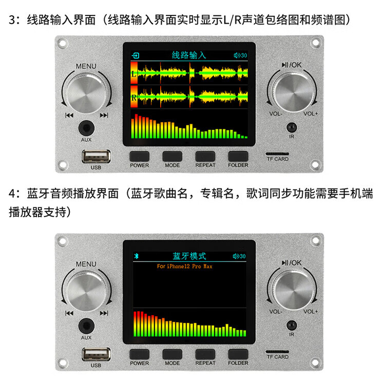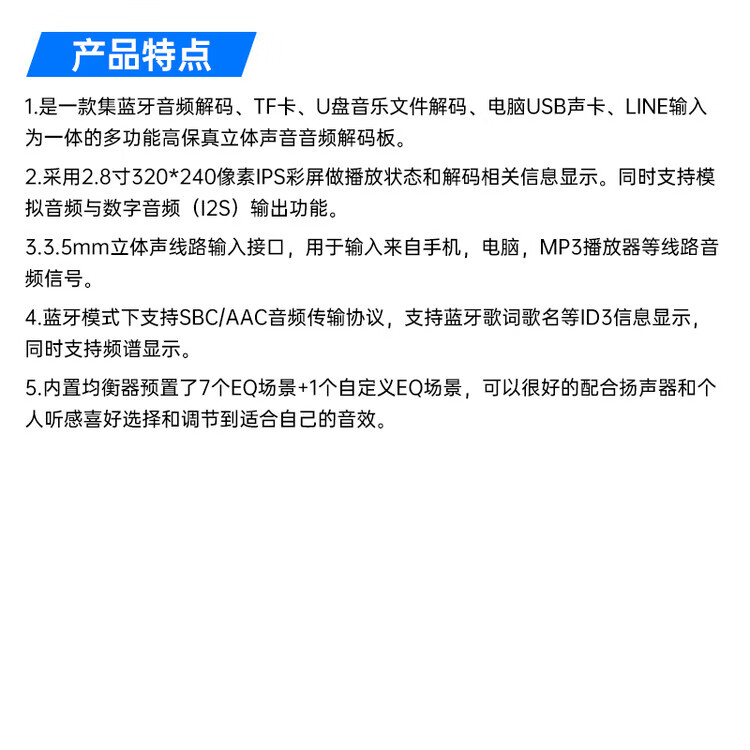 DIYMORE 2.8-inch color screen lossless audio decoding board module supports I2S digital audio output player DC5-12V black