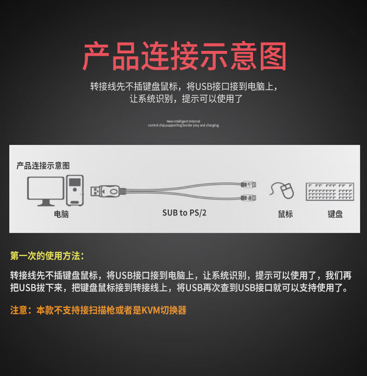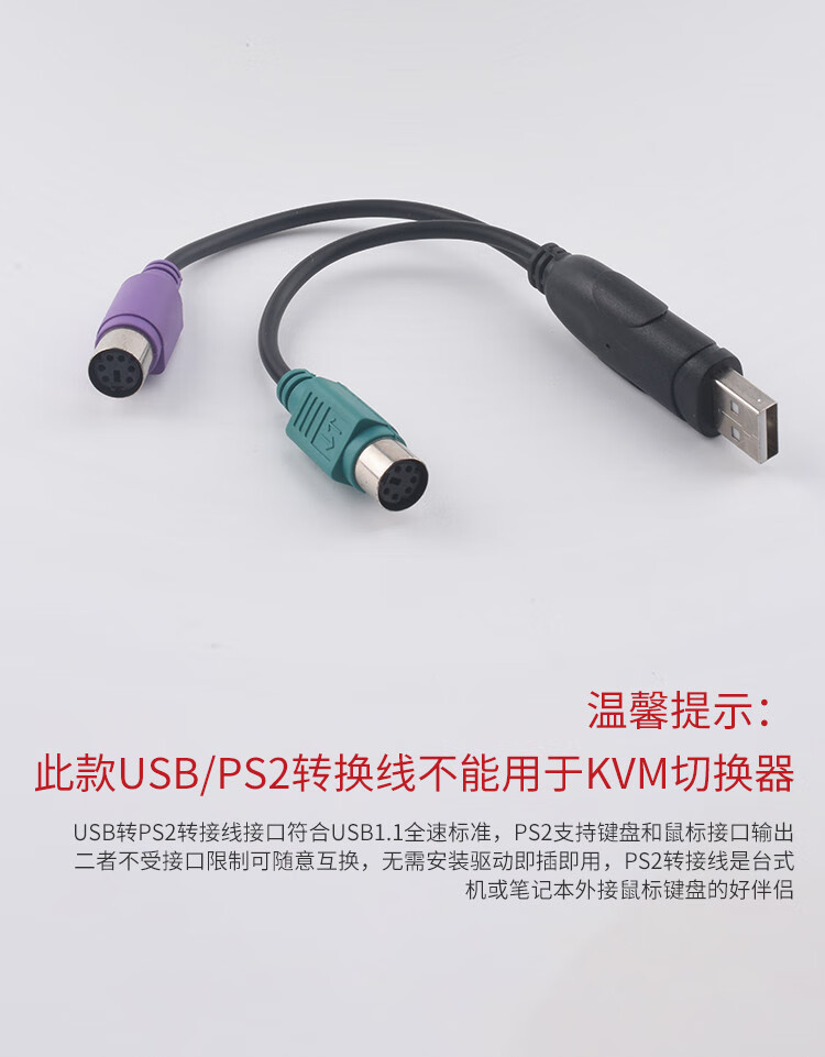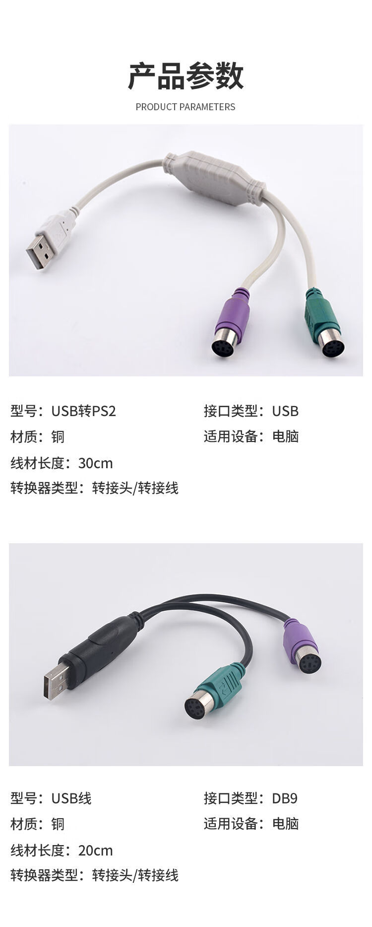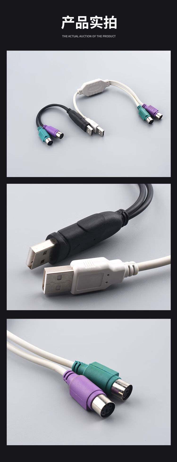 PS2 to USB computer adapter cable mouse keyboard round mouth round head ps/2 female to USB male interface converter upgraded black with chip 20cm