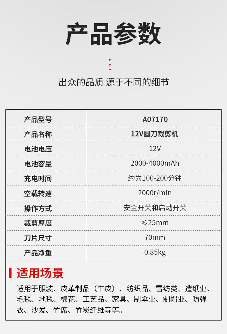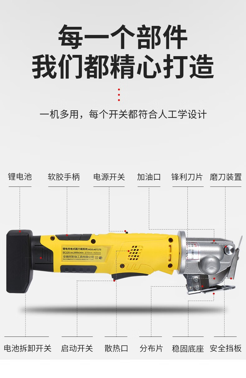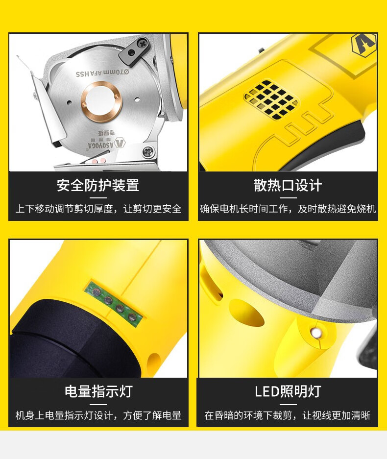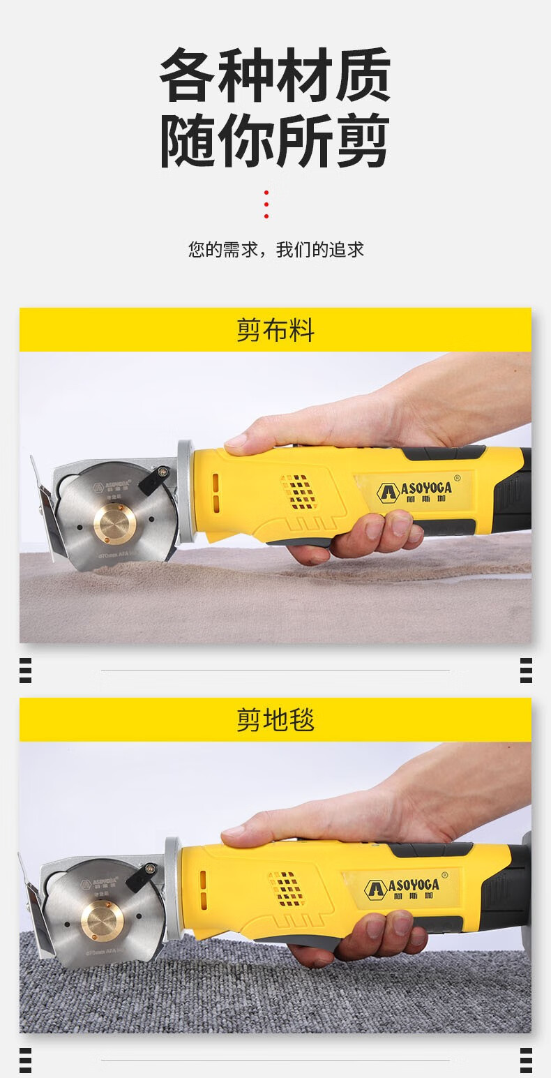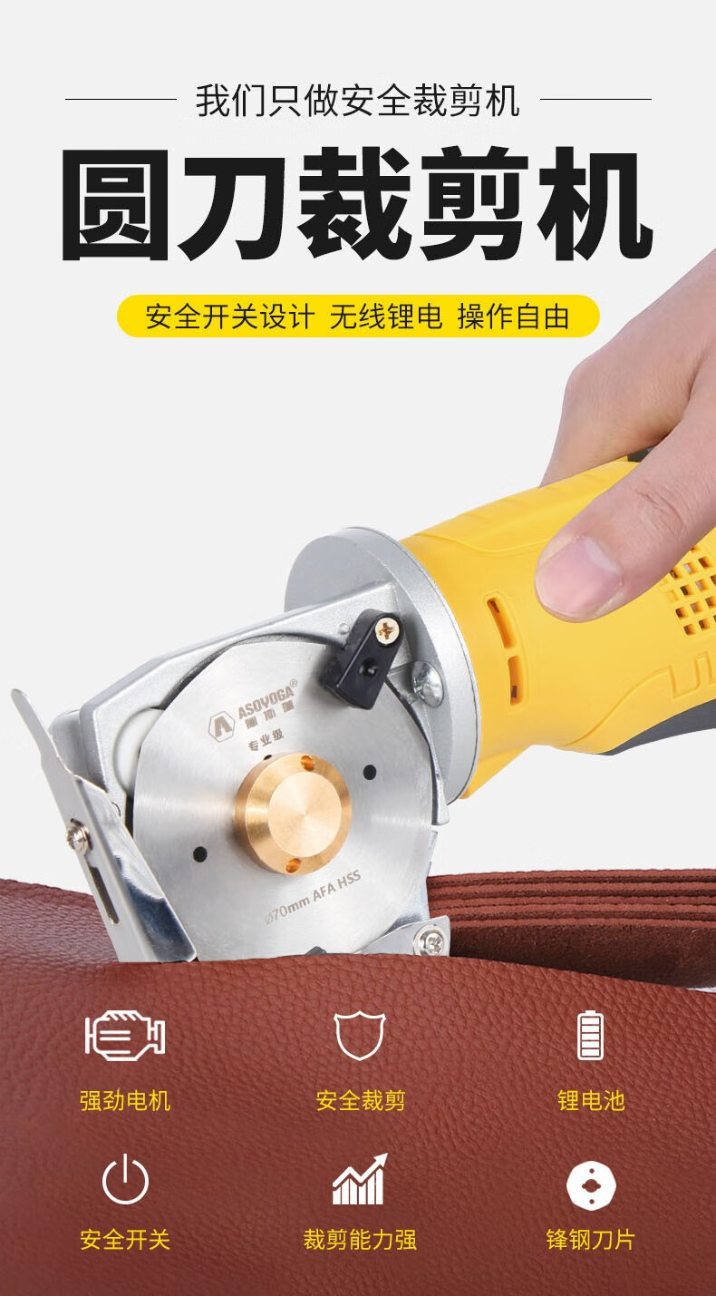 Asjia lithium electric round knife cutting machine rechargeable clothing cloth carpet planting paper leather leather handheld electric scissors cutting cloth one battery one charge 4000 mAh