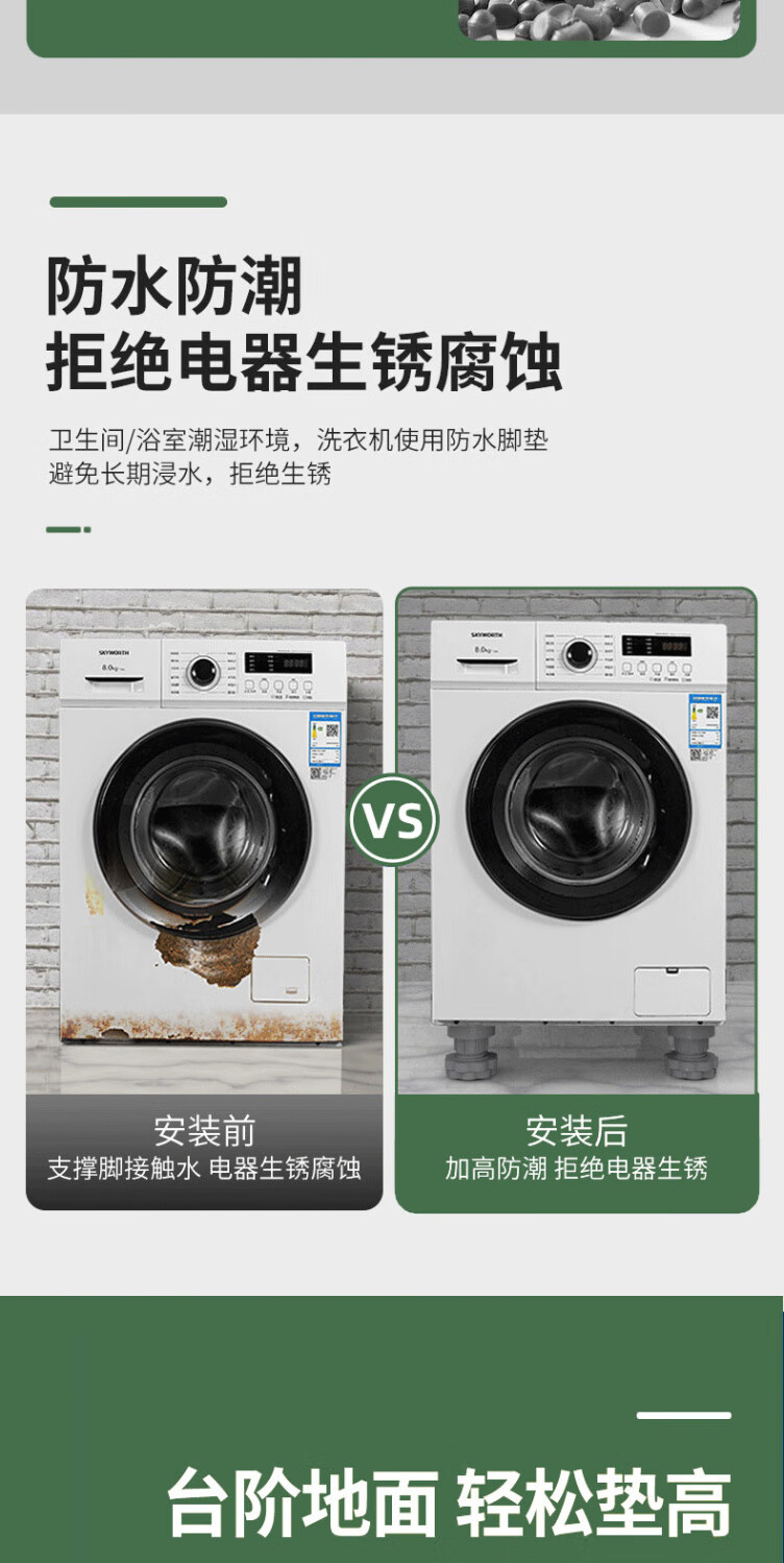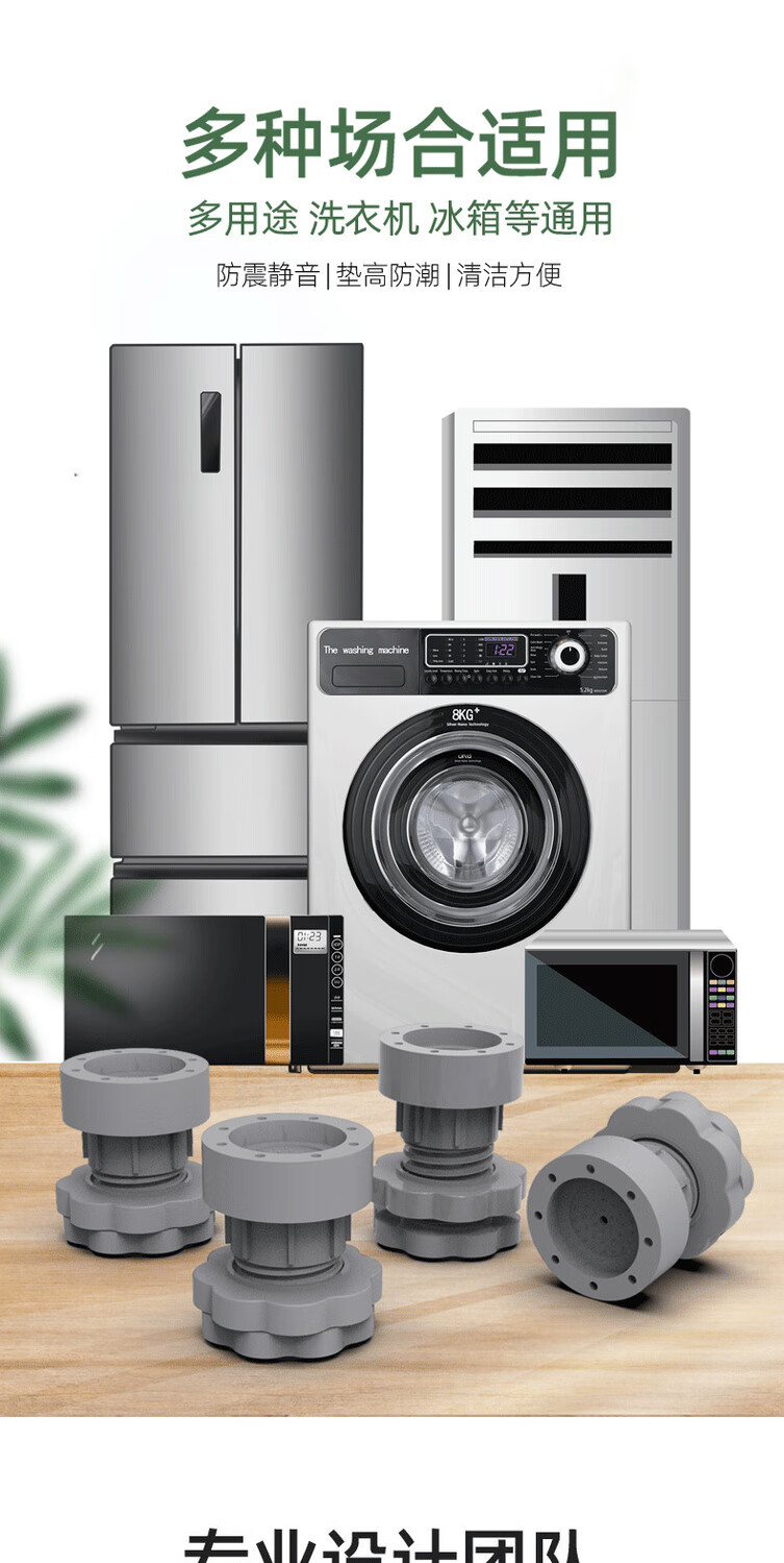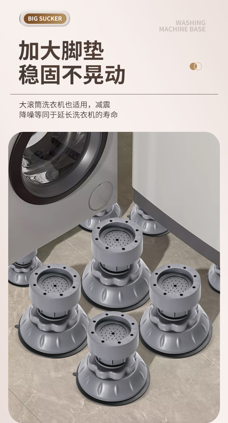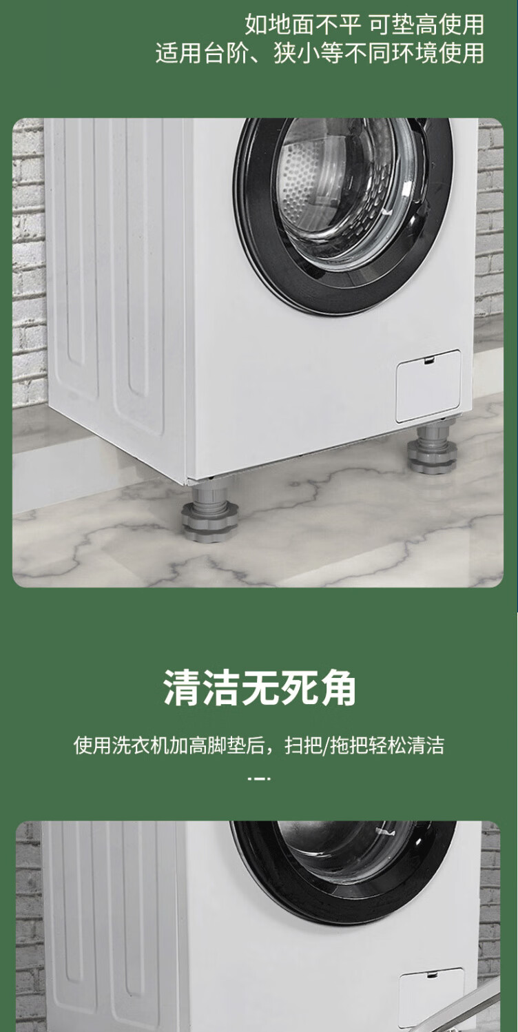 Meikejie washing machine base foot pad, anti-slip and shock-absorbing tripod, fully automatic drum pulsator, universal base pad, moisture-proof and heightening, 4 reinforced and adjustable feet, adjustable 9-12 cm