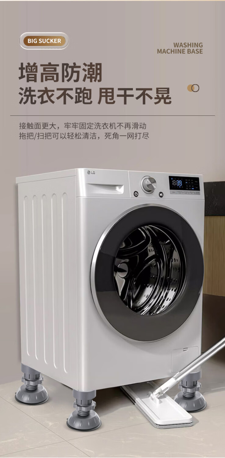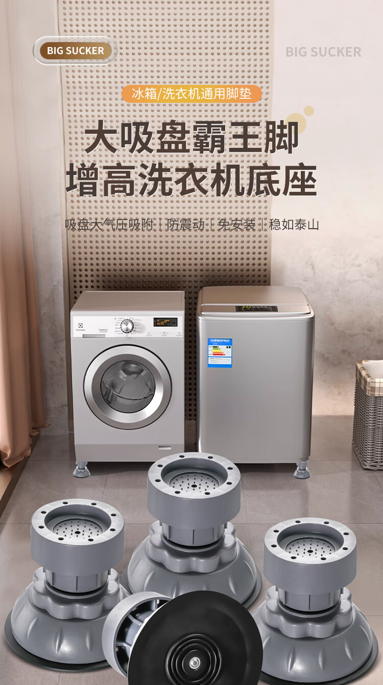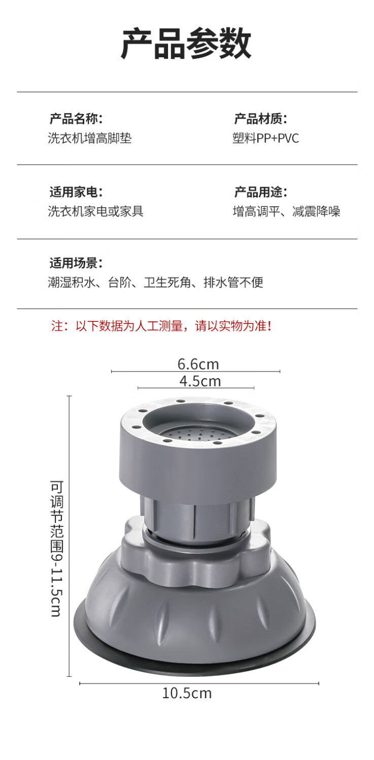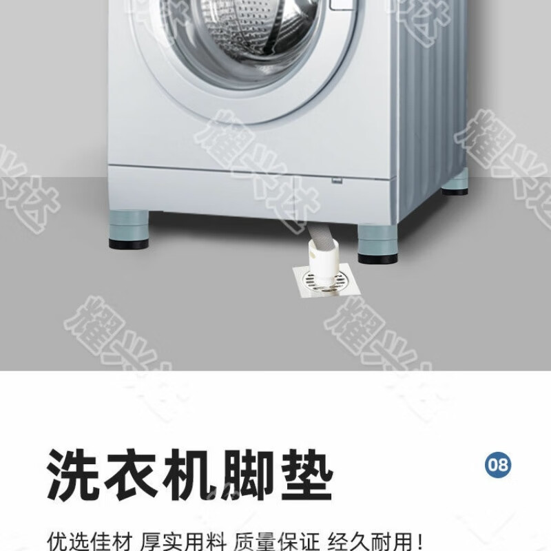 Meikejie washing machine base foot pad, anti-slip and shock-absorbing tripod, fully automatic drum pulsator, universal base pad, moisture-proof and heightening, 4 reinforced and adjustable feet, adjustable 9-12 cm