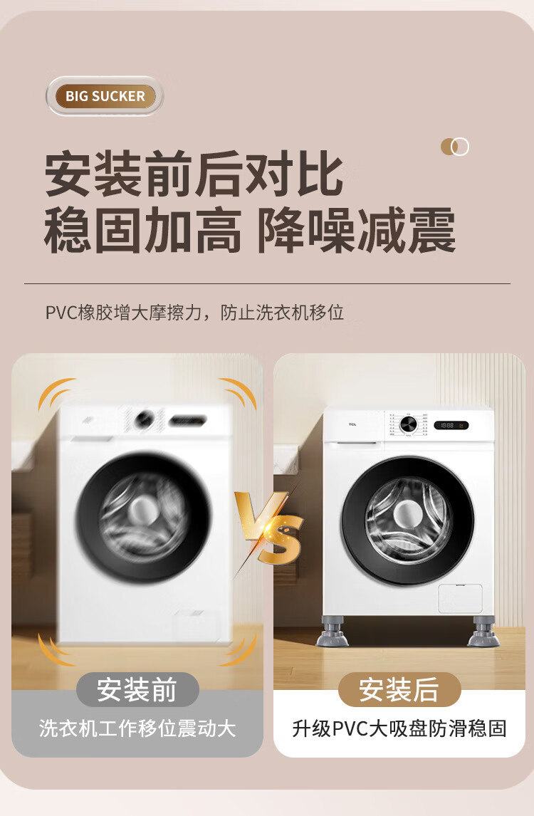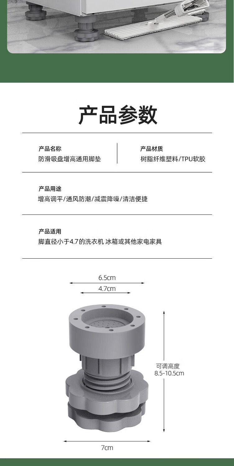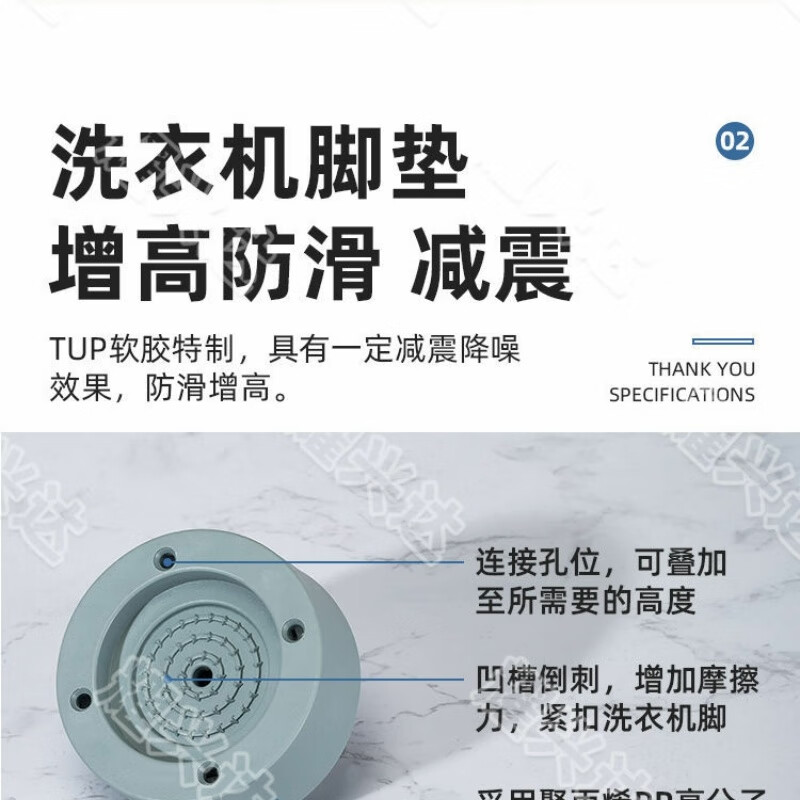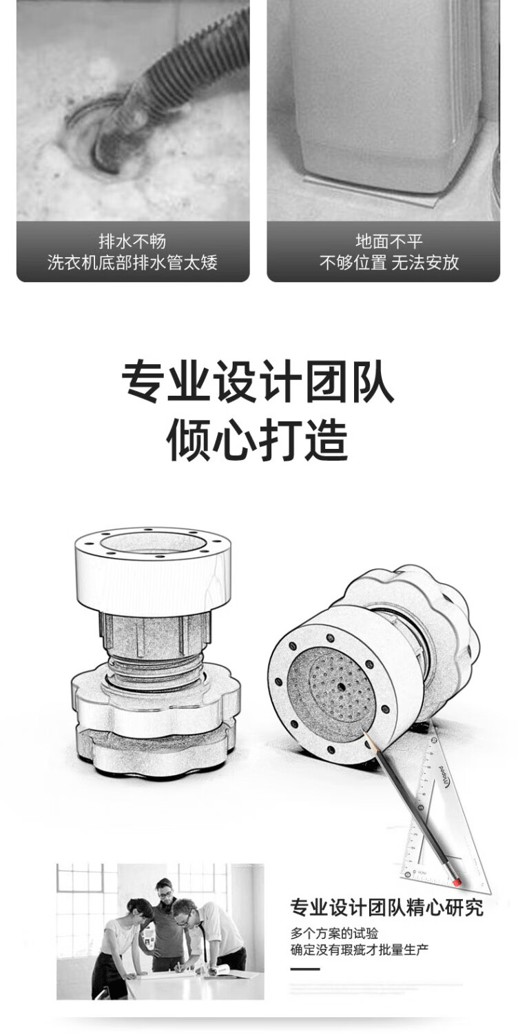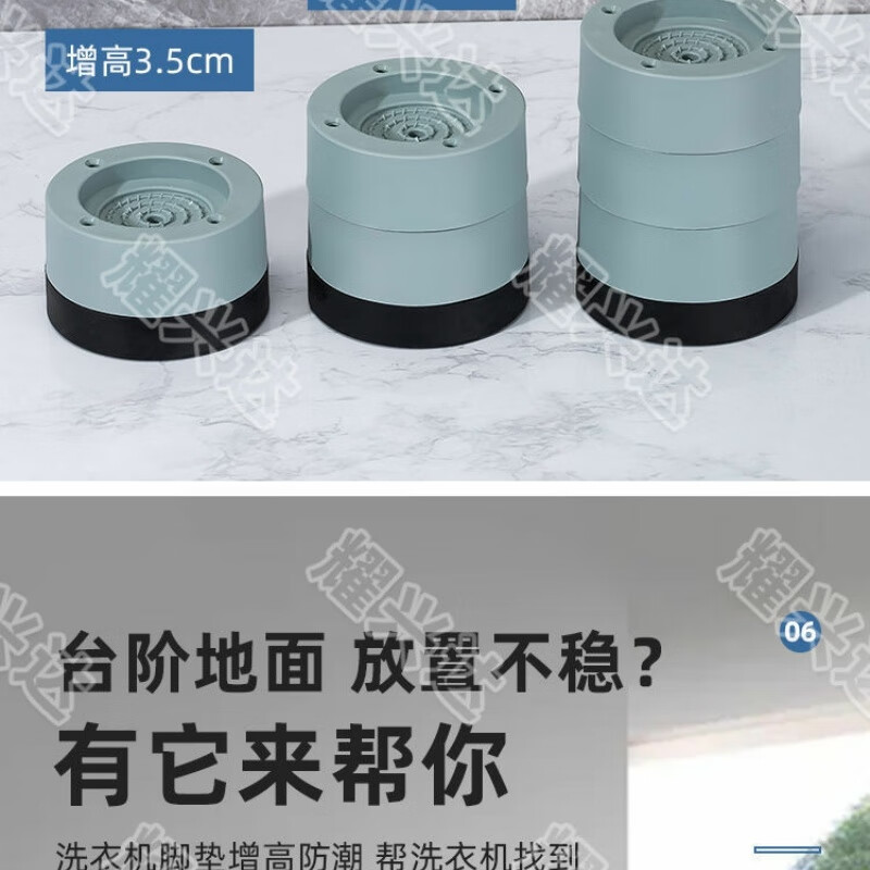 Meikejie washing machine base foot pad, anti-slip and shock-absorbing tripod, fully automatic drum pulsator, universal base pad, moisture-proof and heightening, 4 reinforced and adjustable feet, adjustable 9-12 cm