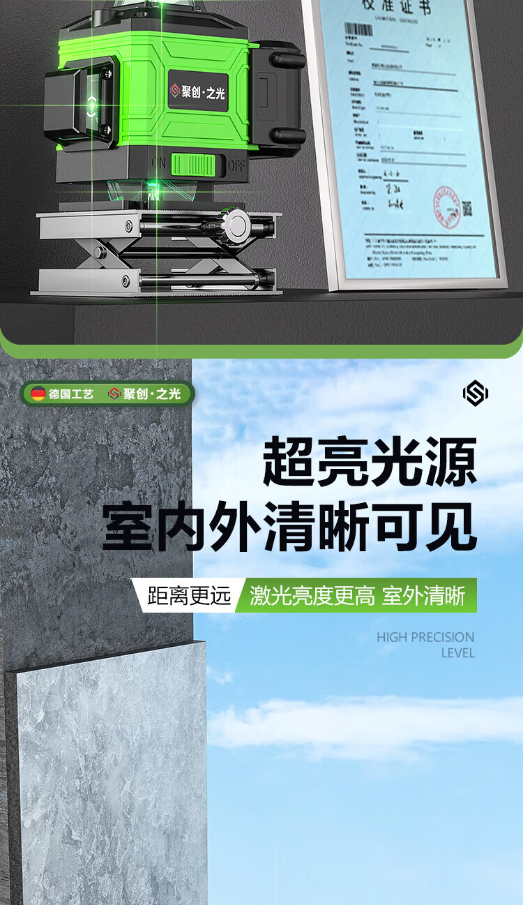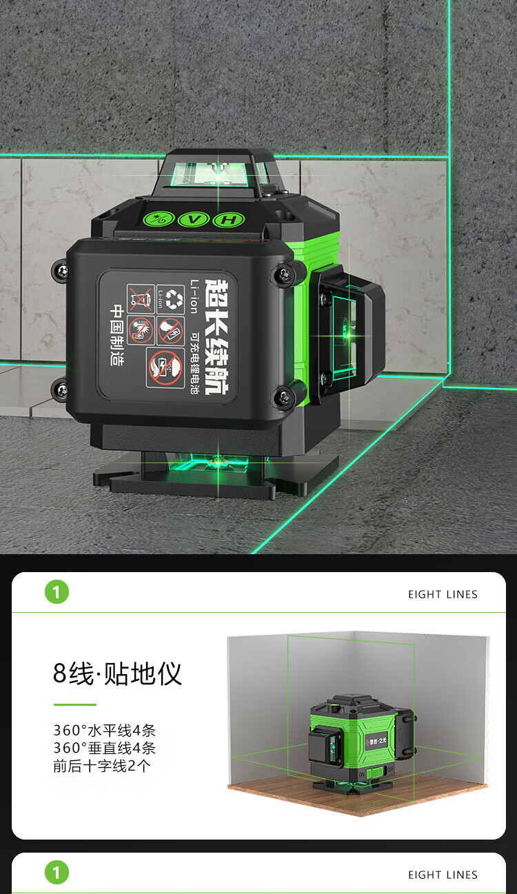 ZUIDID infrared level meter, strong light, green light, high-precision automatic thin line 12-line 16-line outdoor wall-mounted instrument. High-precision strong light 8-wire single electric