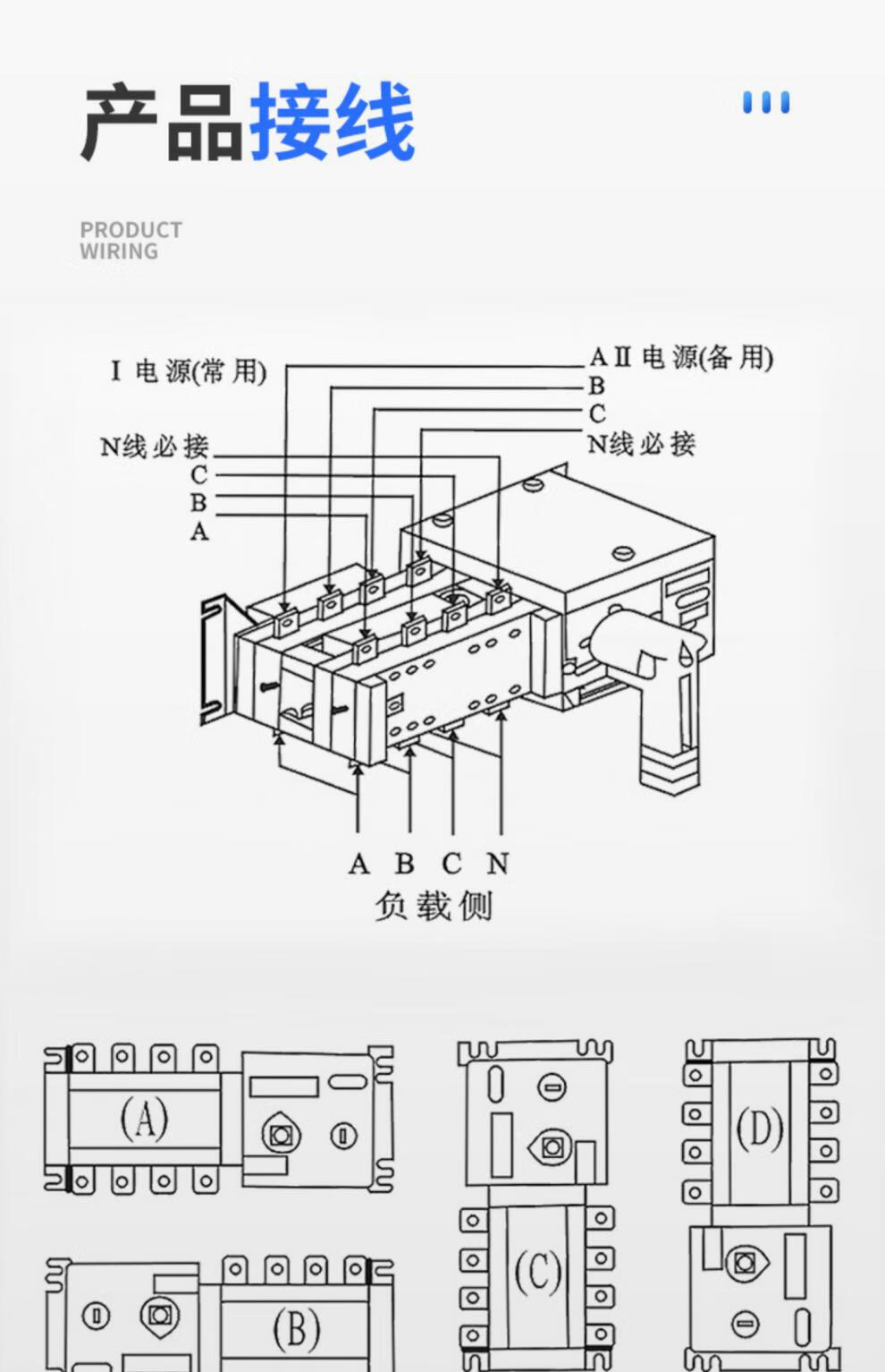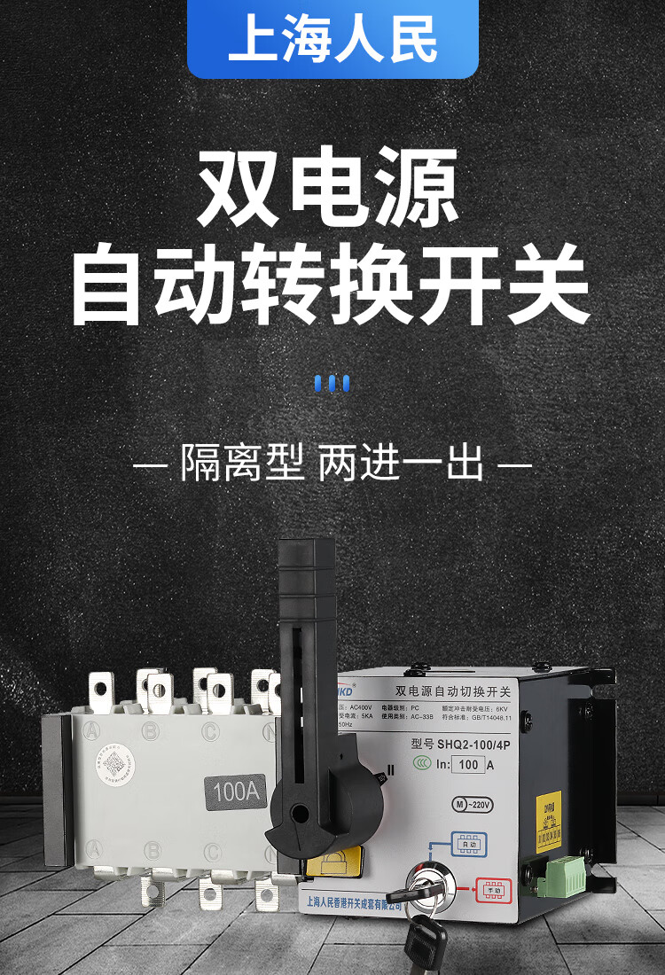 Shanghai People's dual power automatic transfer switch 4P100A250A three-phase four-wire isolation PC 4p 630A