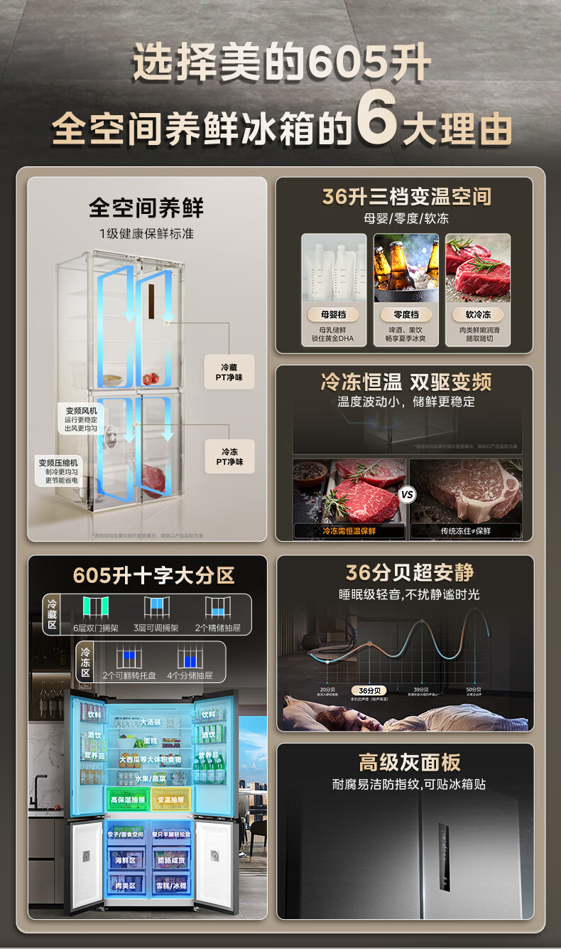 Midea 635 first-class energy-efficiency dual-frequency cross-shaped double-door four-door household smart refrigerator air-cooled, frost-free, ultra-large capacity (supports Hongmeng Zhilian) new product launched MR-635WSPZE