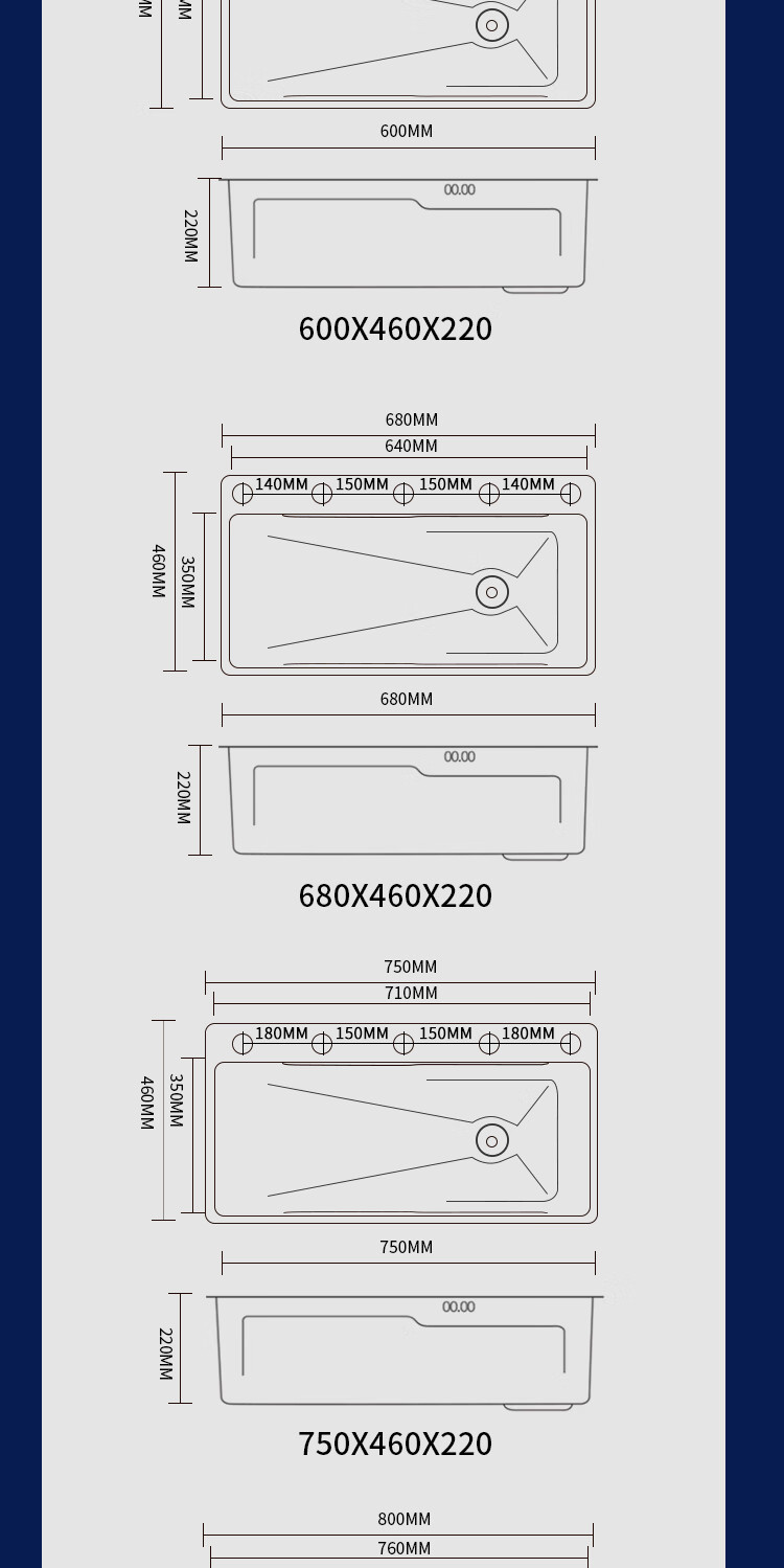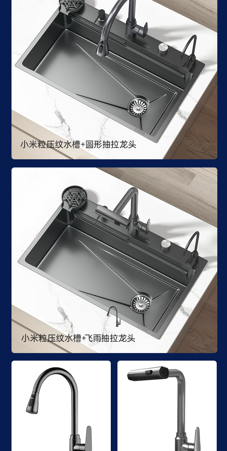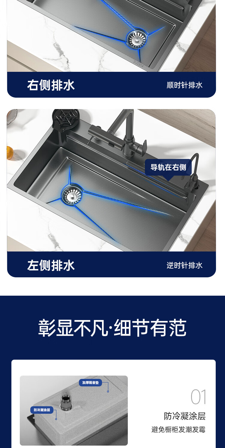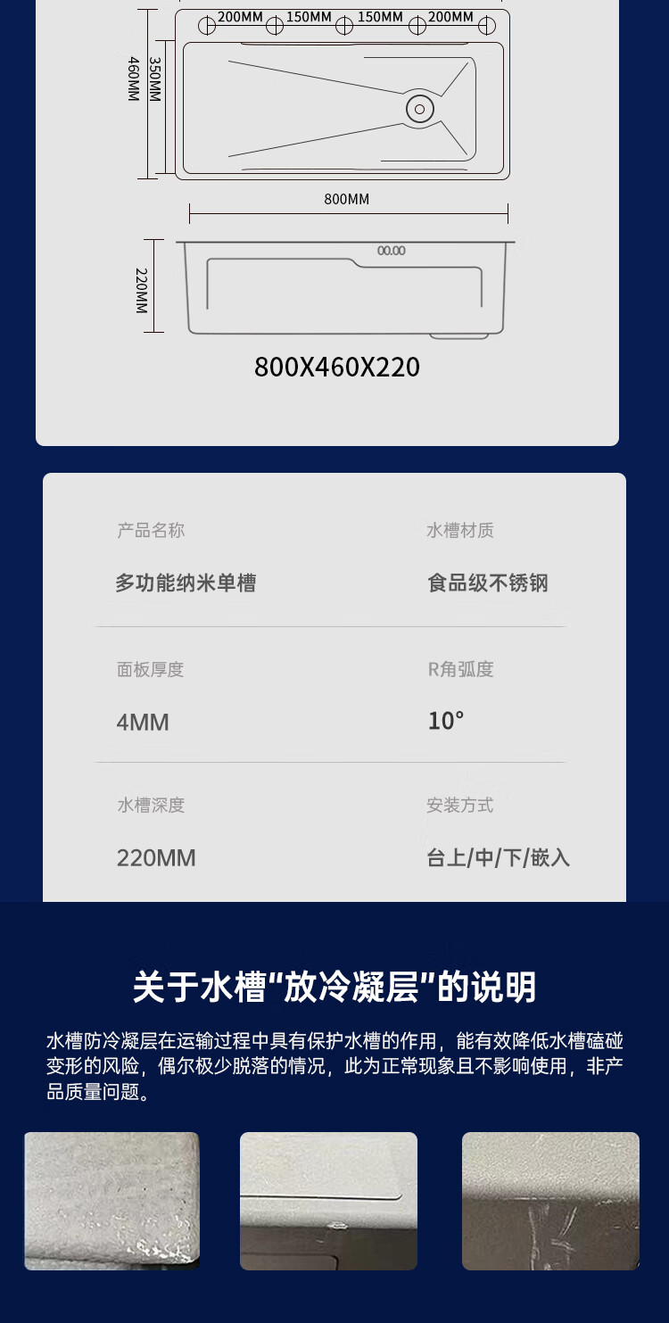 JOMOO Kitchen 304 Stainless Steel Nano Handmade Sink Large Single Slot Upper, Middle and Lower Sink Basin Household Sink Set Millet Type A/No Faucet 600*460