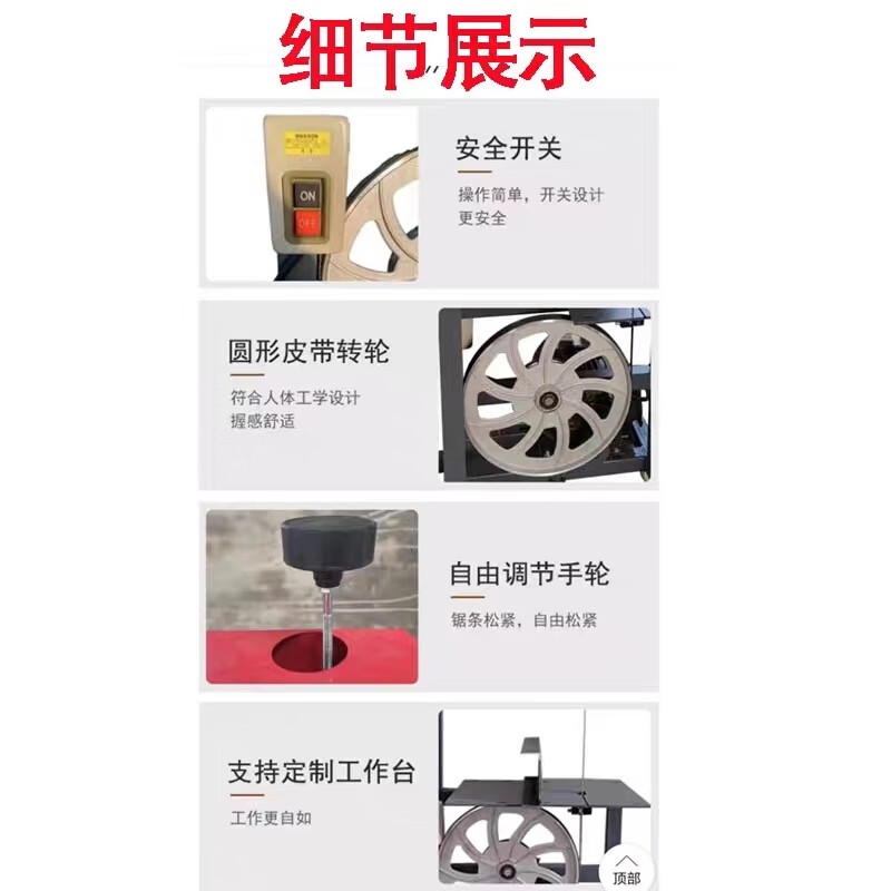Danstini woodworking band saw machine, round wood paneling, curved wood push table, depaneling, square cutting machinery, small band saw machine, 4 kilowatt two-phase electric 30 band saw machine, pure copper motor