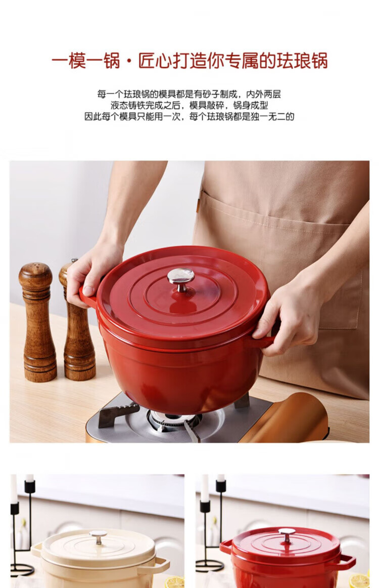 SSIIXX Japanese brand enamel pot ceramic pot flat bottom double-eared soup pot stew pot wok induction cooker universal household gift enamel pot induction cooker / gas stove 24cm
