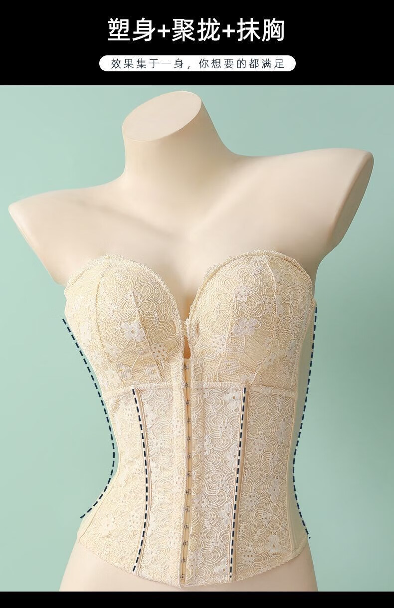 Strapless underwear for women's tube top wedding photos, special thickened small chest push-up non-slip body shaping waist bra, Sunshine Skin M 75B 34BAB Universal 3C