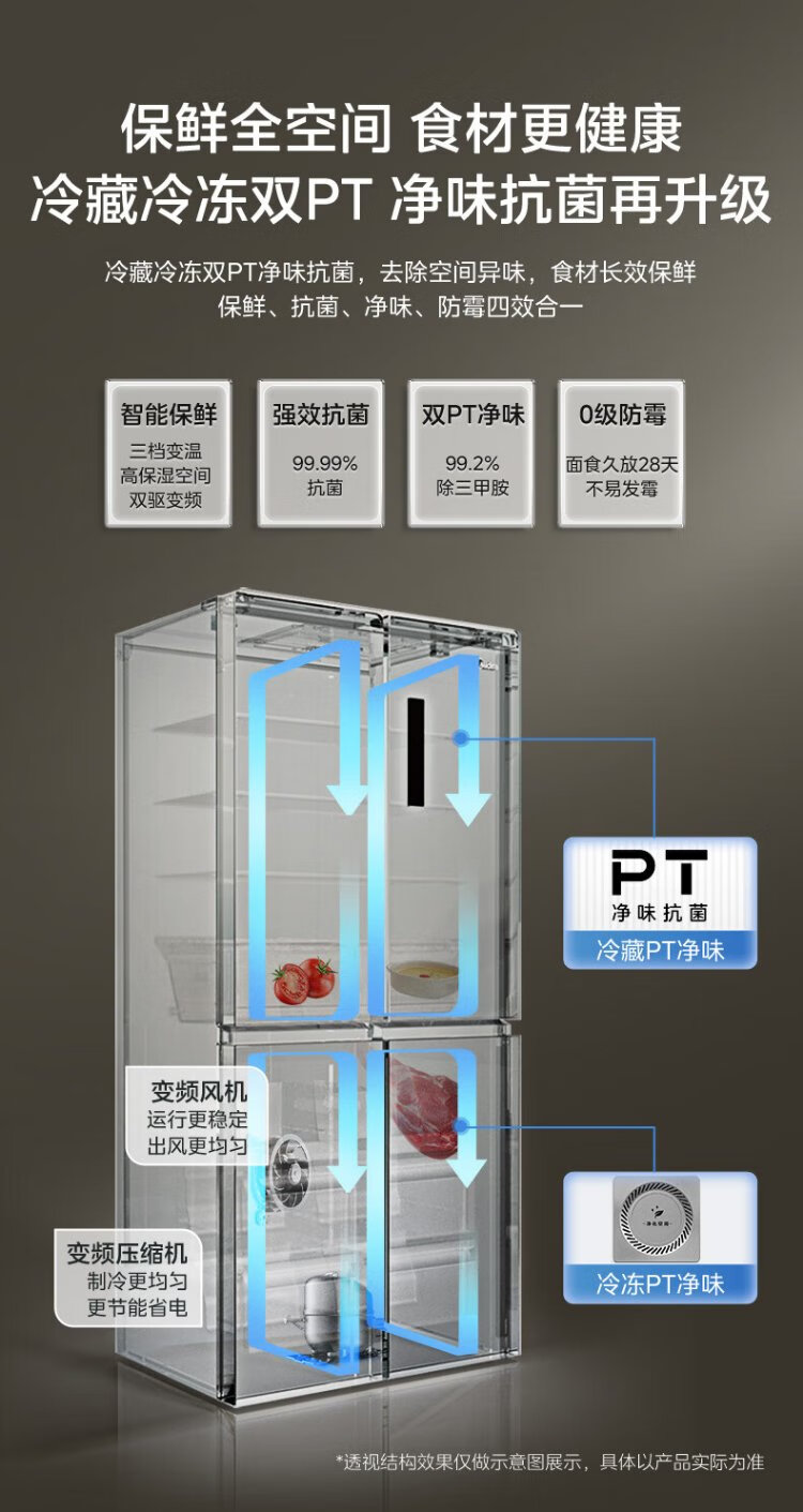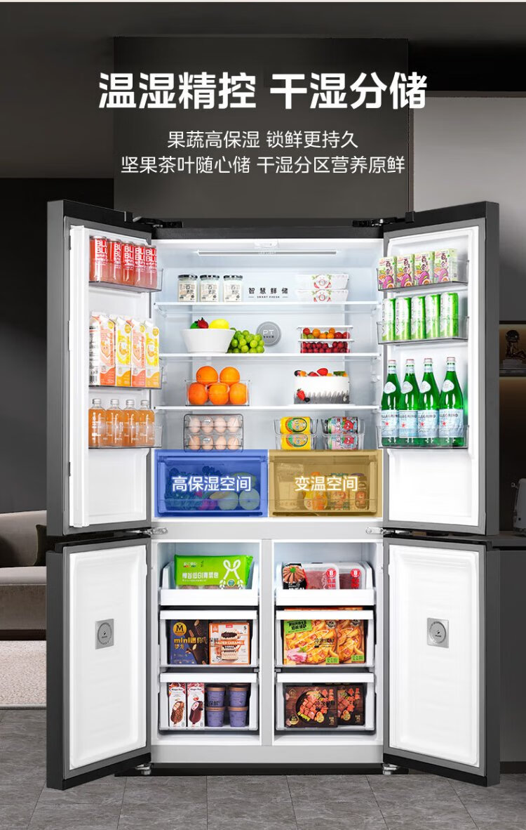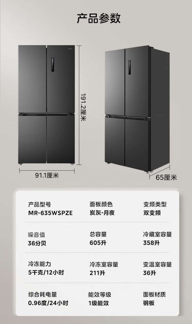 Midea MR-635WSPZE ultra-large capacity cross double-door four-door first-class energy-efficiency energy-saving dual-frequency air-cooled frost-free smart refrigerator with immediate subsidy discount
