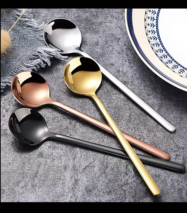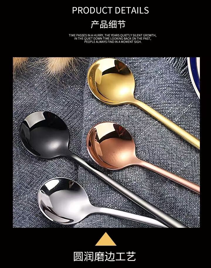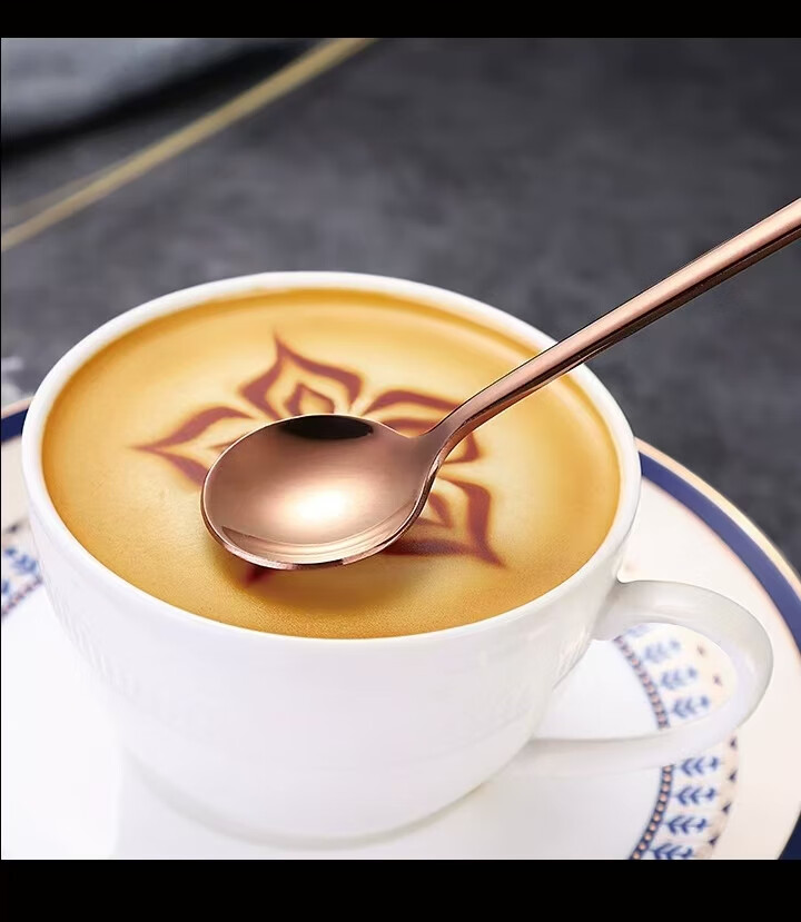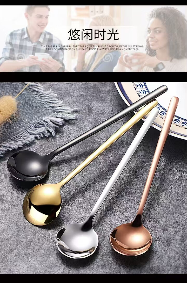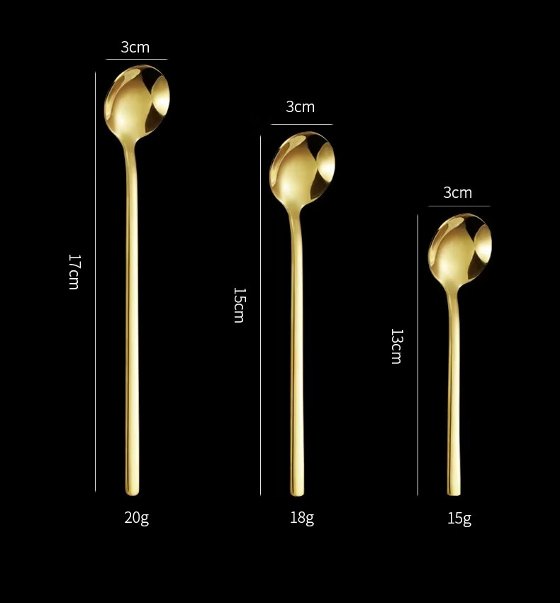 Fat Donglai's same coffee spoon stirring spoon 304 stainless steel small spoon golden small round spoon bird's nest spoon honey 410 15 cm small round spoon true color