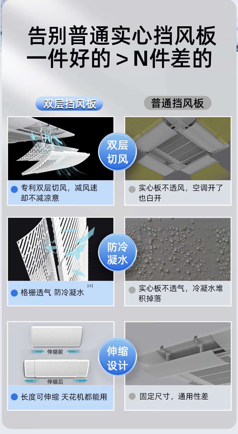 Langzhai central air-conditioning windshield, wind guide ceiling machine, air-conditioning outlet baffle, windshield, anti-direct blow ceiling machine, universal, standard style 1 piece, telescopic universal