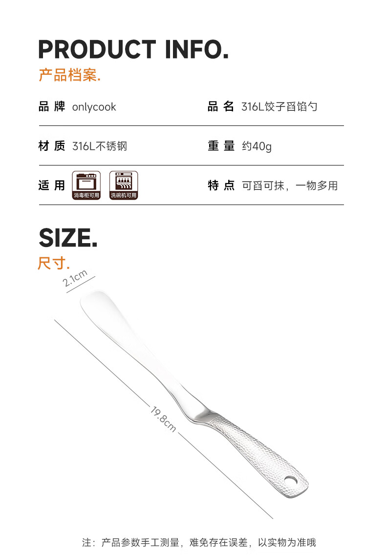 Onlycook316L stainless steel butter knife spoon dumpling filling spoon multi-functional butter jam knife wonton filling tool single 316L dumpling filling spoon/butter knife
