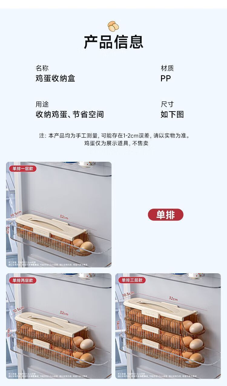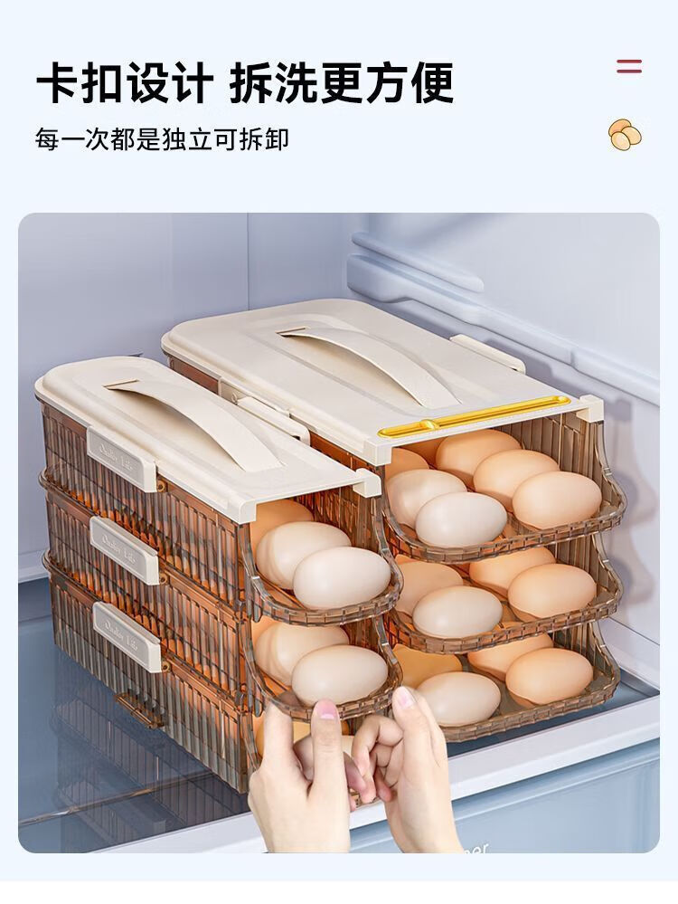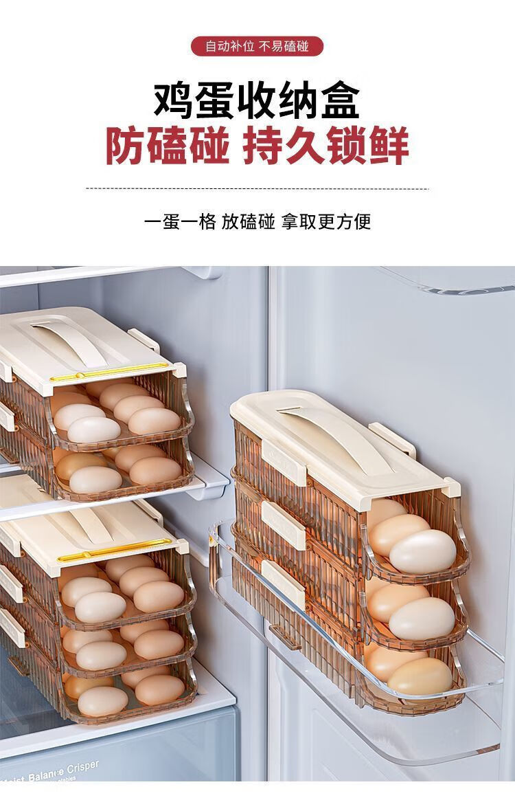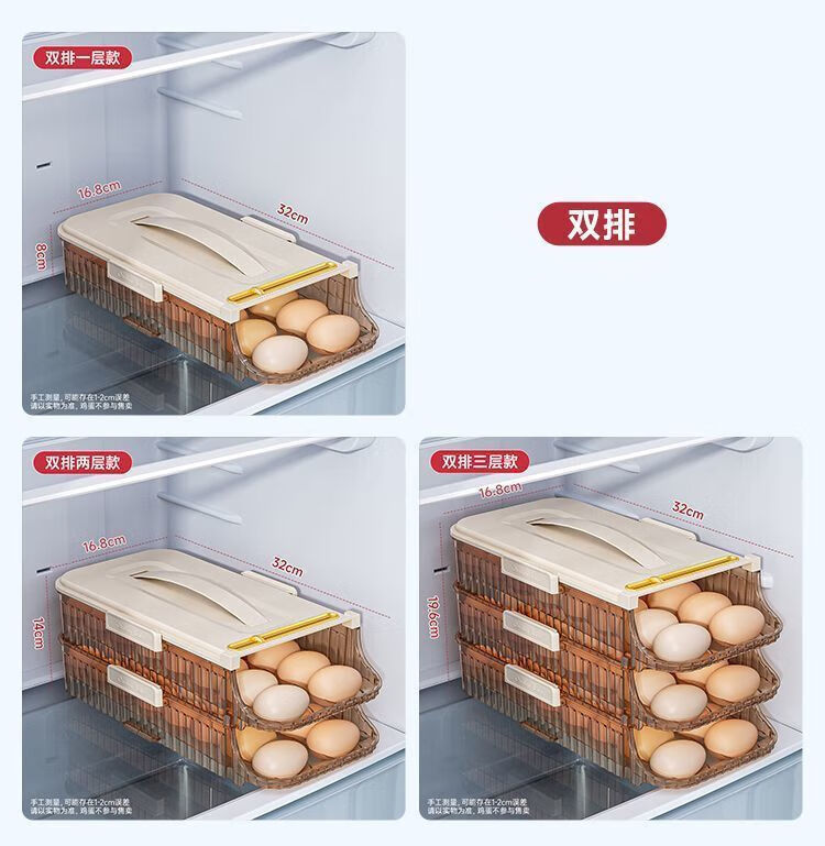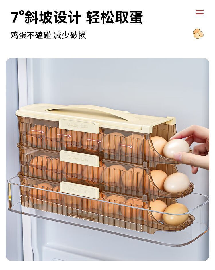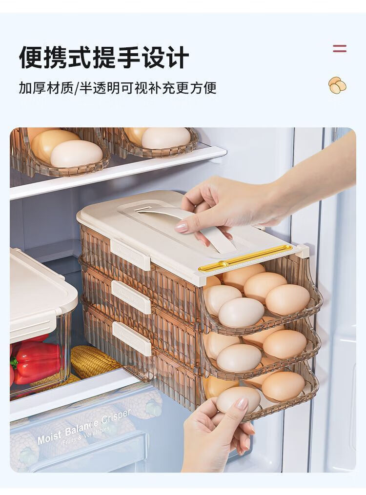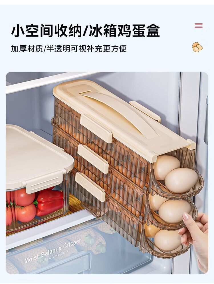 OMGD German quality egg storage box refrigerator with side door egg tray portable food grade automatic rolling egg box to put the whole egg box double row two layers can hold 28 eggs