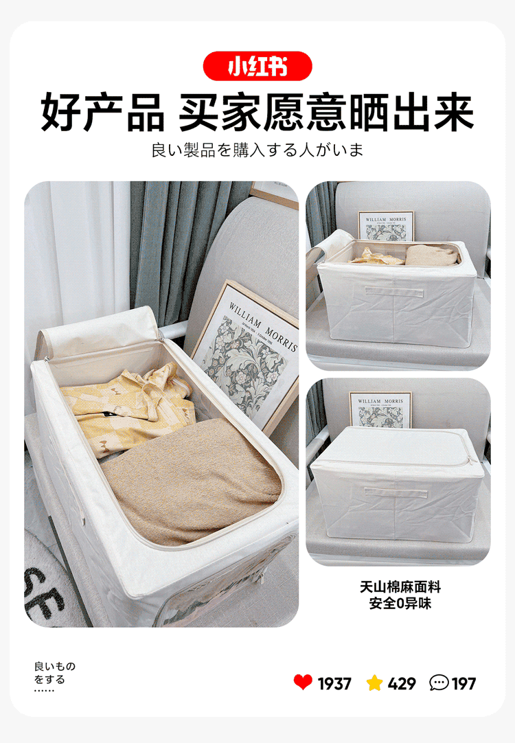 Zhifan Japanese seasonal clothes storage box organizer wardrobe clothing layering artifact household fabric wardrobe storage special large size - 4 pieces thick sprayed steel frame