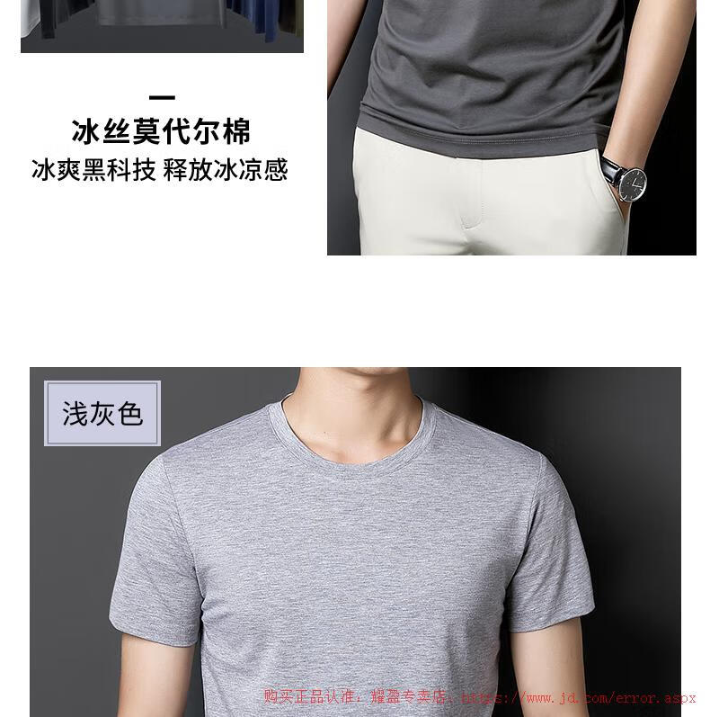 Modal high-end ice silk short-sleeved T-shirt for men in summer thin solid color cool half-sleeved T-shirt sweat-wicking quick-drying cool top light gray 4XL (suitable for 185-210 pounds)