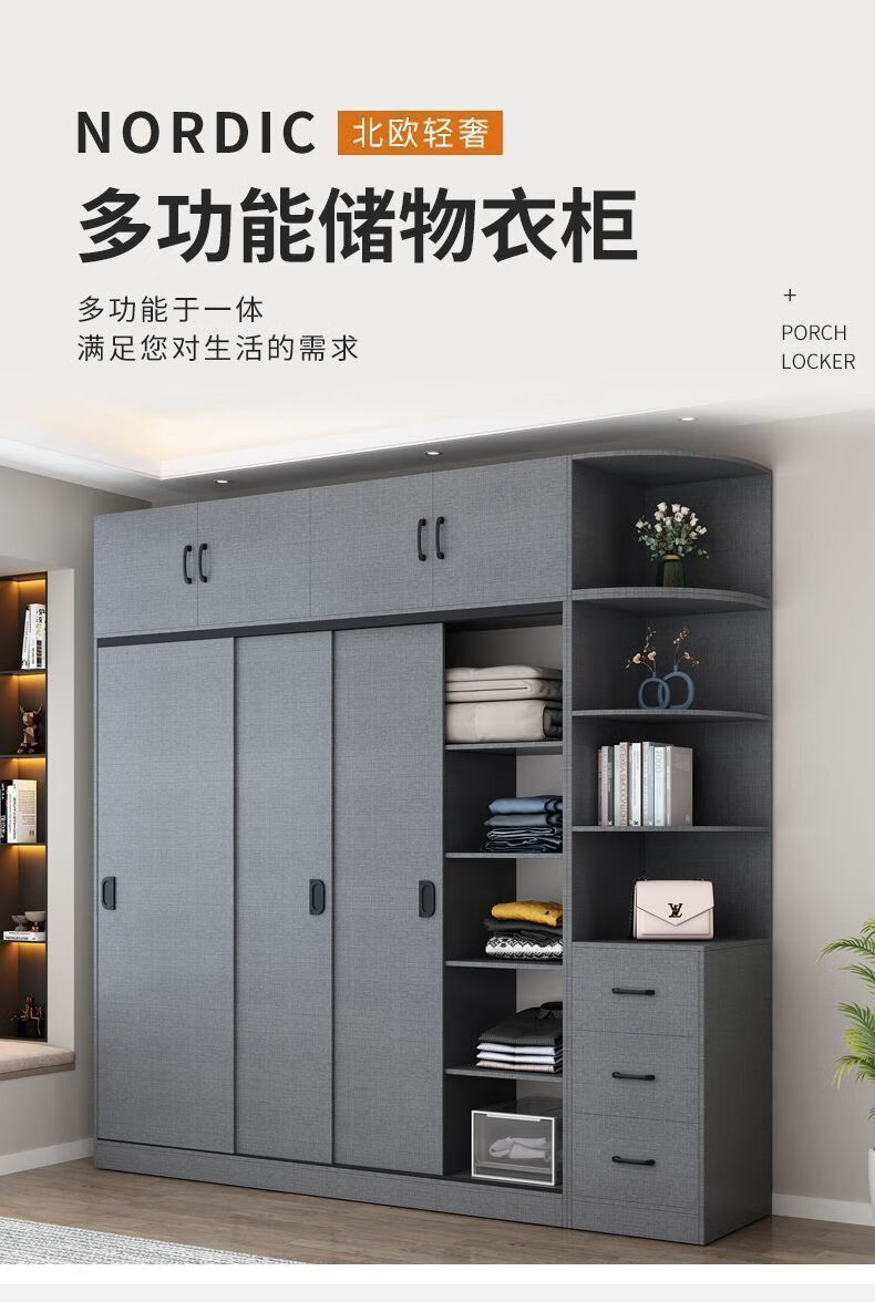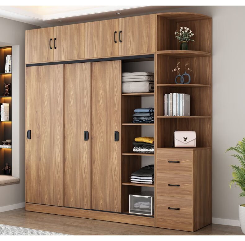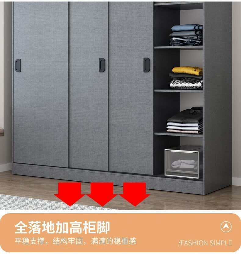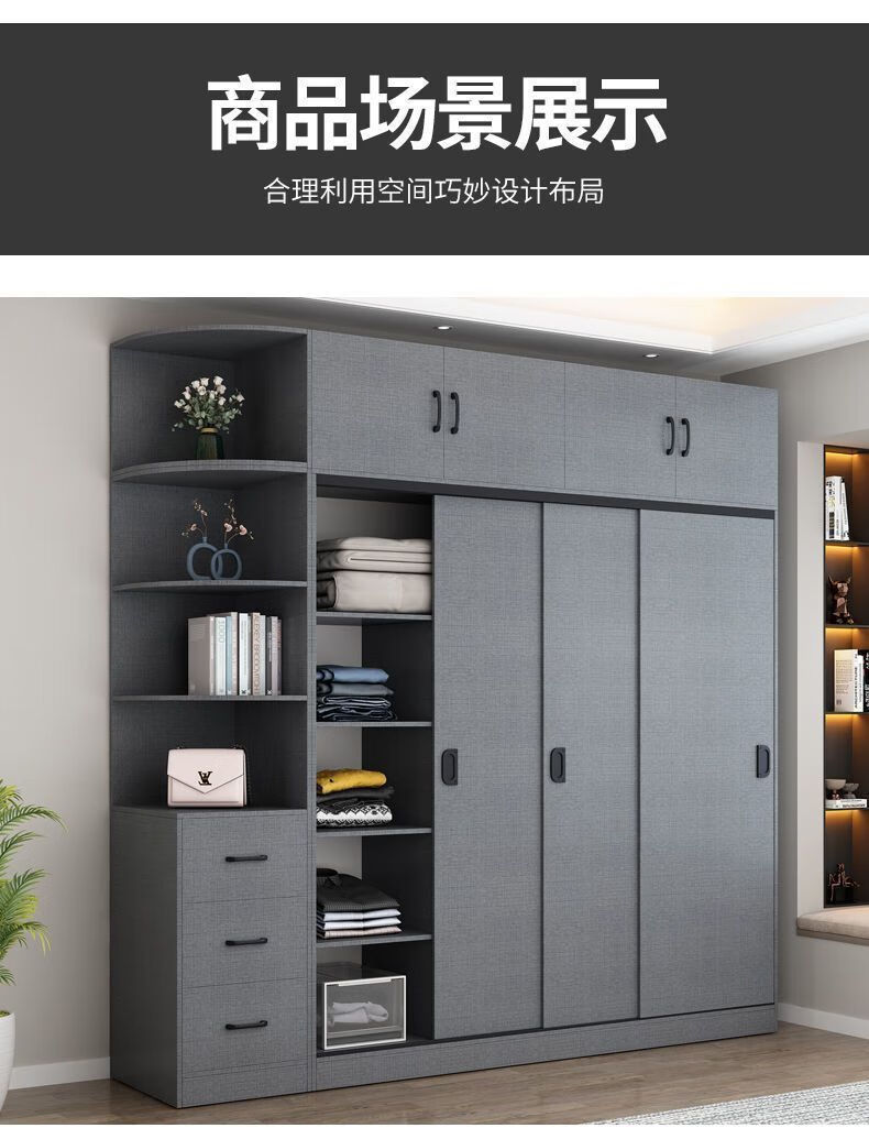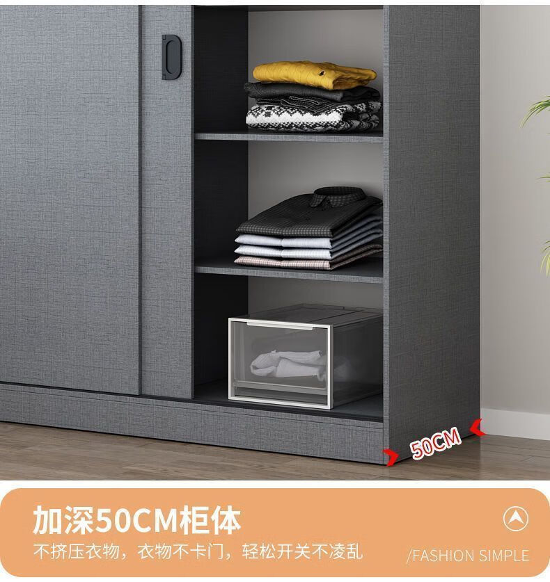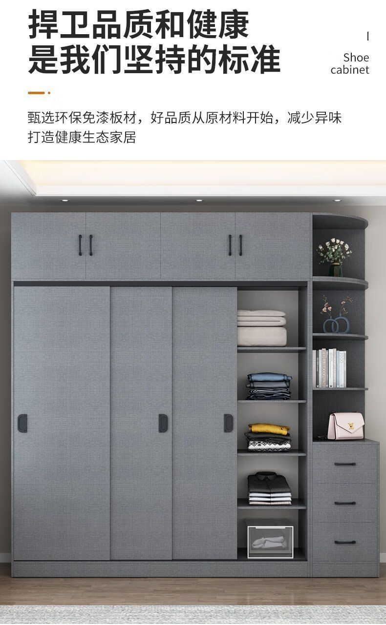 Yinhe Wardrobe Home Bedroom Modern Simple Sliding Door Wooden Cabinet Rental Economical Milk White Delivered Downstairs + Installation by Yourself 80 Width 40 Height 180 Centimeters Single Cabinet
