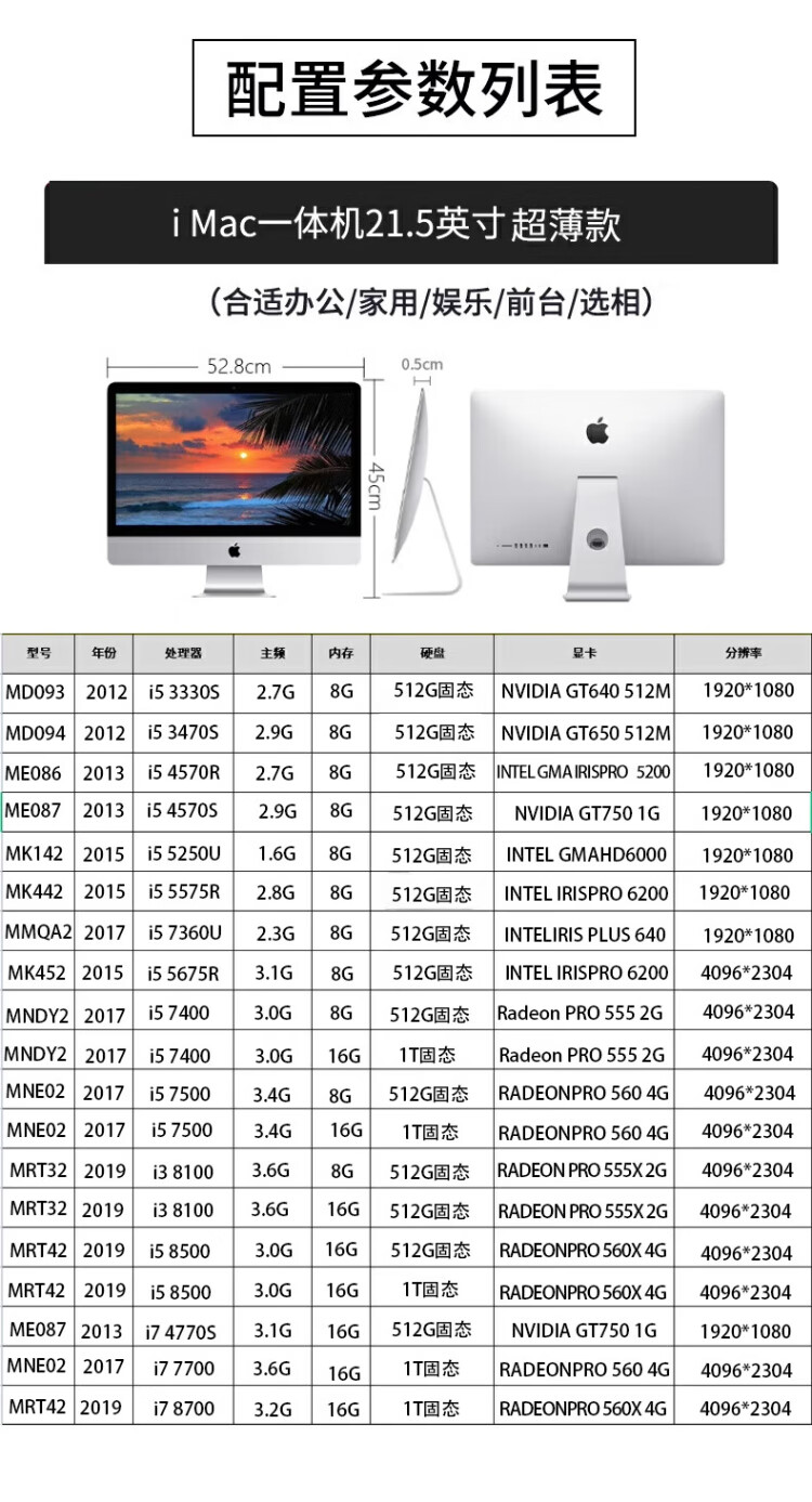 Apple iMac Apple all-in-one computer 95 new i5 office independent display business office game design form document computer online class learning 442-i5 8G 512 21.5 inches