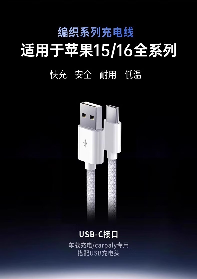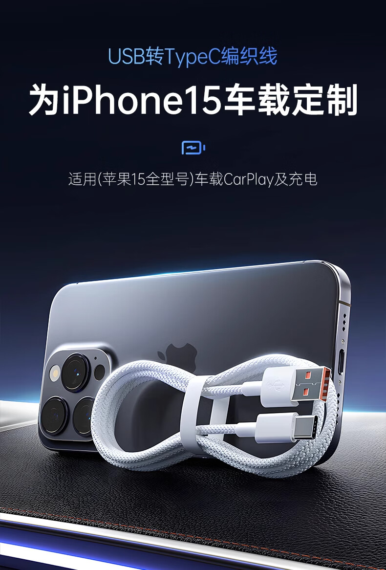 Jingdong Express data cable usb to type c fast charging charging cable mobile phone usb-c suitable for iPhone Apple ipad/16/15pro max car Carplay suitable for Apple 15/16 car charging 1.0 meters one pack