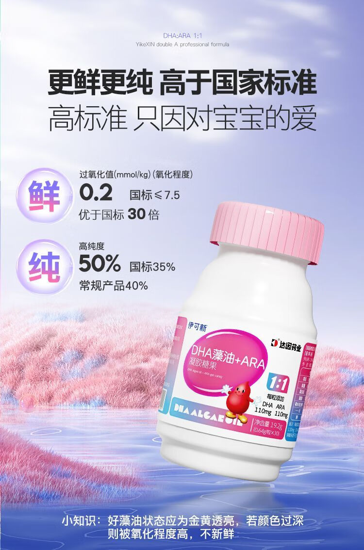 Yikexin genuine source code Yikexin DHA algae oil + ARA gel candy capsules infant DHA algae oil capsules 25 years latest date - authentic anti-counterfeiting can be checked Yikexin 2 boxes of 60 capsules
