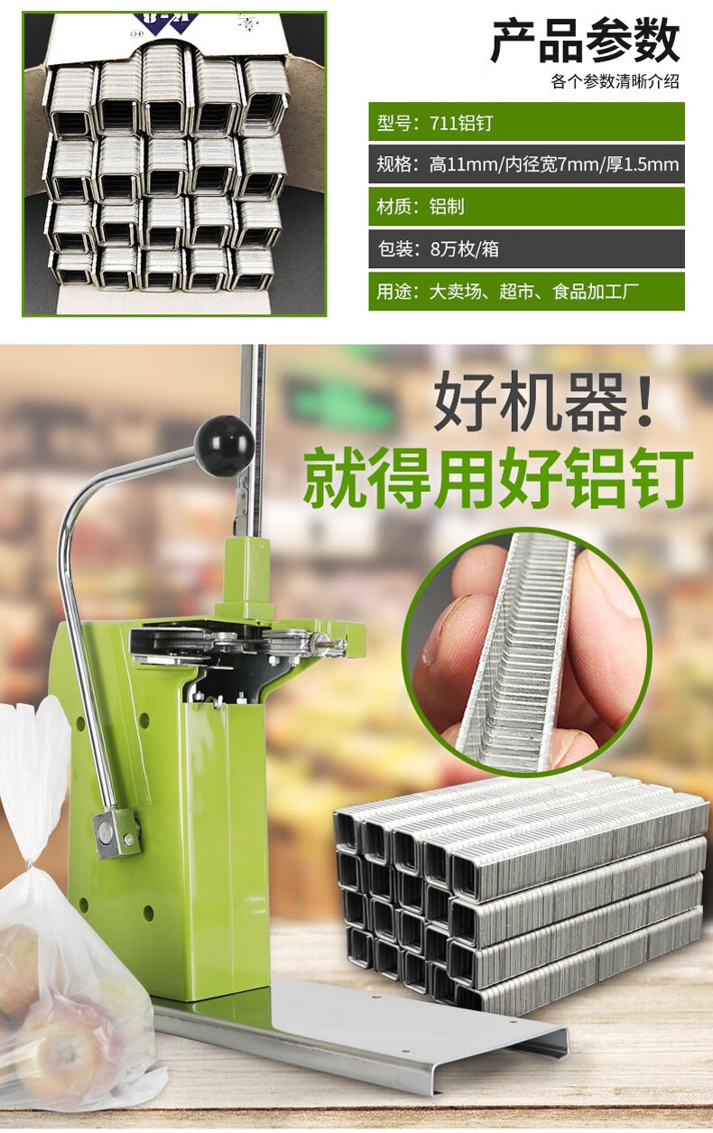 711 aluminum nailing machine plastic bag tape supermarket sealing machine fruit and vegetable roll bag special k-8 punching aluminum nailing machine