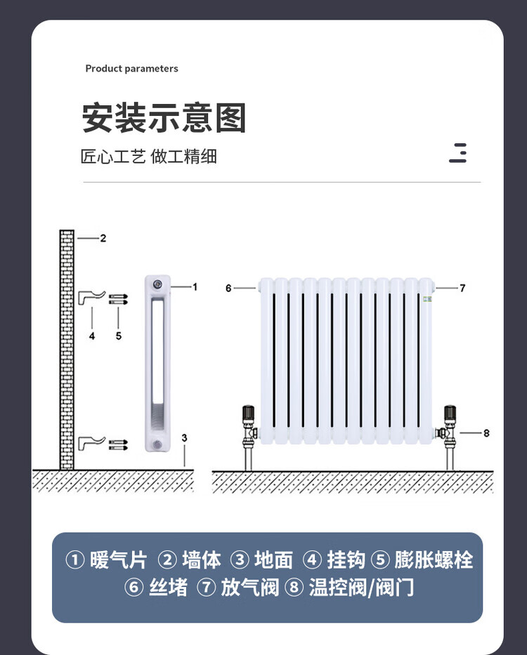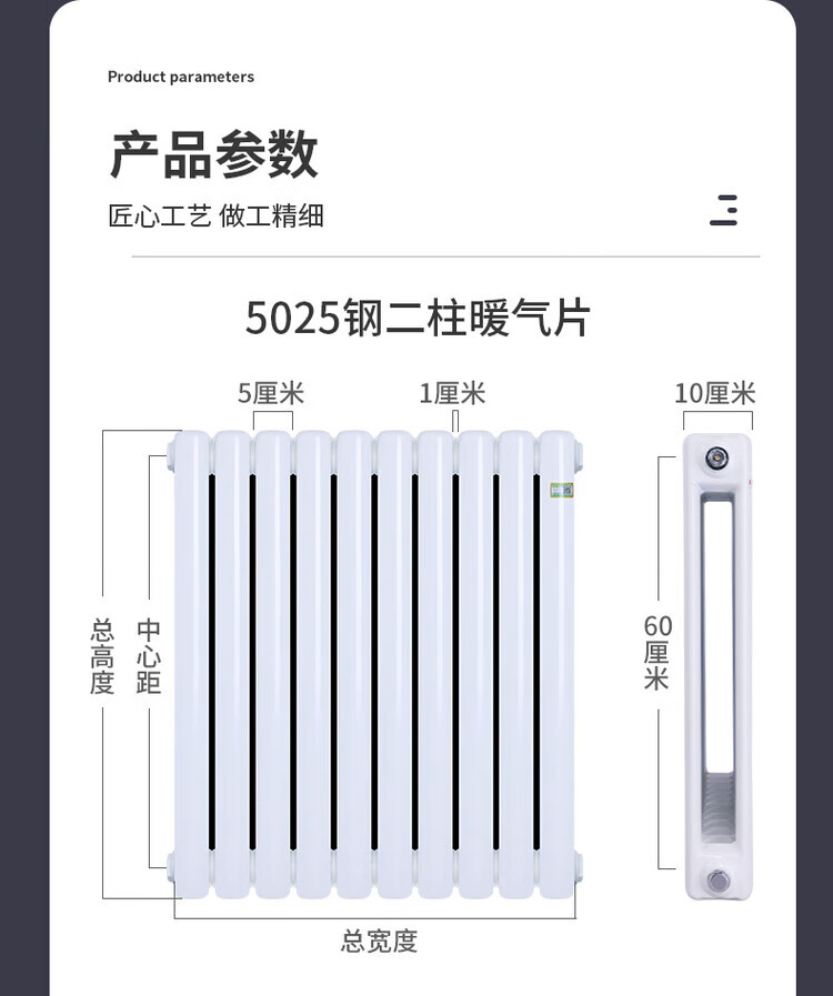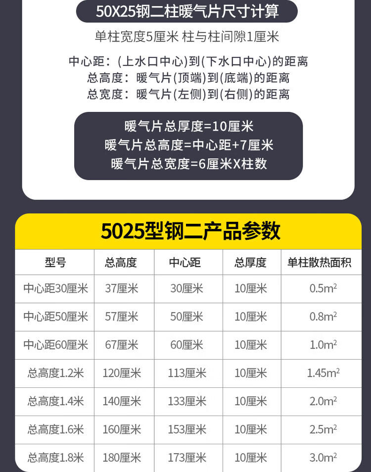 Yueming household water heating wall-mounted radiator steel 5025 large water channel central heating surface-mounted radiator center distance 600*20 columns