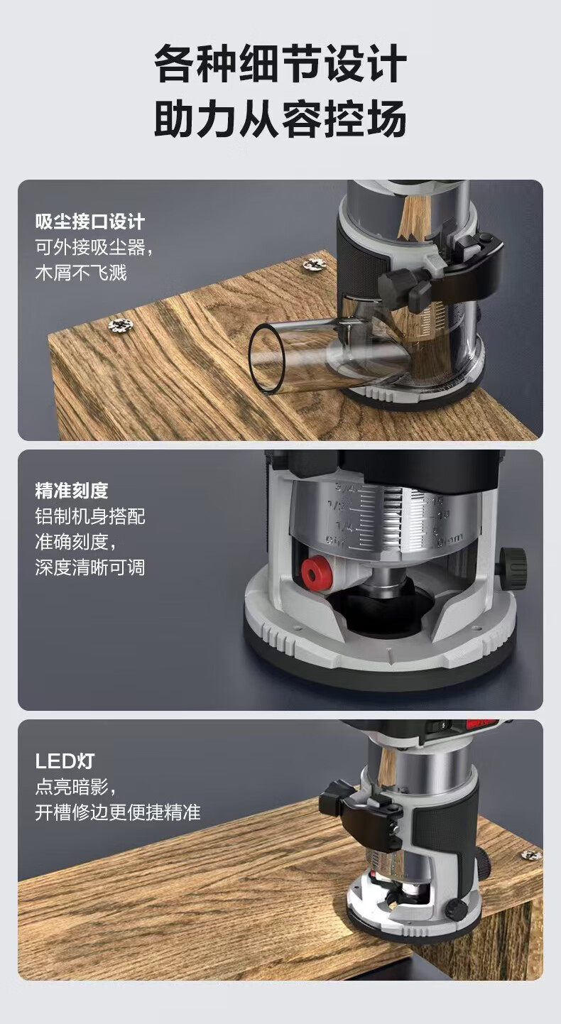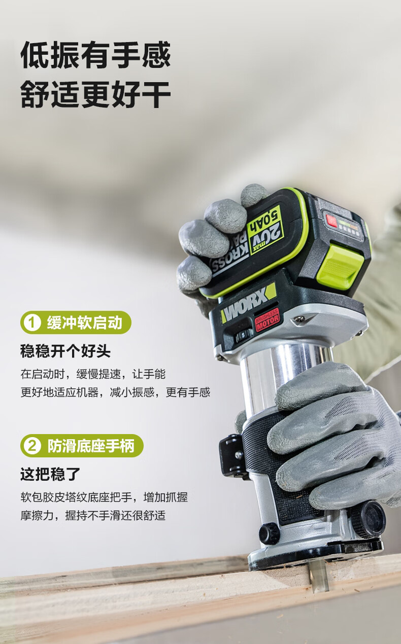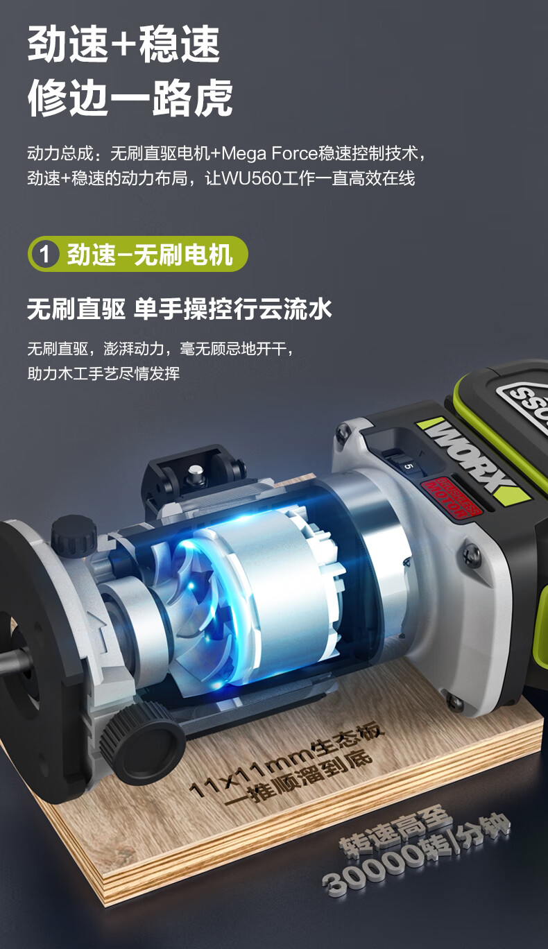 Wicks Wicks WU560 lithium battery brushless trimming machine 20V small gong electromechanical wood milling board aluminum plastic board woodworking slotting Wicks WU560 bare metal trimming machine