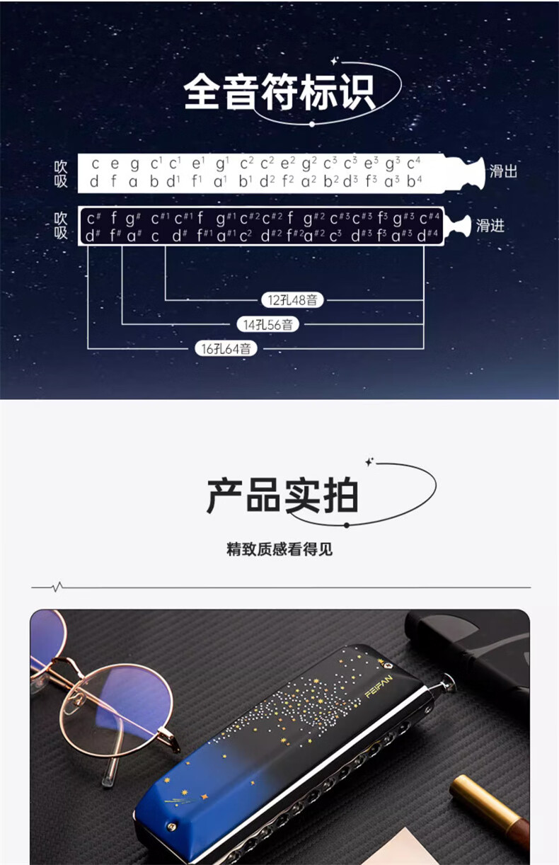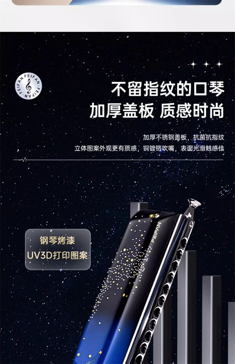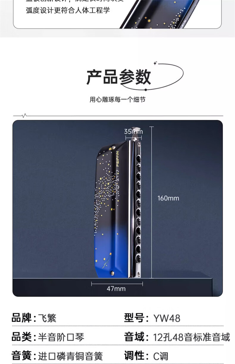 Feifan Feifan chromatic harmonica starry sky Yw48 professional performance novice 12-hole C key adult beginner student introduction