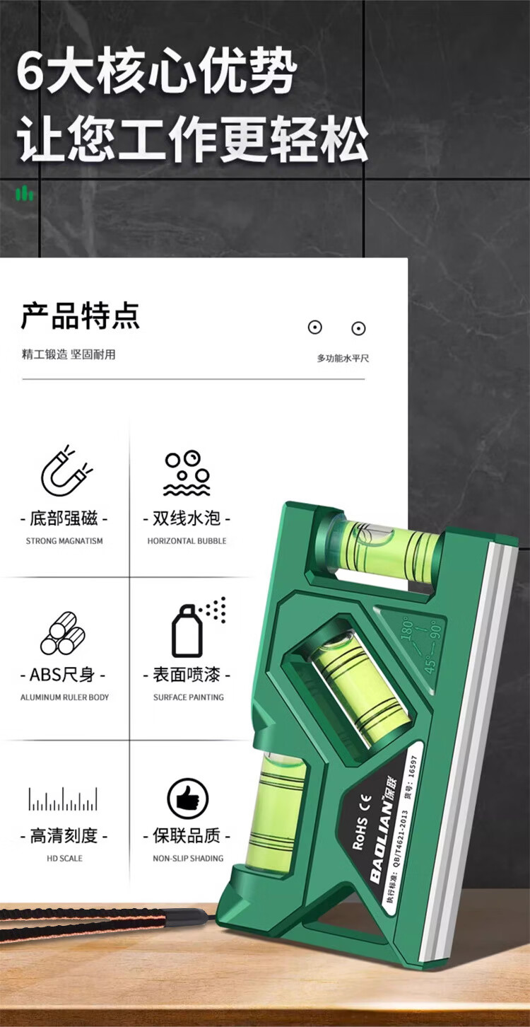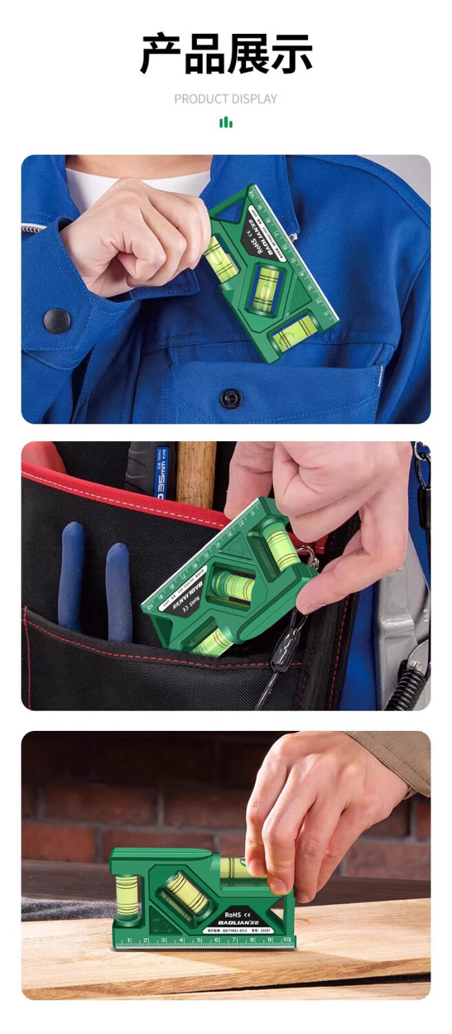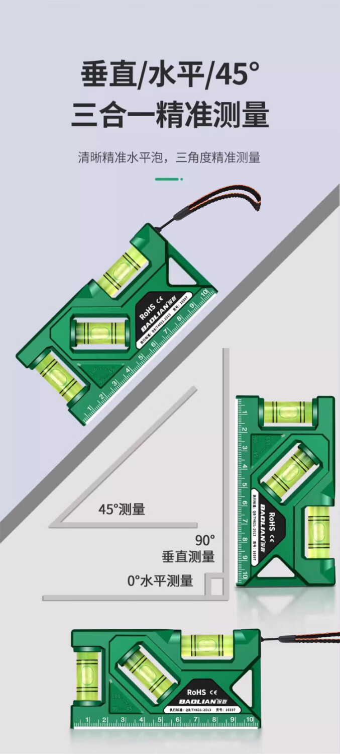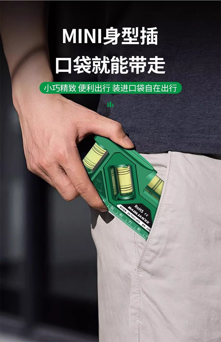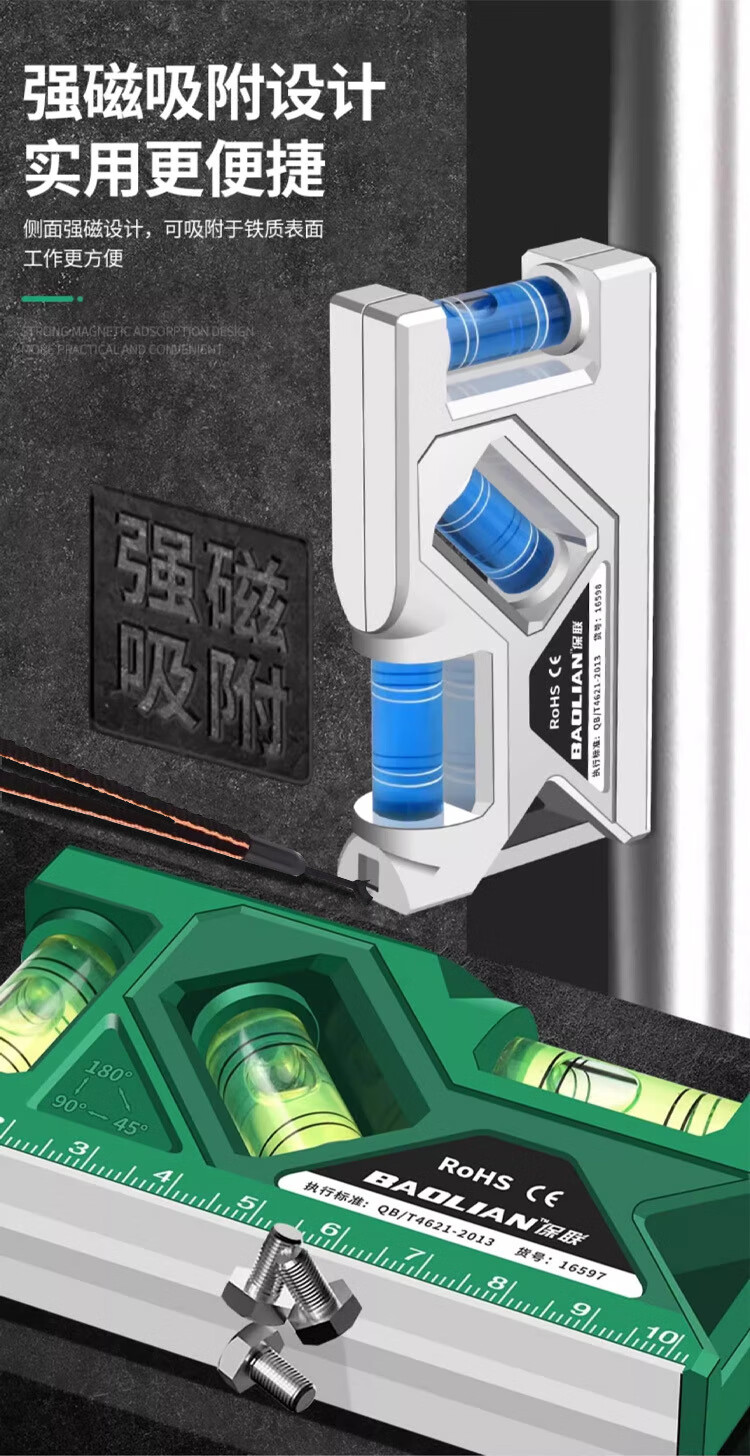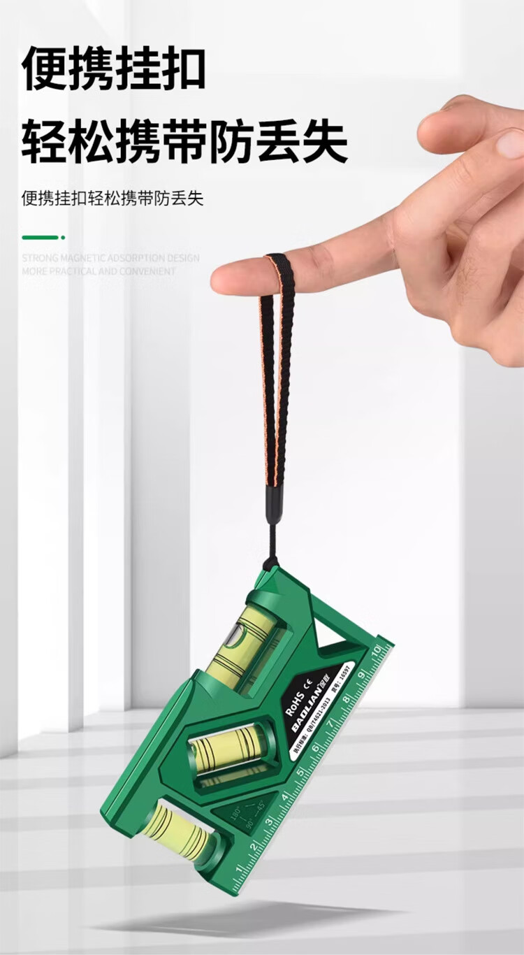 Qinkai level strong magnetic household high-precision water level meter socket switch protractor measurement anti-fall fan 105mm green