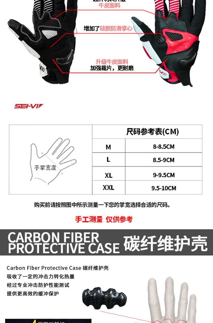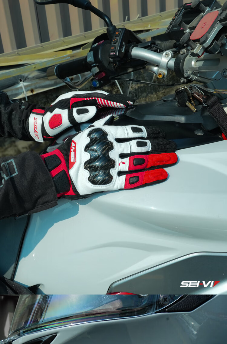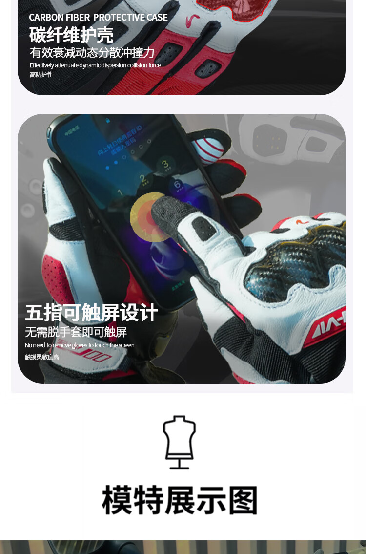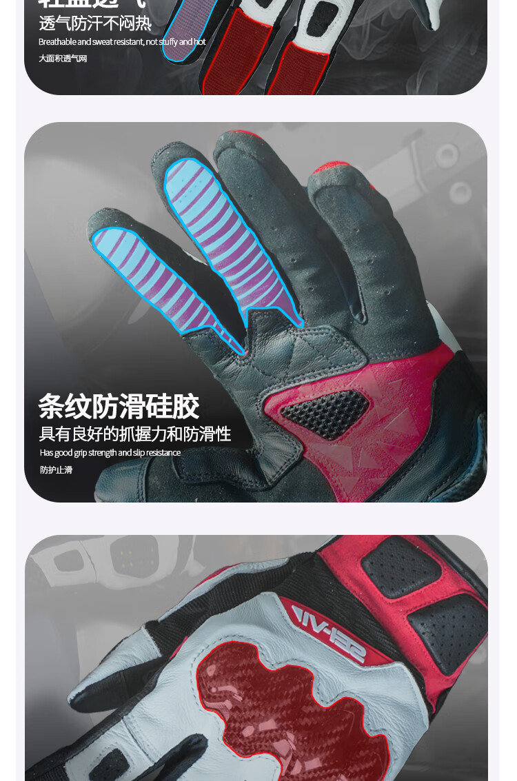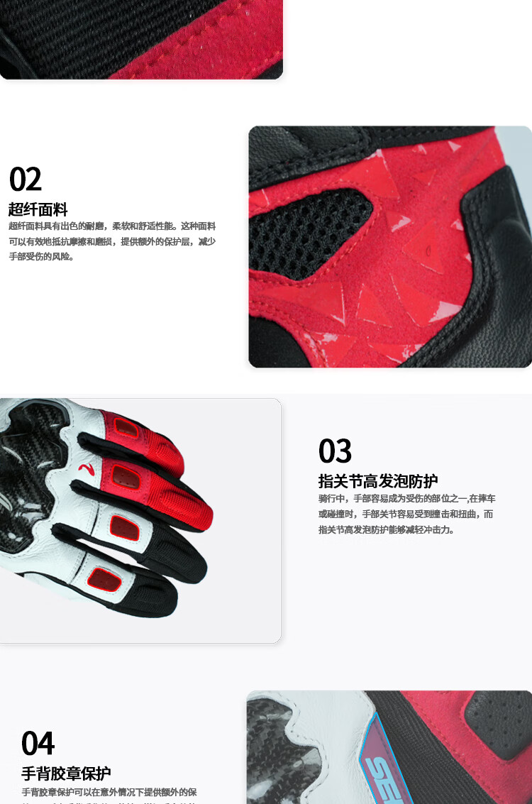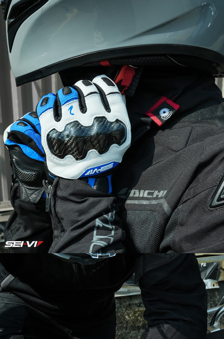 SEI-VI Motorcycle Summer Riding Gloves Upgraded Version Men's Breathable Touch Screen Anti-fall Racing Carbon Fiber Motorcycle Gloves GB2-Genuine Leather-Blue and White Five-Finger Touch Screen XXL (Palm Width 9.5-10cm)