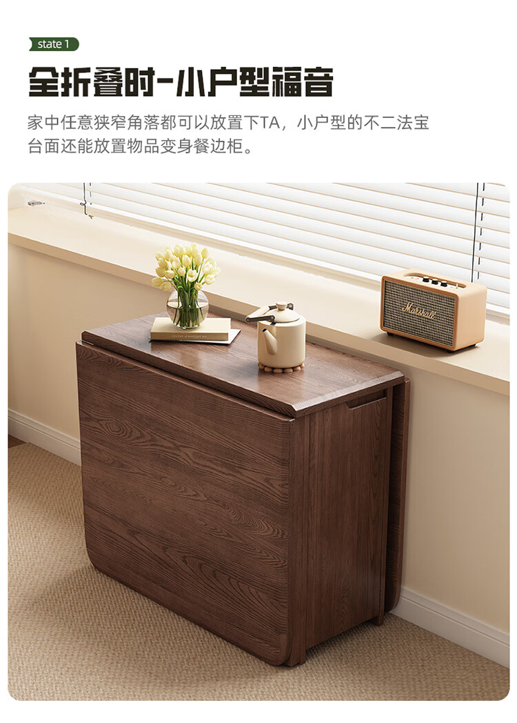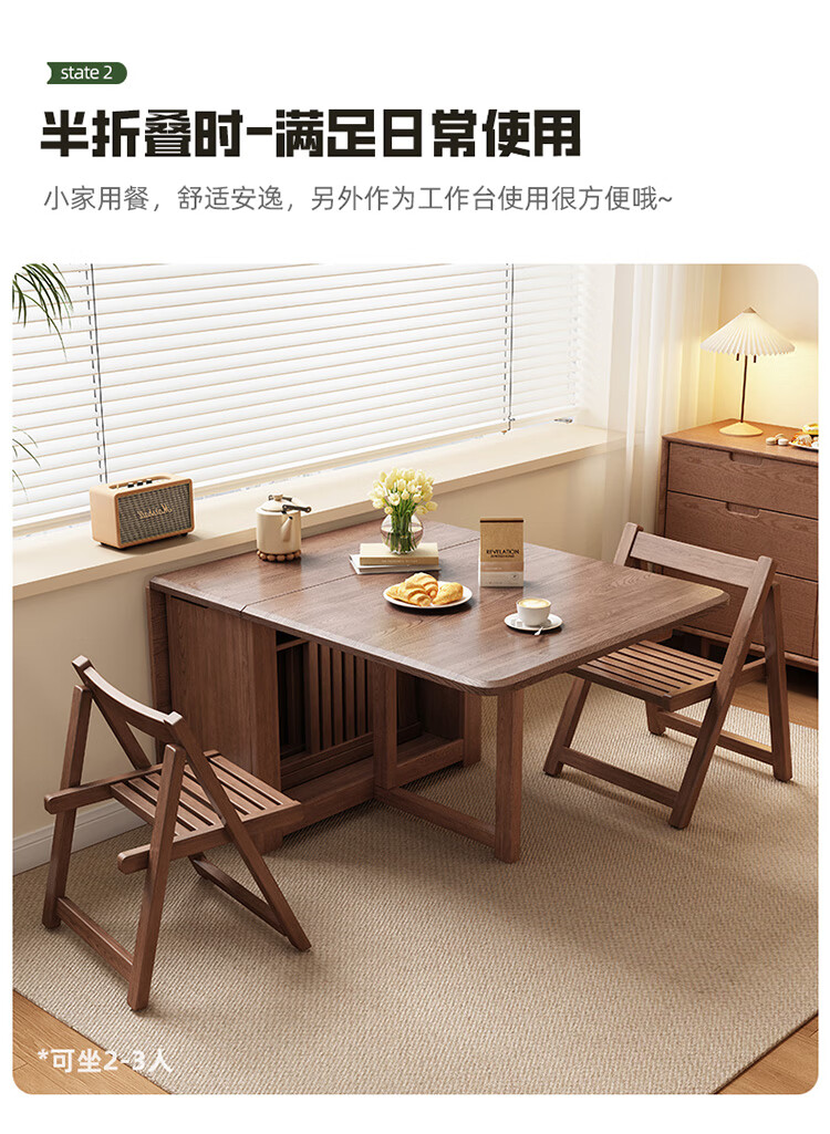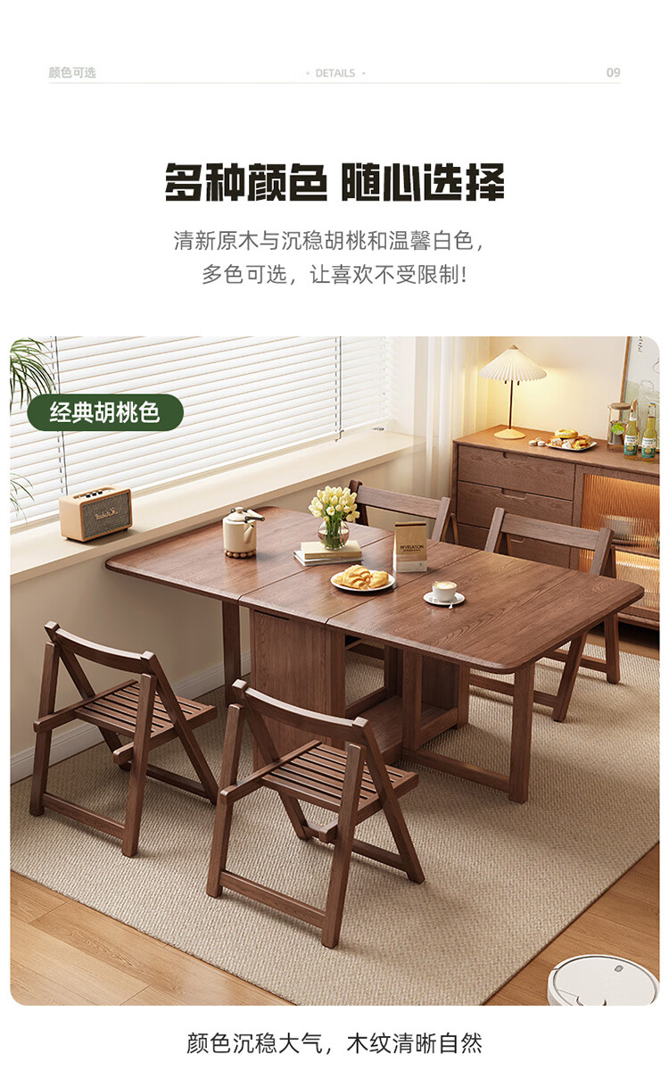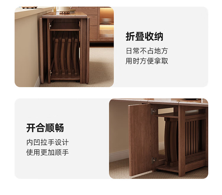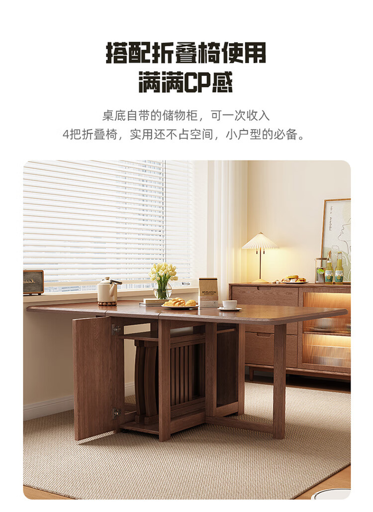 MiDi all solid wood folding dining table small family home dining table integrated sideboard foldable retractable dining table and chairs folding table walnut color single table + 4 folding chairs shipped ready to use 1.2 meters all solid wood material