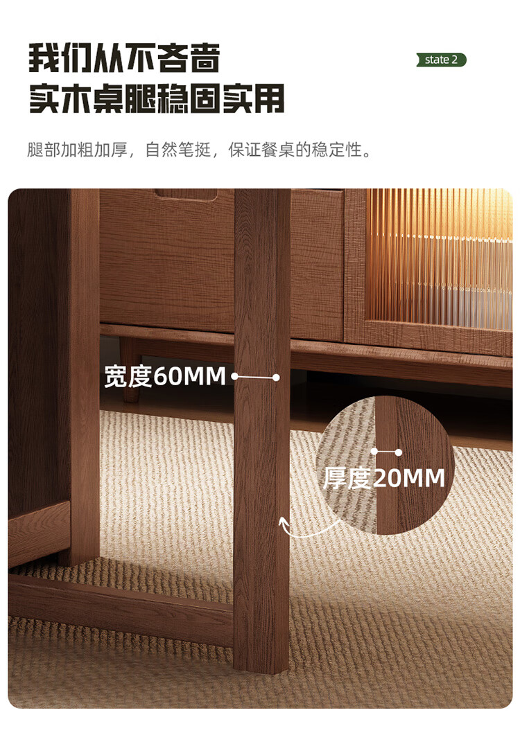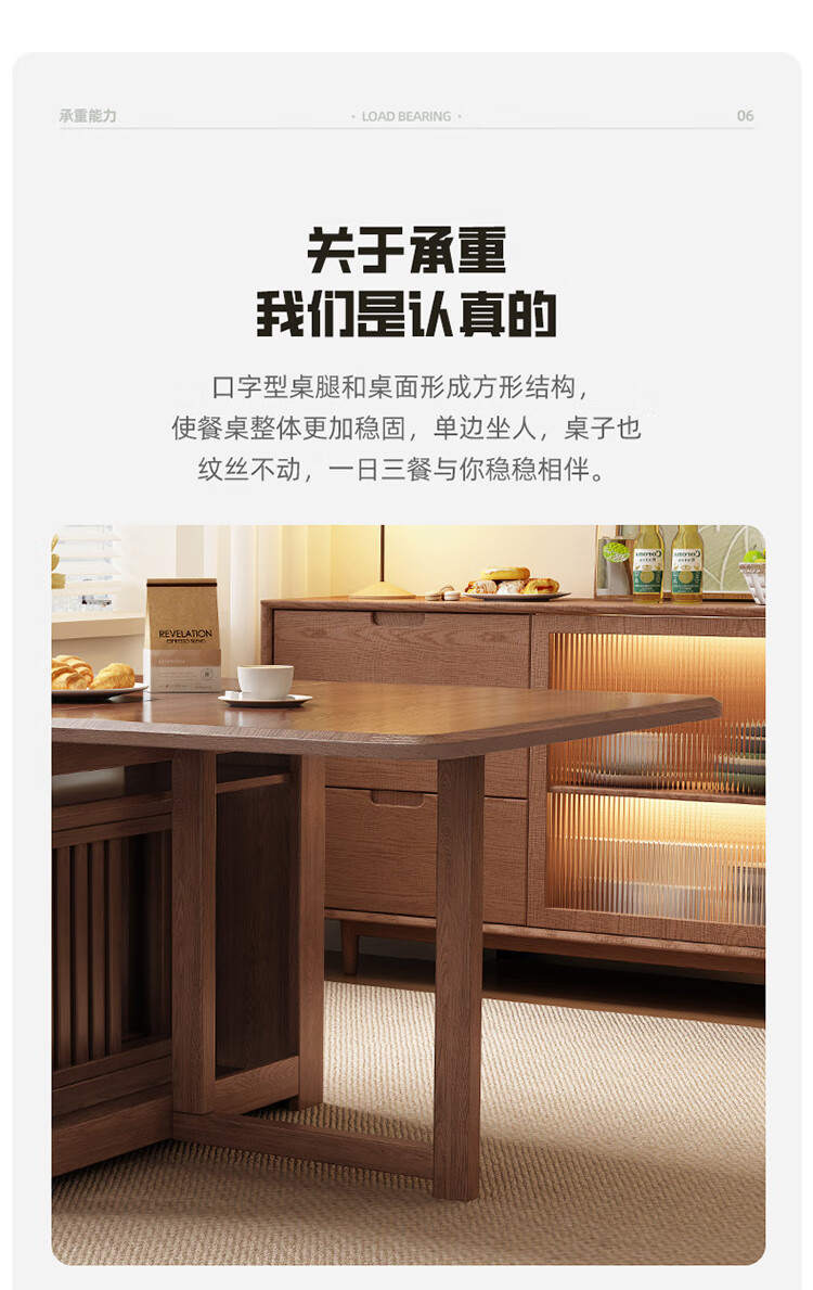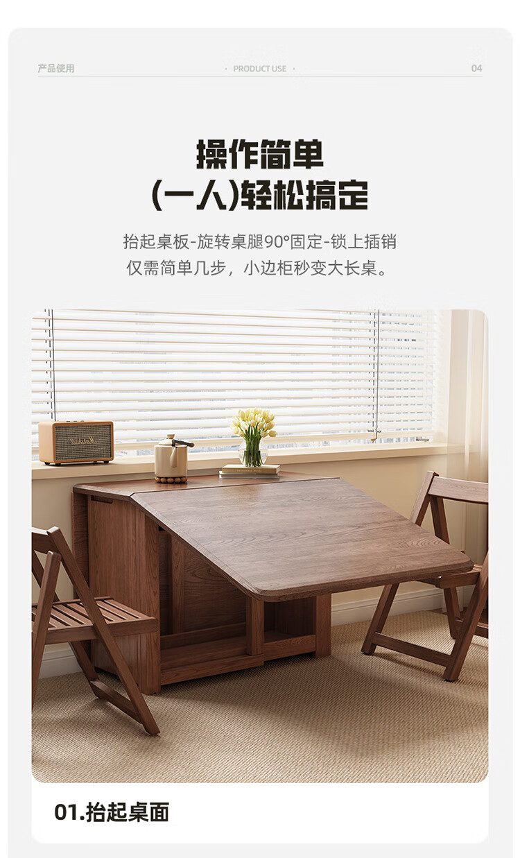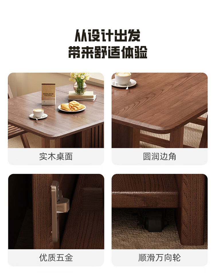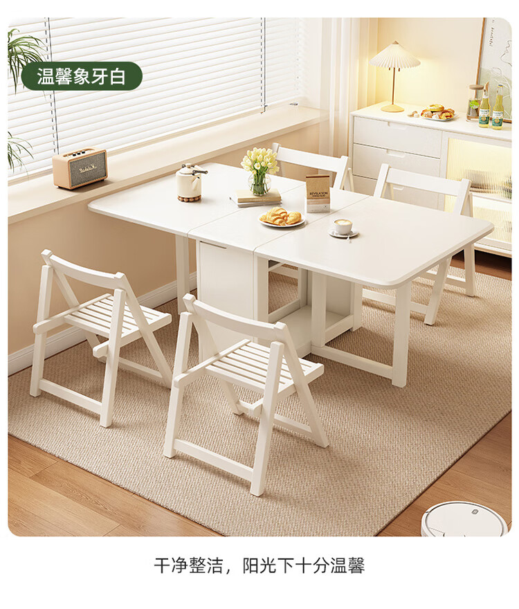 MiDi all solid wood folding dining table small family home dining table integrated sideboard foldable retractable dining table and chairs folding table walnut color single table + 4 folding chairs shipped ready to use 1.2 meters all solid wood material