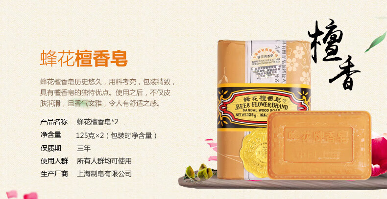Bee flower sandalwood soap 81g soap soap three-piece bath shampoo bath soap cleansing soap old Shanghai domestic product 1 piece