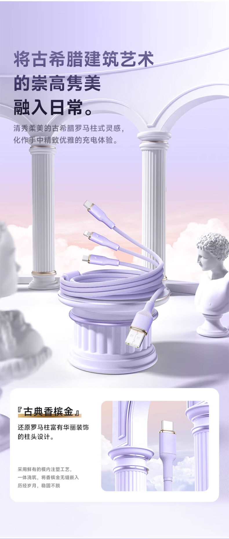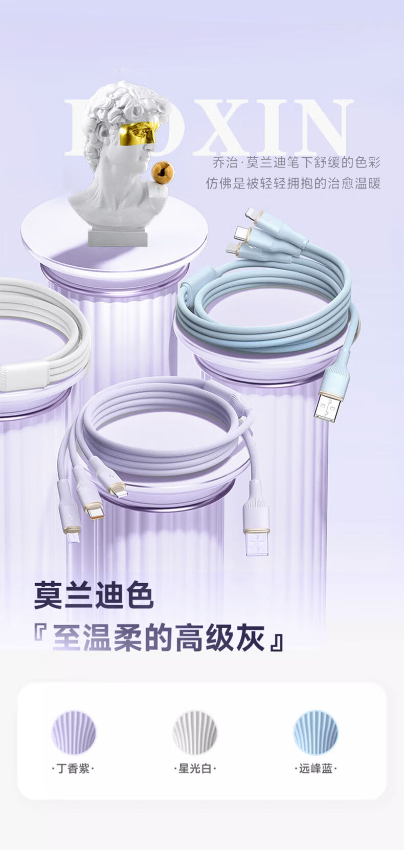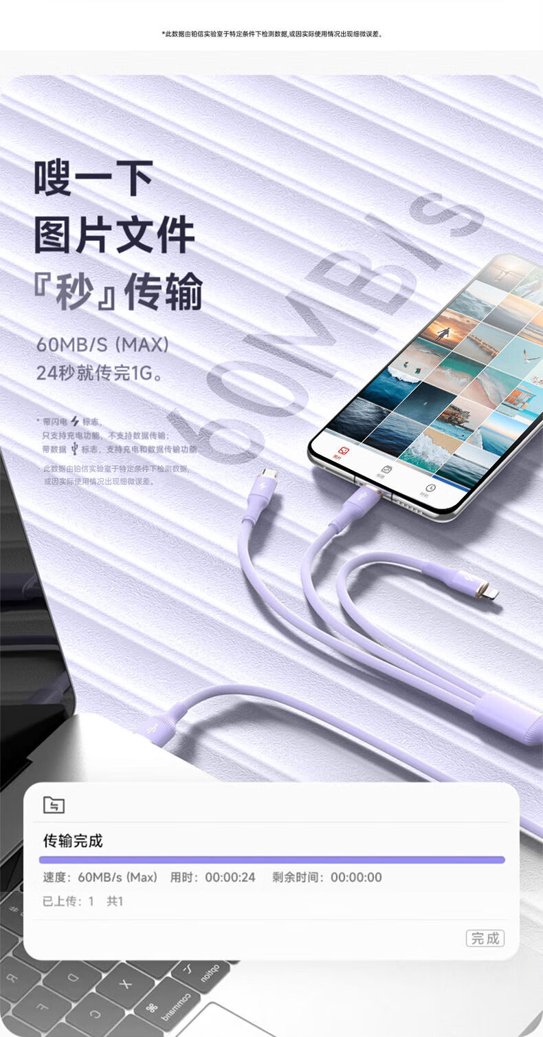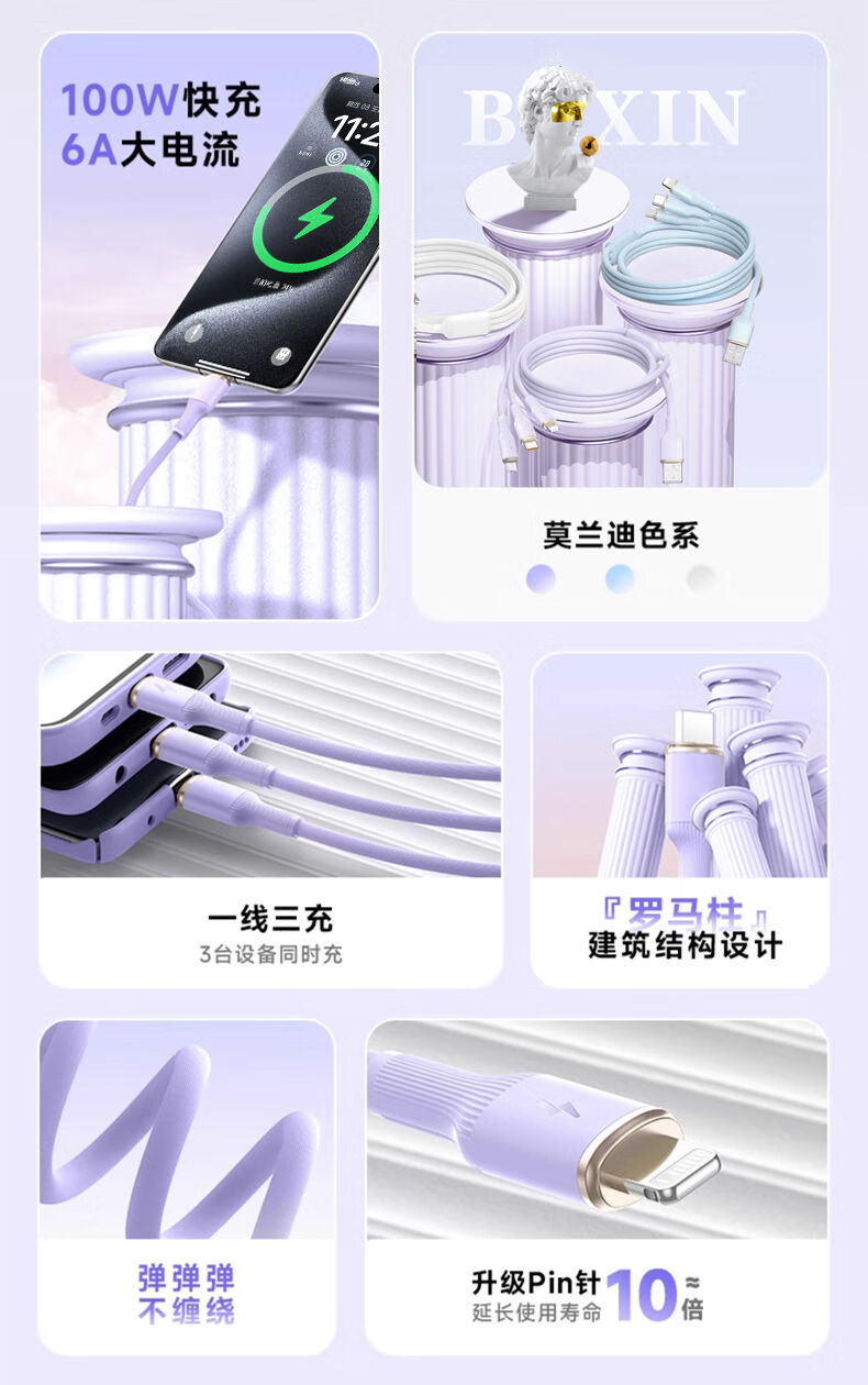 Port Emperor applicable data cable three-in-one charger cable liquid 100W fast charging three-head Apple Huawei vivo Android one-to-three Typec mobile phone iPhone multi-head multi-function vehicle purple 1.5 meters newly upgraded super fast charging C port 27 minutes to fully charge