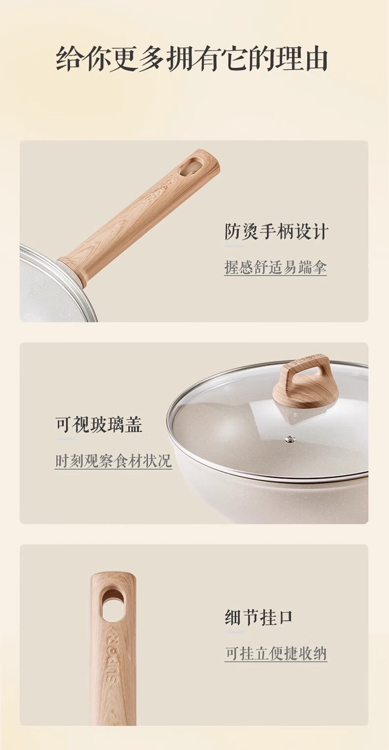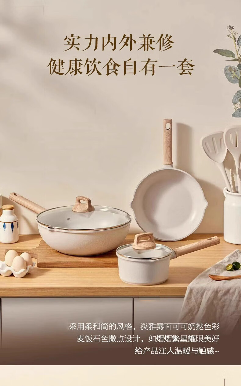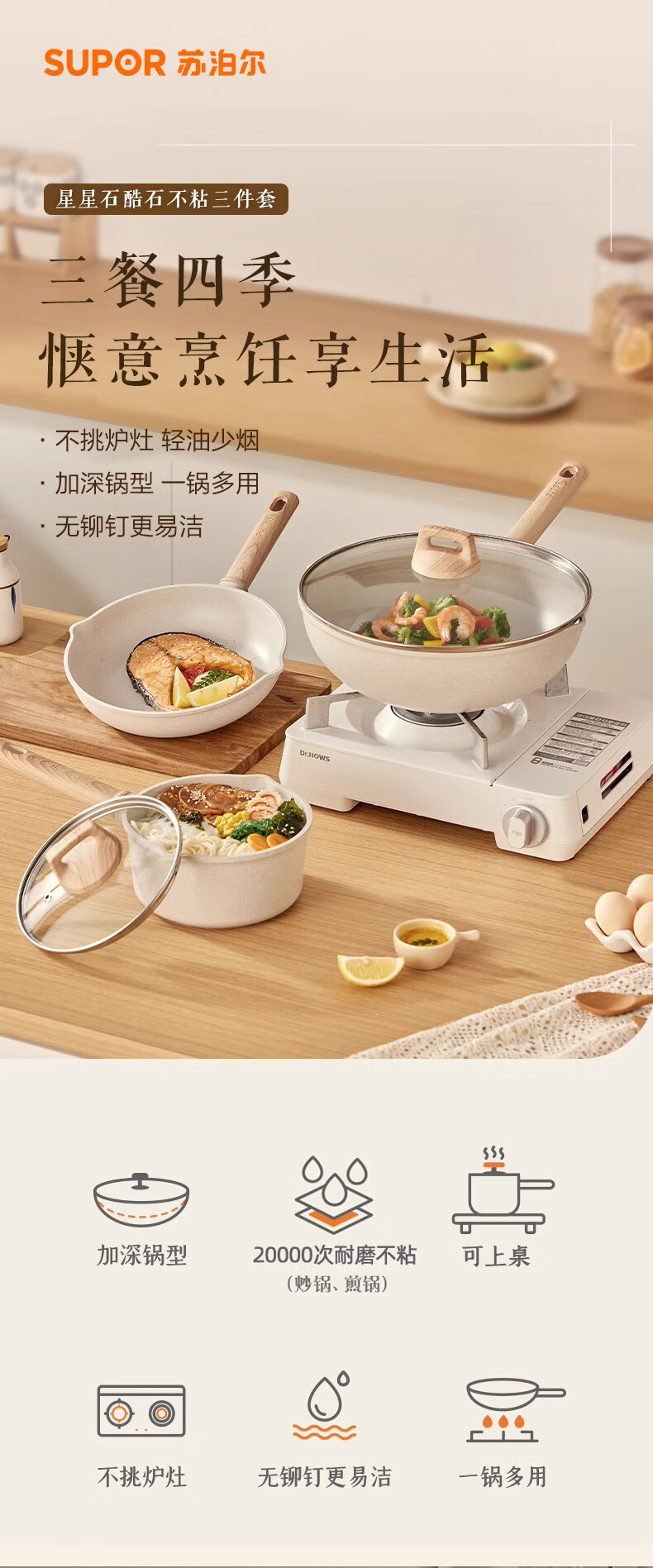 SUPOR pot set, complete household wok, frying pan, milk pot and pot combination, induction cooker, universal three-piece set, six-piece set, 30 woks + 26 frying pans + 20 soups
