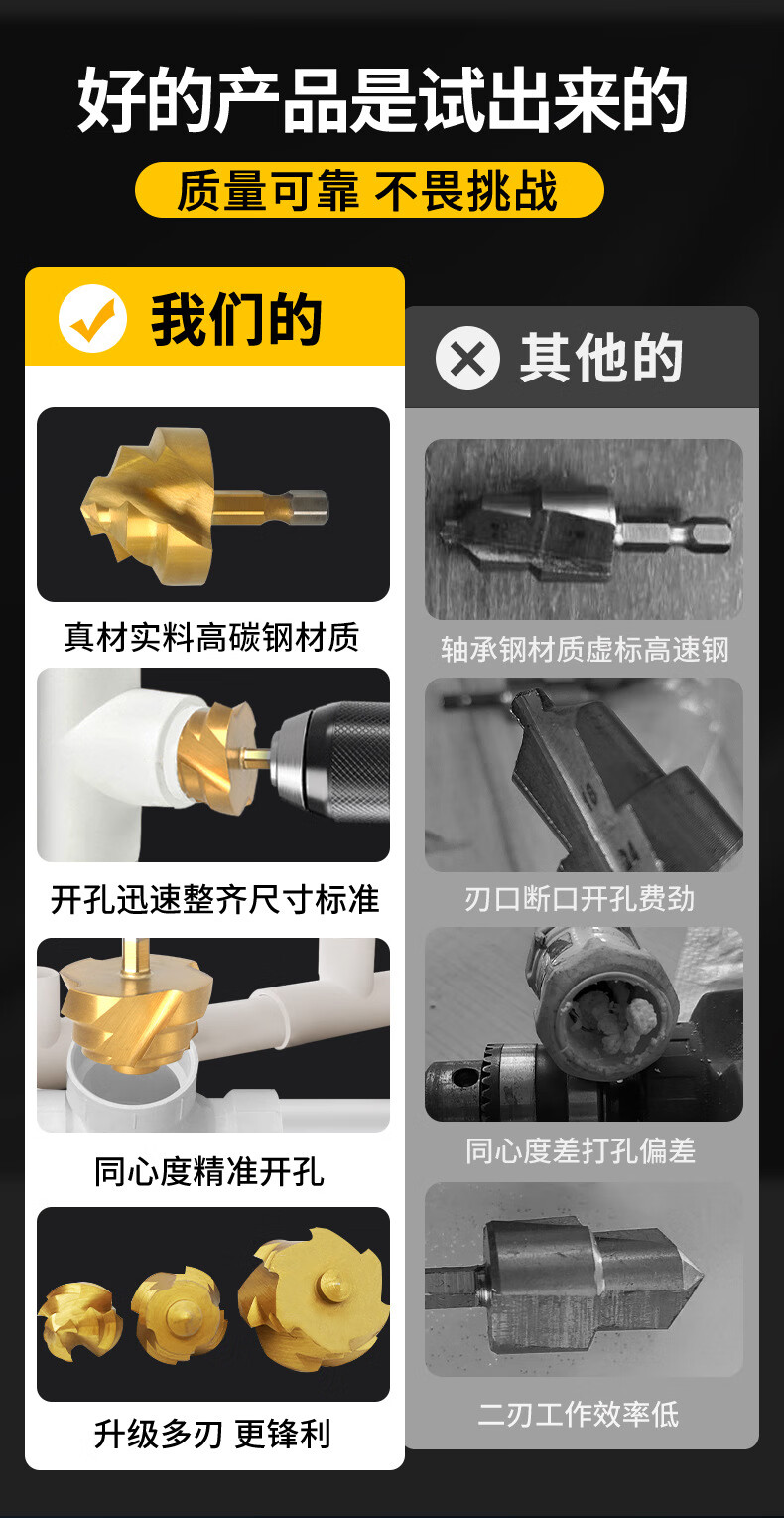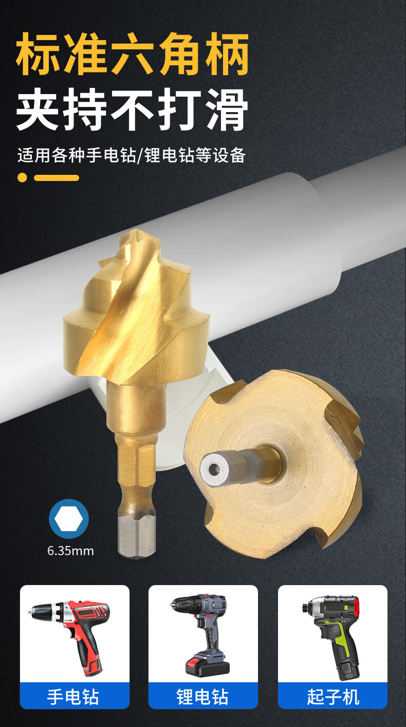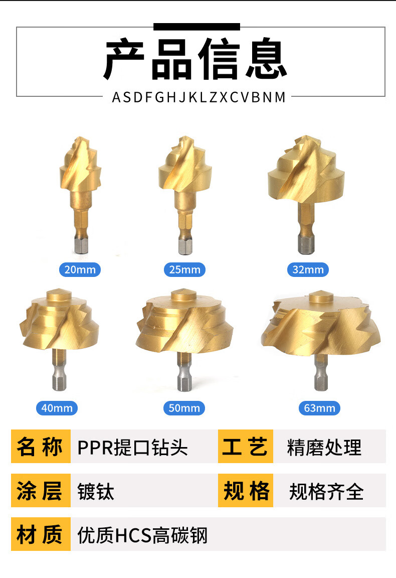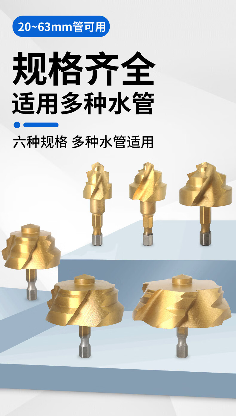 Cross-border new three-blade lift drill PPR water pipe repair drill bit enlarged hole 4/6/1 inch 32/40/50/63 6PC