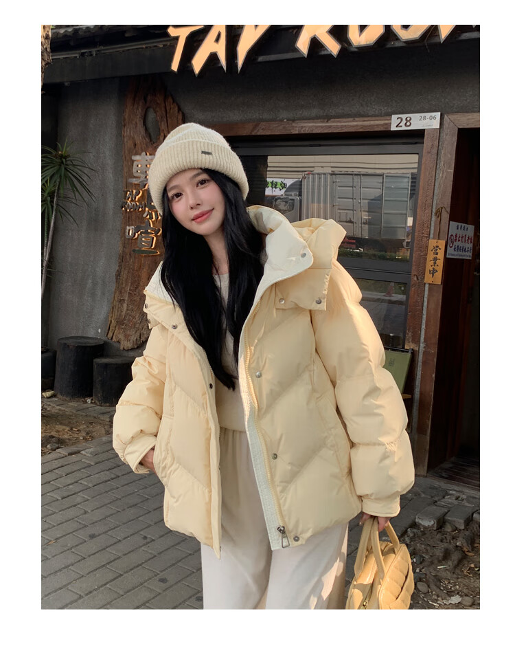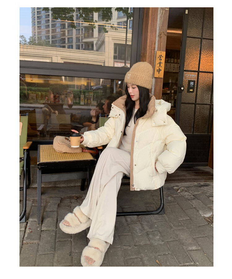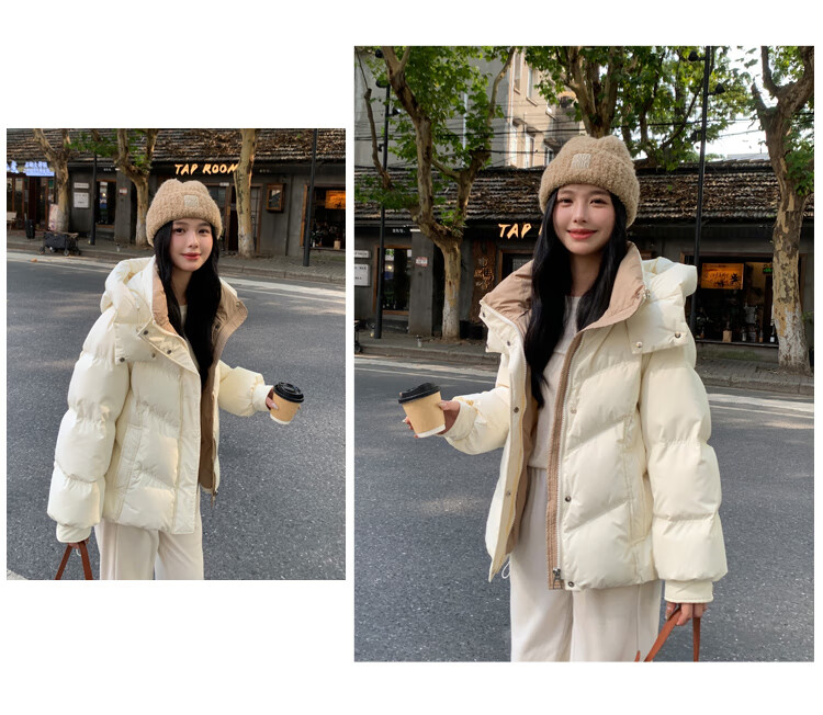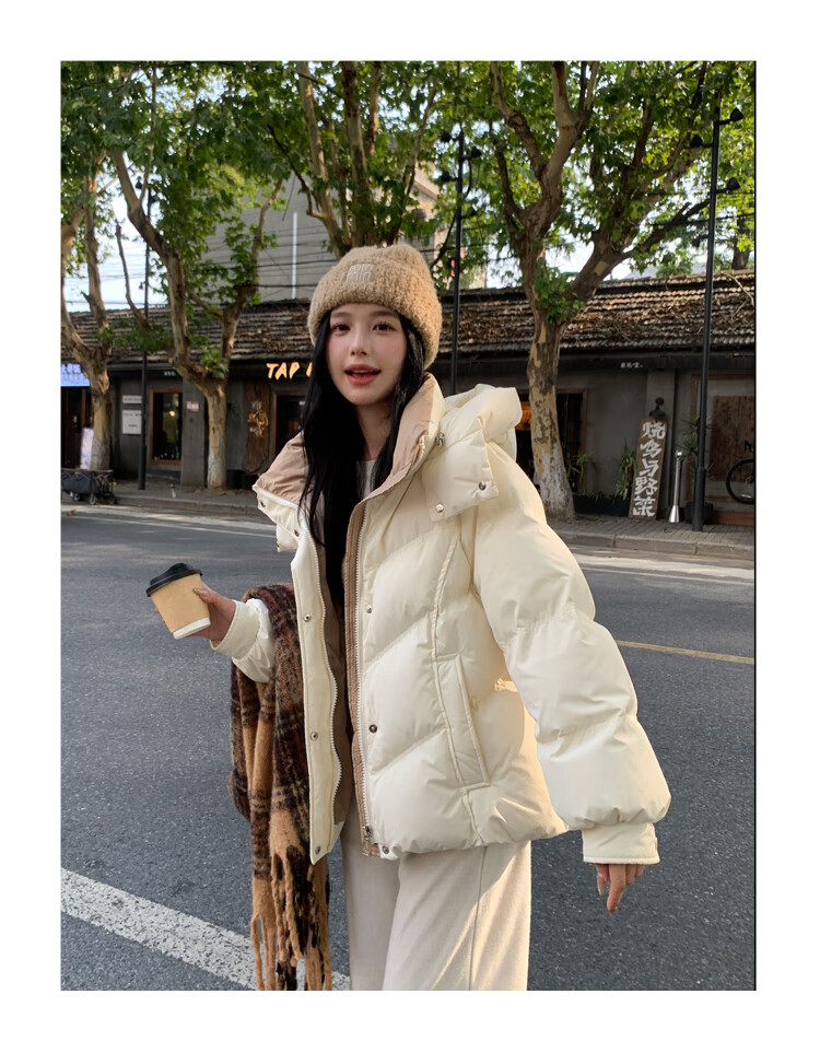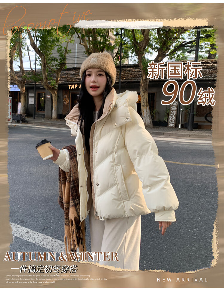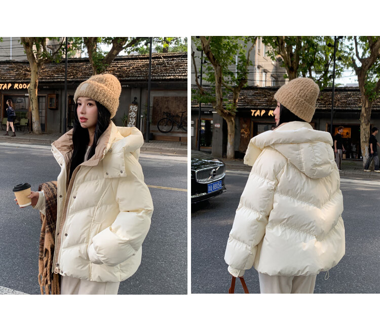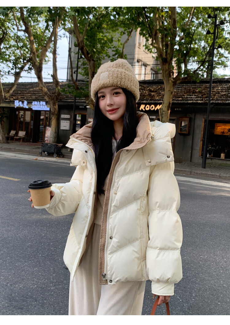 ETLK new winter style simple and fashionable color matching thickened down jacket women's short loose style white duck down jacket Maillard white new national standard 90 down S 90-120 catties (small people must take the card number smaller)