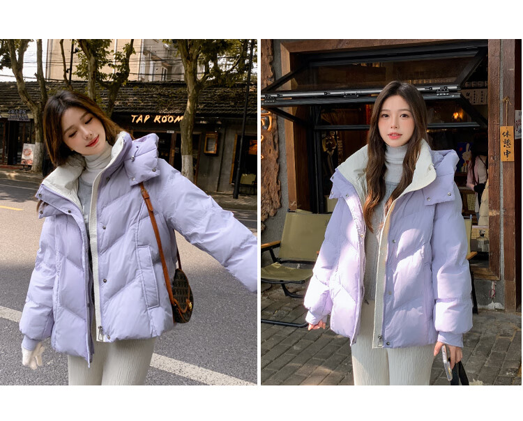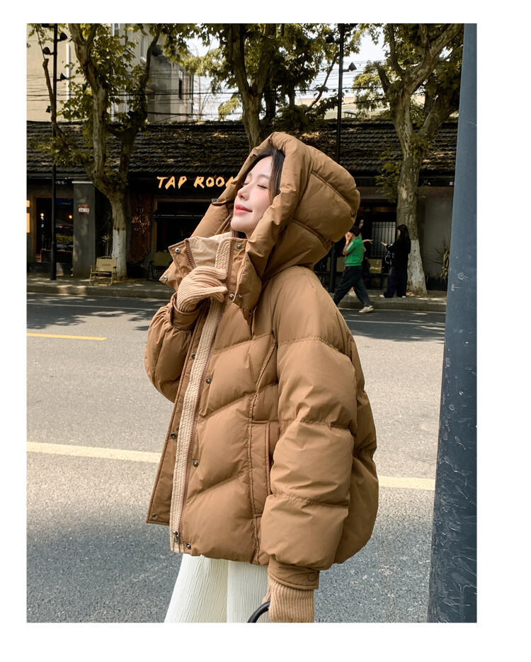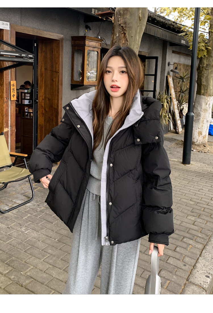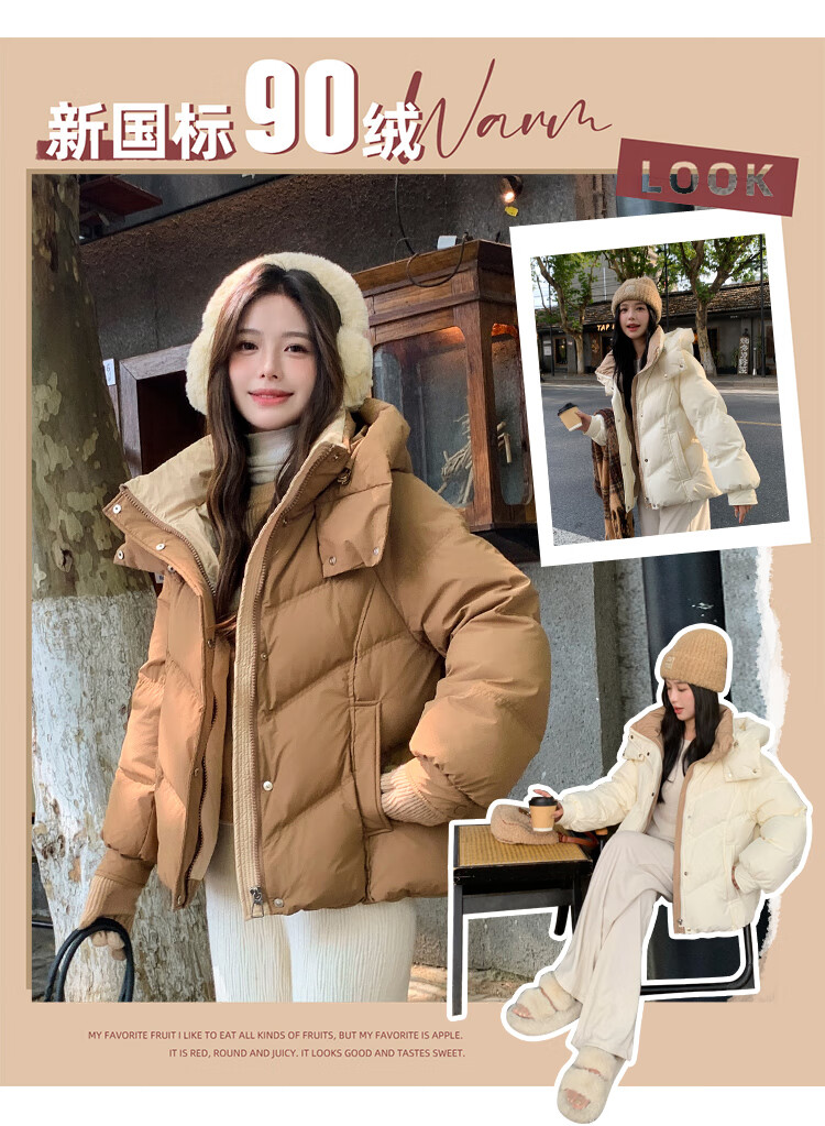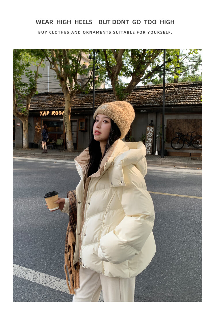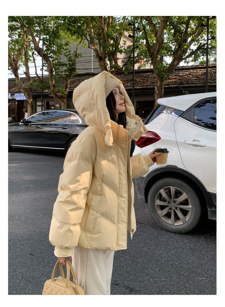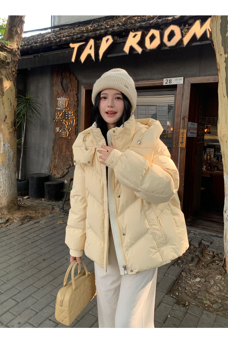 ETLK new winter style simple and fashionable color matching thickened down jacket women's short loose style white duck down jacket Maillard white new national standard 90 down S 90-120 catties (small people must take the card number smaller)